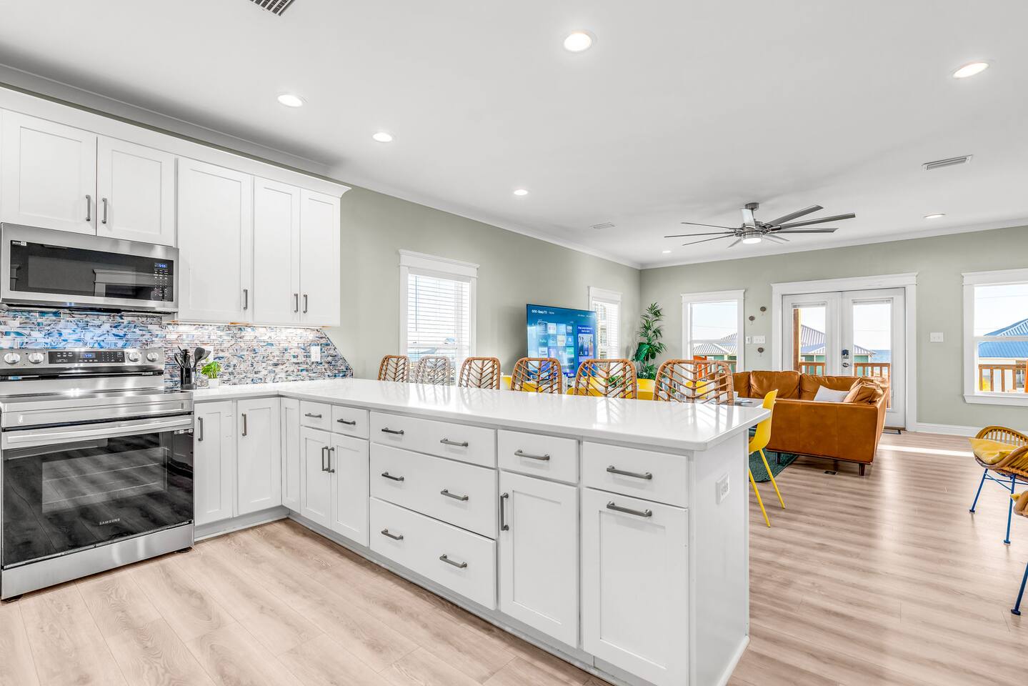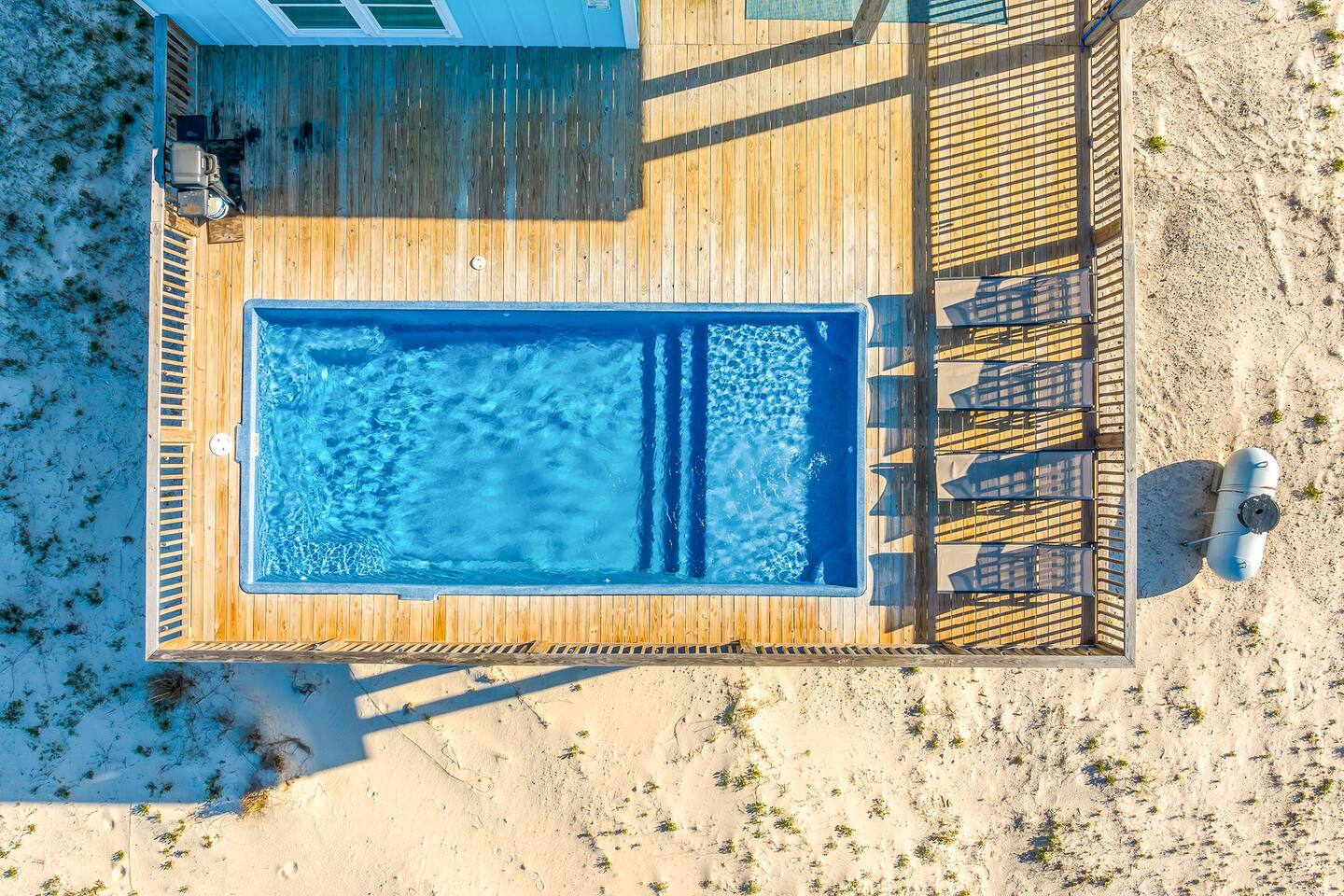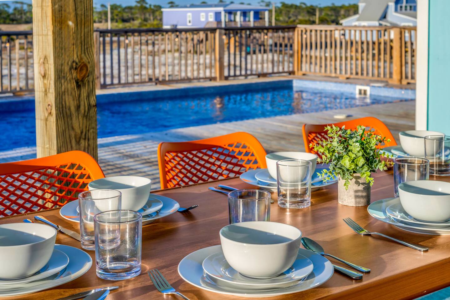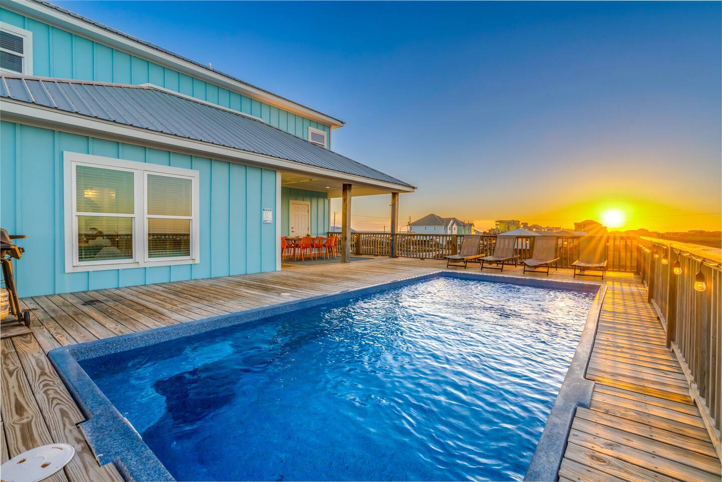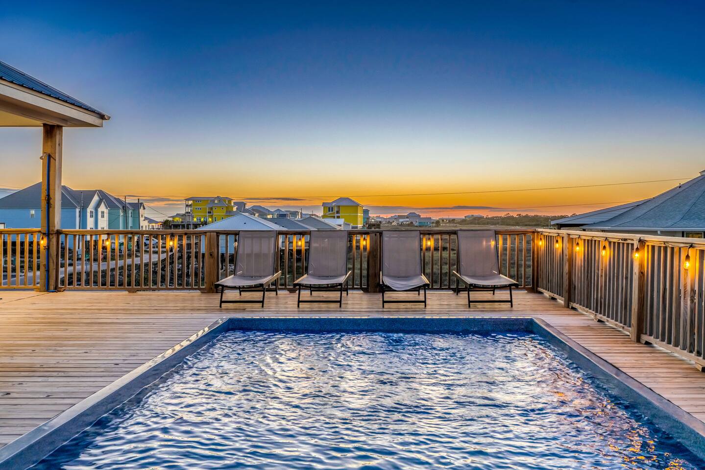 Stunning Gulf Views, Private Heated Pool & Steps to the Beach Brand new in 2024, this luxurious Gulf Shores beach house sleeps 16 and delivers everything you need for an unforgettable coastal escape. Wake up to breathtaking ocean views from every room, cool off in your private heated pool, and reach the sugar-white sand in less than a minute—the beach is just across the street. Whether you're gathered around the dining table, floating in the pool, or watching the sunset from your oceanfront deck, this home is designed for comfort, connection, and the kind of memories that last a lifetime. WHAT MAKES THIS HOME SPECIAL ✔ Sweeping Gulf views from every single room ✔ Private heated pool + beach access across the street ✔ 6 bedrooms, 6 bathrooms, sleeps 16 comfortably ✔ Brand new 2024 construction with modern coastal design ✔ Dog-friendly—bring the whole family THE SPACE Step inside to an open-concept living area where floor-to-ceiling windows frame endless Gulf views. Sink into the plush leather sectional, stream your favorite shows on the 65" Smart TV, or simply watch the waves roll in. The spacious dining table seats your entire crew—perfect for lingering over morning coffee, dealing cards after dinner, or replaying the day's beach adventures. The gourmet kitchen makes meal prep effortless with modern stainless appliances, generous counter space, and everything you need to whip up beach-day breakfasts or full family feasts. A high chair is provided for little ones. Outside, your private pool area becomes the heart of the home. Lounge poolside with a cold drink, fire up the BBQ grill for a sunset cookout, or head up to one of two oceanfront decks outfitted with rocking chairs, a cozy daybed, and pub-height tables. Rinse off the sand in the outdoor shower before diving back in. When you're ready for the beach, grab the complimentary chairs and wagon—you'll be toes-in-the-sand in under 60 seconds. WHERE EVERYONE SLEEPS Main Floor: 2 king suites with en-suite bathrooms, 50" Smart TVs Upper Floor: 2 king suites with en-suite bathrooms, 50" Smart TVs Upper Floor: 1 room with 2 queen beds, en-suite bathroom, 50" Smart TV Upper Floor: 1 bunk room with 2 queen-over-twin bunks (sleeps 6), en-suite bathroom, 50" Smart TV Every bed and mattress is brand new. Every bedroom has its own private bathroom. Boho-inspired coastal decor and spa-quality showers throughout. GOOD TO KNOW ✔ Pack 'n Play and high chair provided ✔ Washer and dryer in-unit ✔ Fast Wi-Fi for streaming or remote work ✔ Beach chairs, toys, and wagon included ✔ Central A/C and heat for year-round comfort ✔ Restaurants and shopping 5 minutes away (Tacky Jacks, Sassy Bass, LuLu's) ✔ Downtown Gulf Shores 20 minutes down the coast POOL HEATING Want to take a dip even when it's cooler outside? Pool heating is available for $85/day and typically maintains a comfortable 80–85°F depending on weather. Just let us know after booking and we'll get it warmed up for your arrival. BOOK YOUR ESCAPE Whether you're planning a multigenerational family reunion, a friends' getaway, or just need to unplug and recharge, this is the Gulf Shores home you've been searching for. Availability fills fast—check your dates now. Doug & Rose Waves & Wilderness