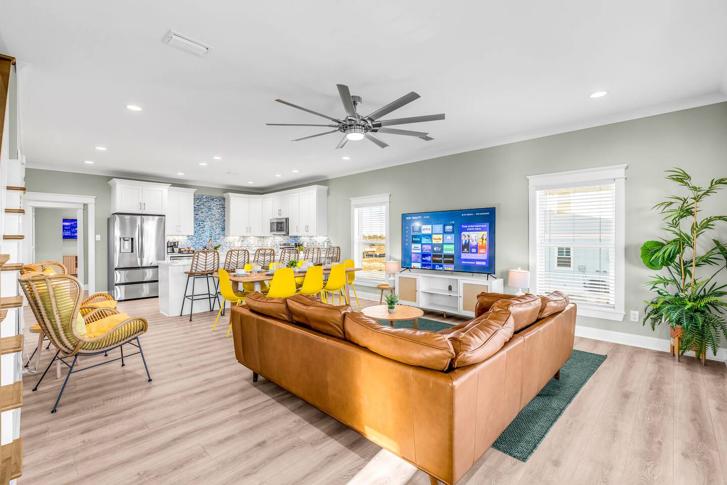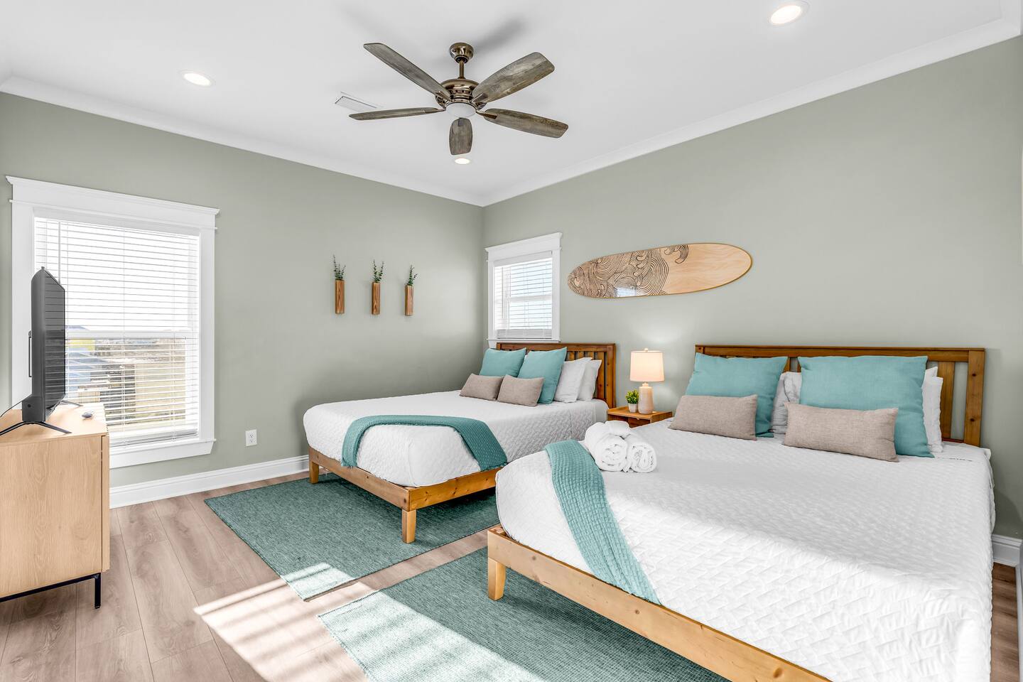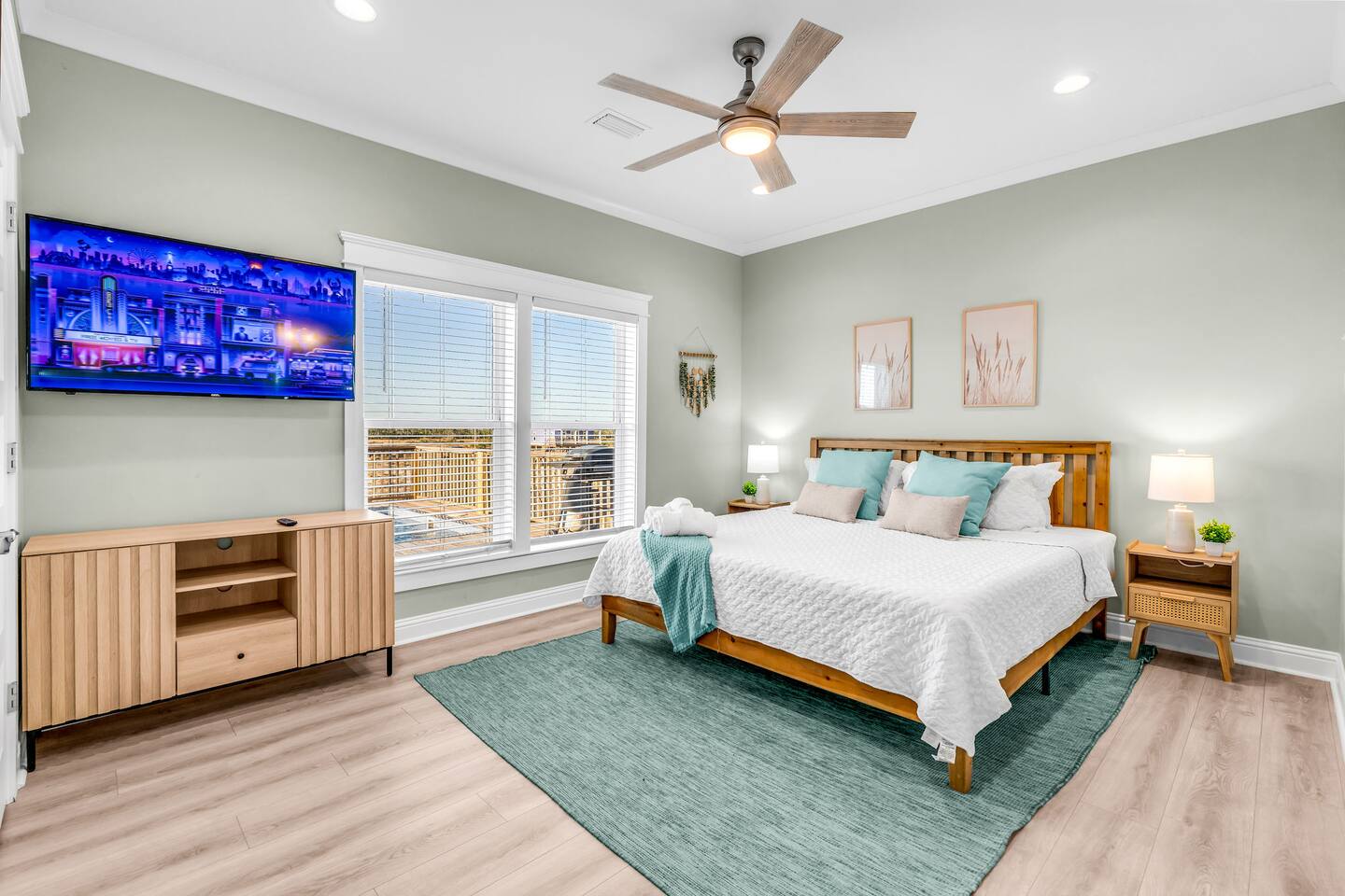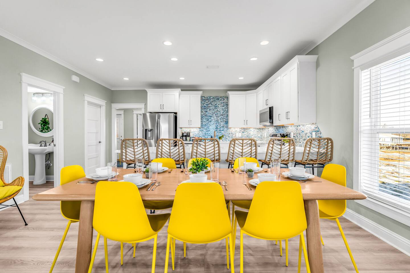 Stunning Gulf Views, Private Heated Pool & Steps to the Beach Brand new in 2024, this luxurious Gulf Shores beach house sleeps 16 and delivers everything you need for an unforgettable coastal escape. Wake up to breathtaking ocean views from every room, cool off in your private heated pool, and reach the sugar-white sand in less than a minute—the beach is just across the street. Whether you're gathered around the dining table, floating in the pool, or watching the sunset from your oceanfront deck, this home is designed for comfort, connection, and the kind of memories that last a lifetime. WHAT MAKES THIS HOME SPECIAL ✔ Sweeping Gulf views from every single room ✔ Private heated pool + beach access across the street ✔ 6 bedrooms, 6 bathrooms, sleeps 16 comfortably ✔ Brand new 2024 construction with modern coastal design ✔ Dog-friendly—bring the whole family THE SPACE Step inside to an open-concept living area where floor-to-ceiling windows frame endless Gulf views. Sink into the plush leather sectional, stream your favorite shows on the 65" Smart TV, or simply watch the waves roll in. The spacious dining table seats your entire crew—perfect for lingering over morning coffee, dealing cards after dinner, or replaying the day's beach adventures. The gourmet kitchen makes meal prep effortless with modern stainless appliances, generous counter space, and everything you need to whip up beach-day breakfasts or full family feasts. A high chair is provided for little ones. Outside, your private pool area becomes the heart of the home. Lounge poolside with a cold drink, fire up the BBQ grill for a sunset cookout, or head up to one of two oceanfront decks outfitted with rocking chairs, a cozy daybed, and pub-height tables. Rinse off the sand in the outdoor shower before diving back in. When you're ready for the beach, grab the complimentary chairs and wagon—you'll be toes-in-the-sand in under 60 seconds. WHERE EVERYONE SLEEPS Main Floor: 2 king suites with en-suite bathrooms, 50" Smart TVs Upper Floor: 2 king suites with en-suite bathrooms, 50" Smart TVs Upper Floor: 1 room with 2 queen beds, en-suite bathroom, 50" Smart TV Upper Floor: 1 bunk room with 2 queen-over-twin bunks (sleeps 6), en-suite bathroom, 50" Smart TV Every bed and mattress is brand new. Every bedroom has its own private bathroom. Boho-inspired coastal decor and spa-quality showers throughout. GOOD TO KNOW ✔ Pack 'n Play and high chair provided ✔ Washer and dryer in-unit ✔ Fast Wi-Fi for streaming or remote work ✔ Beach chairs, toys, and wagon included ✔ Central A/C and heat for year-round comfort ✔ Restaurants and shopping 5 minutes away (Tacky Jacks, Sassy Bass, LuLu's) ✔ Downtown Gulf Shores 20 minutes down the coast POOL HEATING Want to take a dip even when it's cooler outside? Pool heating is available for $85/day and typically maintains a comfortable 80–85°F depending on weather. Just let us know after booking and we'll get it warmed up for your arrival. BOOK YOUR ESCAPE Whether you're planning a multigenerational family reunion, a friends' getaway, or just need to unplug and recharge, this is the Gulf Shores home you've been searching for. Availability fills fast—check your dates now. Doug & Rose Waves & Wilderness