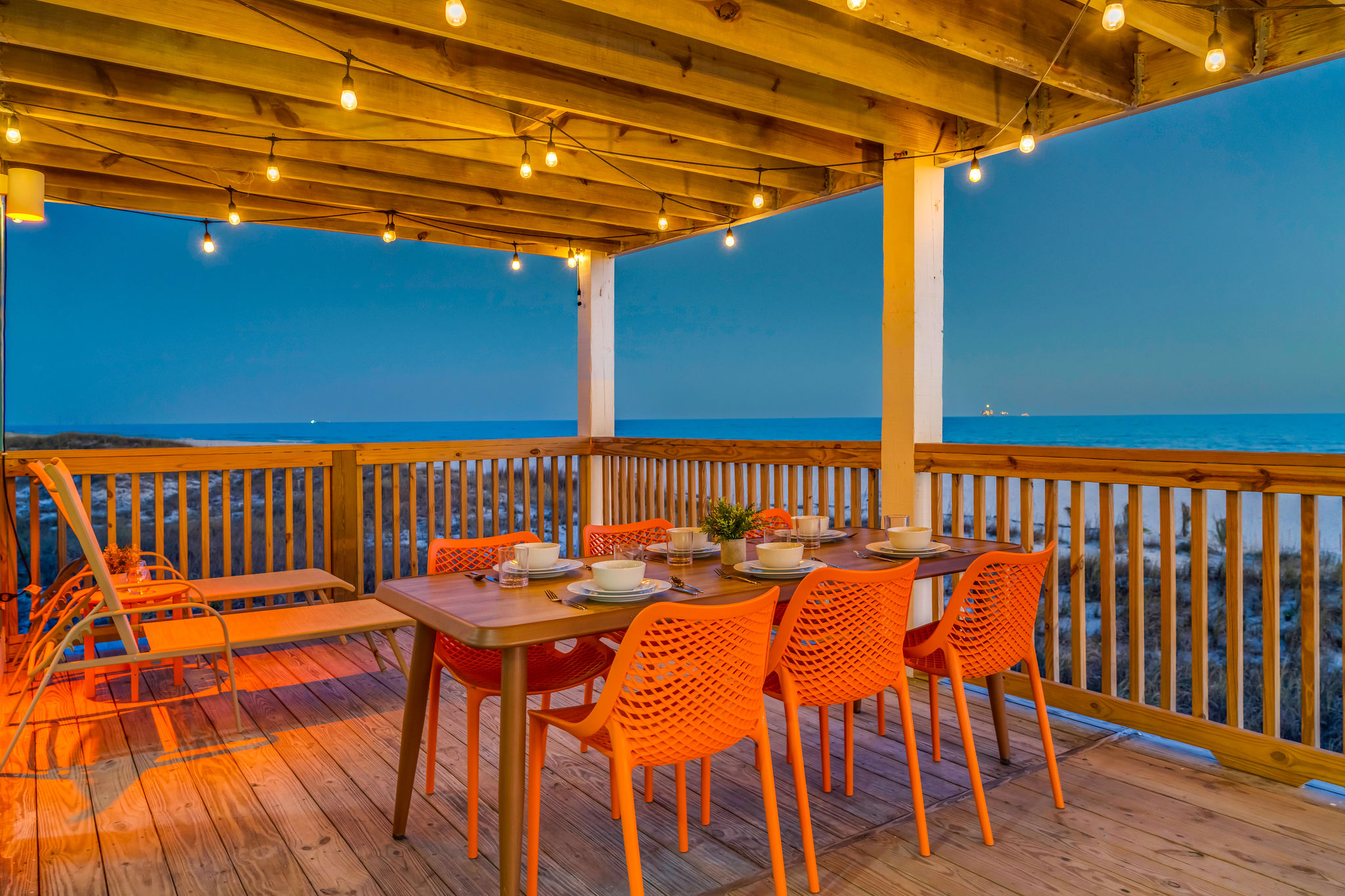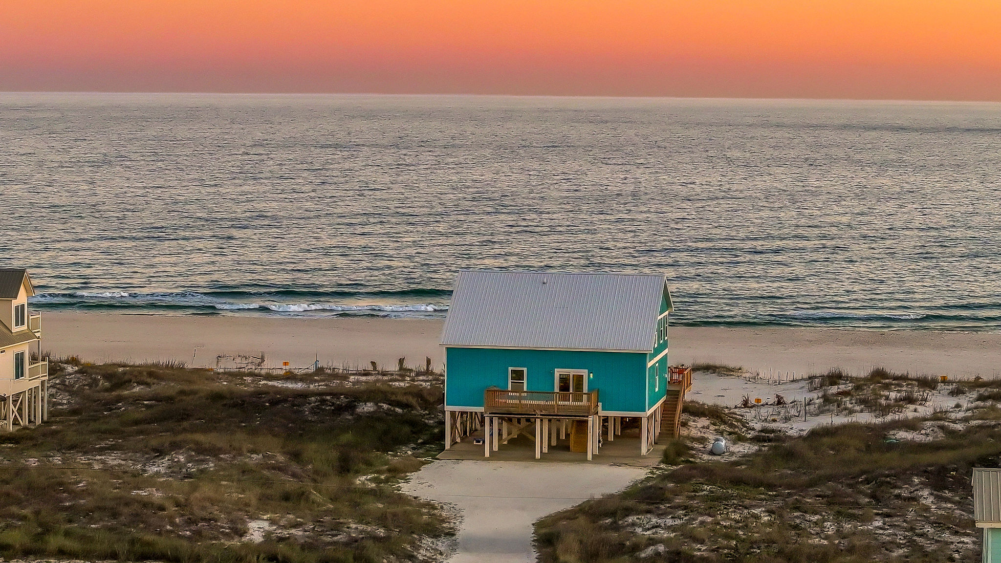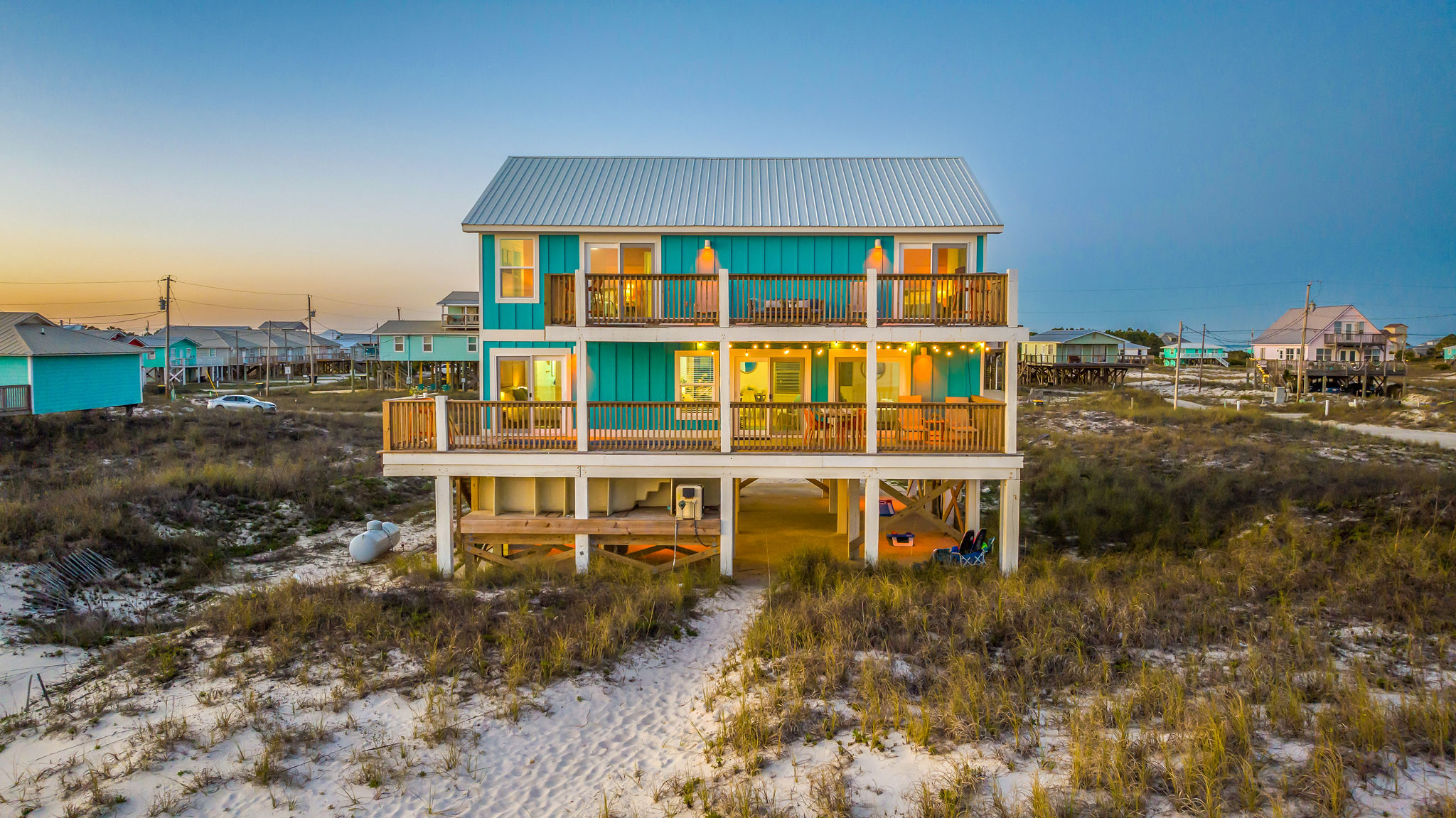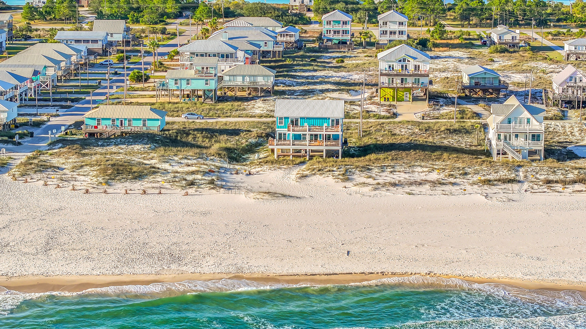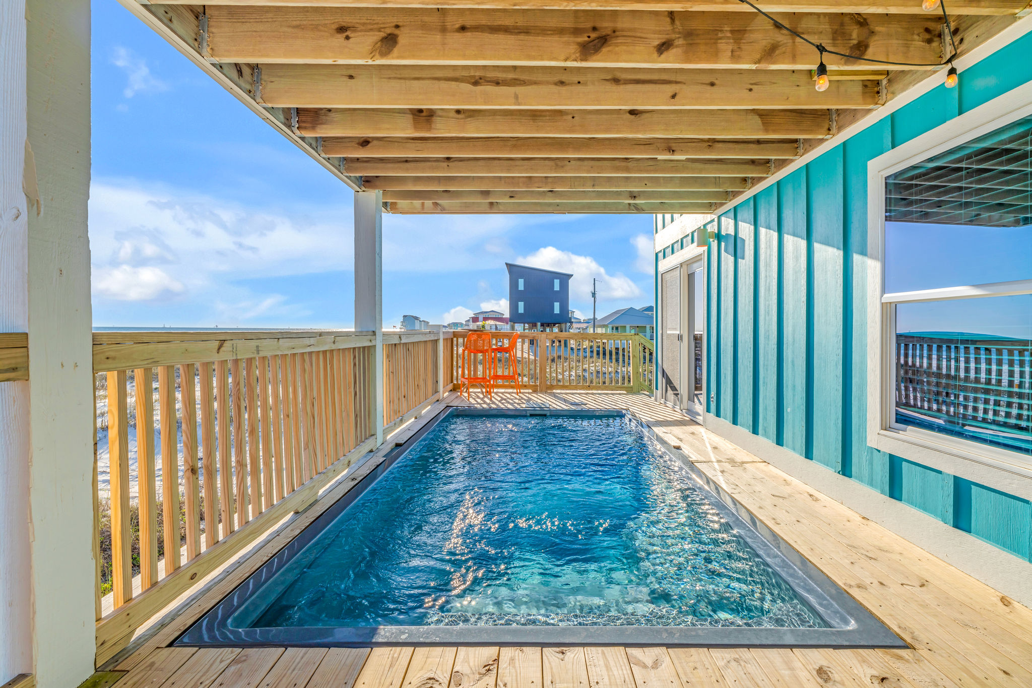 Gulf-Front Luxury with Private Pool & Sunset Views from Every Room Fully renovated in 2025, this stunning beachfront home in Gulf Shores offers the ultimate coastal escape for families, friends, and your four-legged crew. Wake up to endless Gulf views from every room, step directly from your deck onto the sand, and spend your days floating between the beach and your private heated pool. This is true Gulf-front living—where the sound of waves is your constant companion and sunset swims are just part of the daily routine. WHAT MAKES THIS HOME SPECIAL ✔ Direct beachfront—step from your deck straight onto the sand ✔ Unobstructed Gulf views from every single room ✔ Private heated pool on the deck for post-beach cooldowns ✔ Fully renovated in 2025 with coastal-chic design ✔ Dog-friendly—bring the whole pack THE SPACE Your two expansive Gulf-facing decks are where you'll spend most of your time. Start mornings with coffee and front-row sunrise views, gather for alfresco dinners at the outdoor table, or pull up a seat at the high-top pub seating with a cold drink as the sky turns pink and gold. When you need to cool off, dive into your private pool without ever leaving the view. And when the beach calls? You're already there—just step off the deck onto the sand. Inside, the fully stocked kitchen makes meal prep effortless, whether you're blending morning smoothies or prepping a seafood feast. The dining table has room for everyone, and the living room invites you to sink into the cognac leather sofa surrounded by boho-chic accents. Stream a movie on the 65" Smart TV or leave the windows open and let the sound of the waves be your entertainment. Rinse off the salt and sand in the outdoor shower, then decide whether your next move is the pool, the deck, or straight back to the beach. WHERE EVERYONE SLEEPS Main Floor: 2 Gulf-front king suites with deck access, 50" Smart TVs Upstairs: 2 Gulf-front king suites with deck access, 50" Smart TVs Upstairs: 1 bunk room with queen-over-twin and twin-over-twin bunks—perfect for kids As of 2025, every bed and mattress is brand new. Four full bathrooms (two per floor) with spa-inspired showers, plush towels, and boho decor throughout. GOOD TO KNOW ✔ Beach chairs, toys, and wagon included ✔ Private outdoor shower ✔ Washer and dryer in-unit ✔ Central A/C for year-round comfort ✔ Fast Wi-Fi for streaming or staying connected ✔ Dining favorites 5 minutes away (Tacky Jacks, Jessie's, Sassy Bass) ✔ Downtown Gulf Shores 20 minutes down the coast ✔ Fort Morgan's quieter, family-friendly vibe with easy access to everything POOL HEATING Want to swim even when it's cooler outside? Pool heating is available for $85/day and typically maintains a comfortable 80–85°F depending on the weather. Just let us know after booking, and we'll have it ready for your arrival. BOOK YOUR ESCAPE This is the kind of place where you lose track of time—where days blur into a perfect rhythm of beach, pool, deck, repeat. Whether you're here for a family reunion, a friends' trip, or just to unplug and recharge, this Gulf-front home delivers the vacation you've been dreaming about. Availability fills fast—check your dates now. Rose & Doug Waves & Wilderness