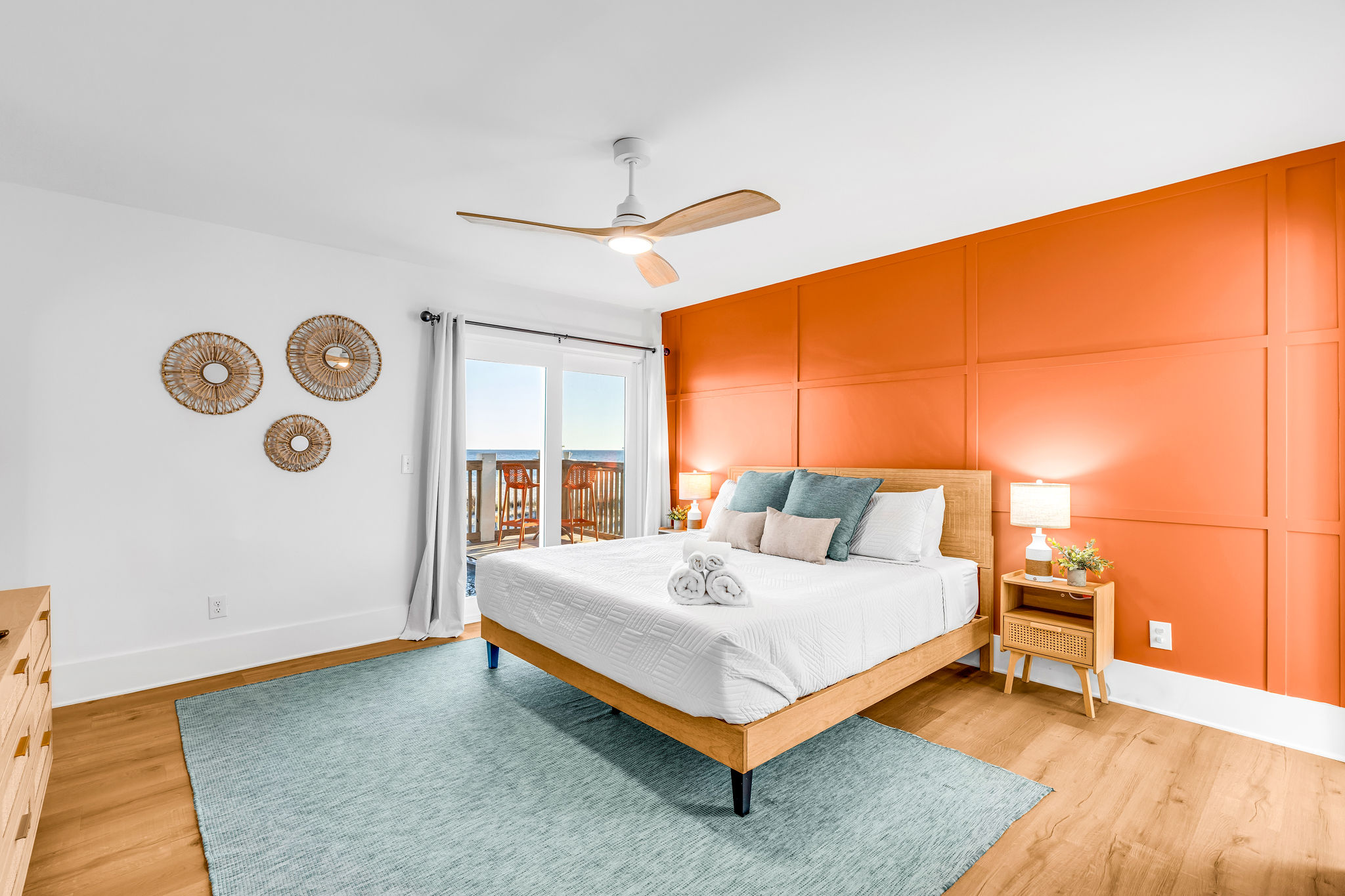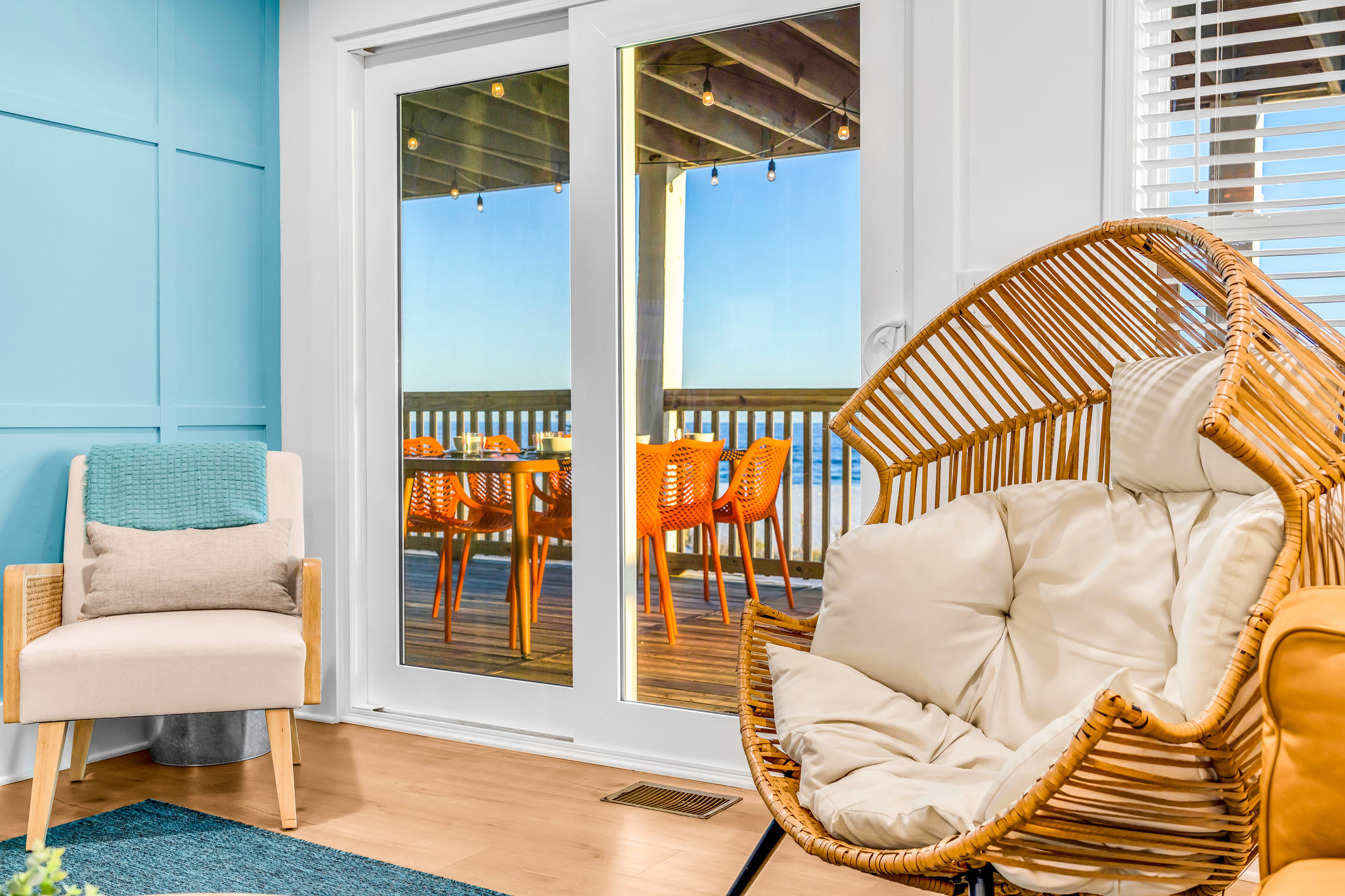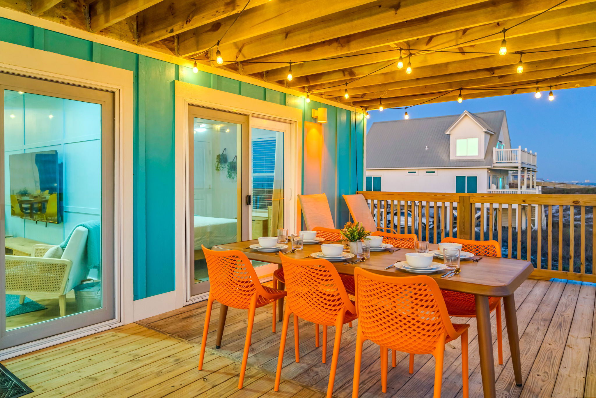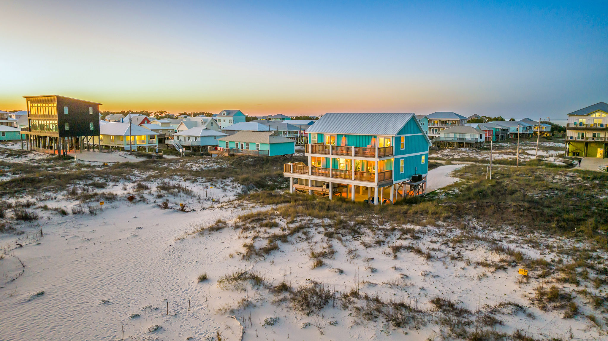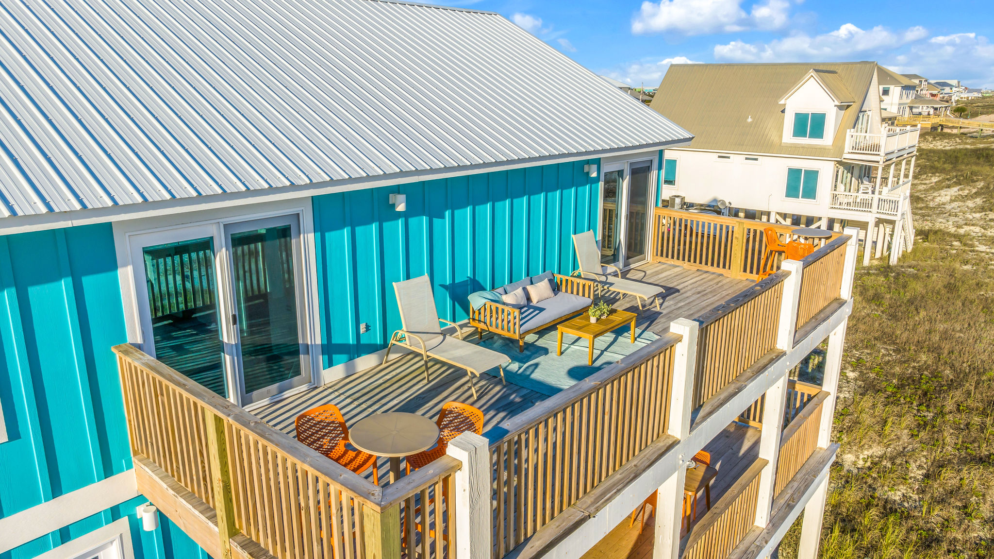 Gulf-Front Luxury with Private Pool & Sunset Views from Every Room Fully renovated in 2025, this stunning beachfront home in Gulf Shores offers the ultimate coastal escape for families, friends, and your four-legged crew. Wake up to endless Gulf views from every room, step directly from your deck onto the sand, and spend your days floating between the beach and your private heated pool. This is true Gulf-front living—where the sound of waves is your constant companion and sunset swims are just part of the daily routine. WHAT MAKES THIS HOME SPECIAL ✔ Direct beachfront—step from your deck straight onto the sand ✔ Unobstructed Gulf views from every single room ✔ Private heated pool on the deck for post-beach cooldowns ✔ Fully renovated in 2025 with coastal-chic design ✔ Dog-friendly—bring the whole pack THE SPACE Your two expansive Gulf-facing decks are where you'll spend most of your time. Start mornings with coffee and front-row sunrise views, gather for alfresco dinners at the outdoor table, or pull up a seat at the high-top pub seating with a cold drink as the sky turns pink and gold. When you need to cool off, dive into your private pool without ever leaving the view. And when the beach calls? You're already there—just step off the deck onto the sand. Inside, the fully stocked kitchen makes meal prep effortless, whether you're blending morning smoothies or prepping a seafood feast. The dining table has room for everyone, and the living room invites you to sink into the cognac leather sofa surrounded by boho-chic accents. Stream a movie on the 65" Smart TV or leave the windows open and let the sound of the waves be your entertainment. Rinse off the salt and sand in the outdoor shower, then decide whether your next move is the pool, the deck, or straight back to the beach. WHERE EVERYONE SLEEPS Main Floor: 2 Gulf-front king suites with deck access, 50" Smart TVs Upstairs: 2 Gulf-front king suites with deck access, 50" Smart TVs Upstairs: 1 bunk room with queen-over-twin and twin-over-twin bunks—perfect for kids As of 2025, every bed and mattress is brand new. Four full bathrooms (two per floor) with spa-inspired showers, plush towels, and boho decor throughout. GOOD TO KNOW ✔ Beach chairs, toys, and wagon included ✔ Private outdoor shower ✔ Washer and dryer in-unit ✔ Central A/C for year-round comfort ✔ Fast Wi-Fi for streaming or staying connected ✔ Dining favorites 5 minutes away (Tacky Jacks, Jessie's, Sassy Bass) ✔ Downtown Gulf Shores 20 minutes down the coast ✔ Fort Morgan's quieter, family-friendly vibe with easy access to everything POOL HEATING Want to swim even when it's cooler outside? Pool heating is available for $85/day and typically maintains a comfortable 80–85°F depending on the weather. Just let us know after booking, and we'll have it ready for your arrival. BOOK YOUR ESCAPE This is the kind of place where you lose track of time—where days blur into a perfect rhythm of beach, pool, deck, repeat. Whether you're here for a family reunion, a friends' trip, or just to unplug and recharge, this Gulf-front home delivers the vacation you've been dreaming about. Availability fills fast—check your dates now. Rose & Doug Waves & Wilderness