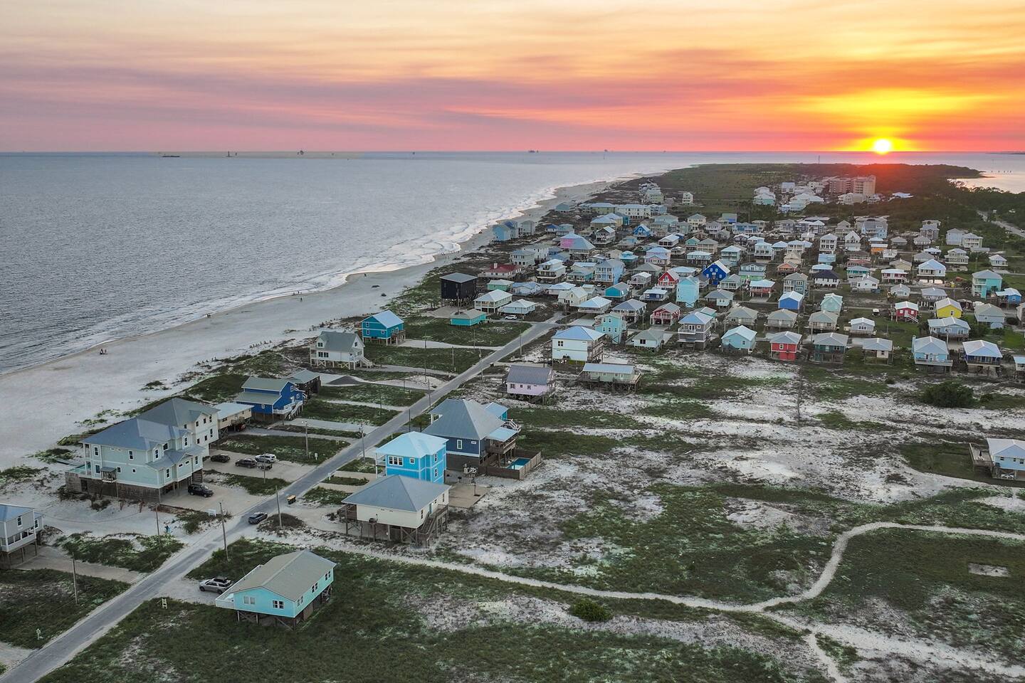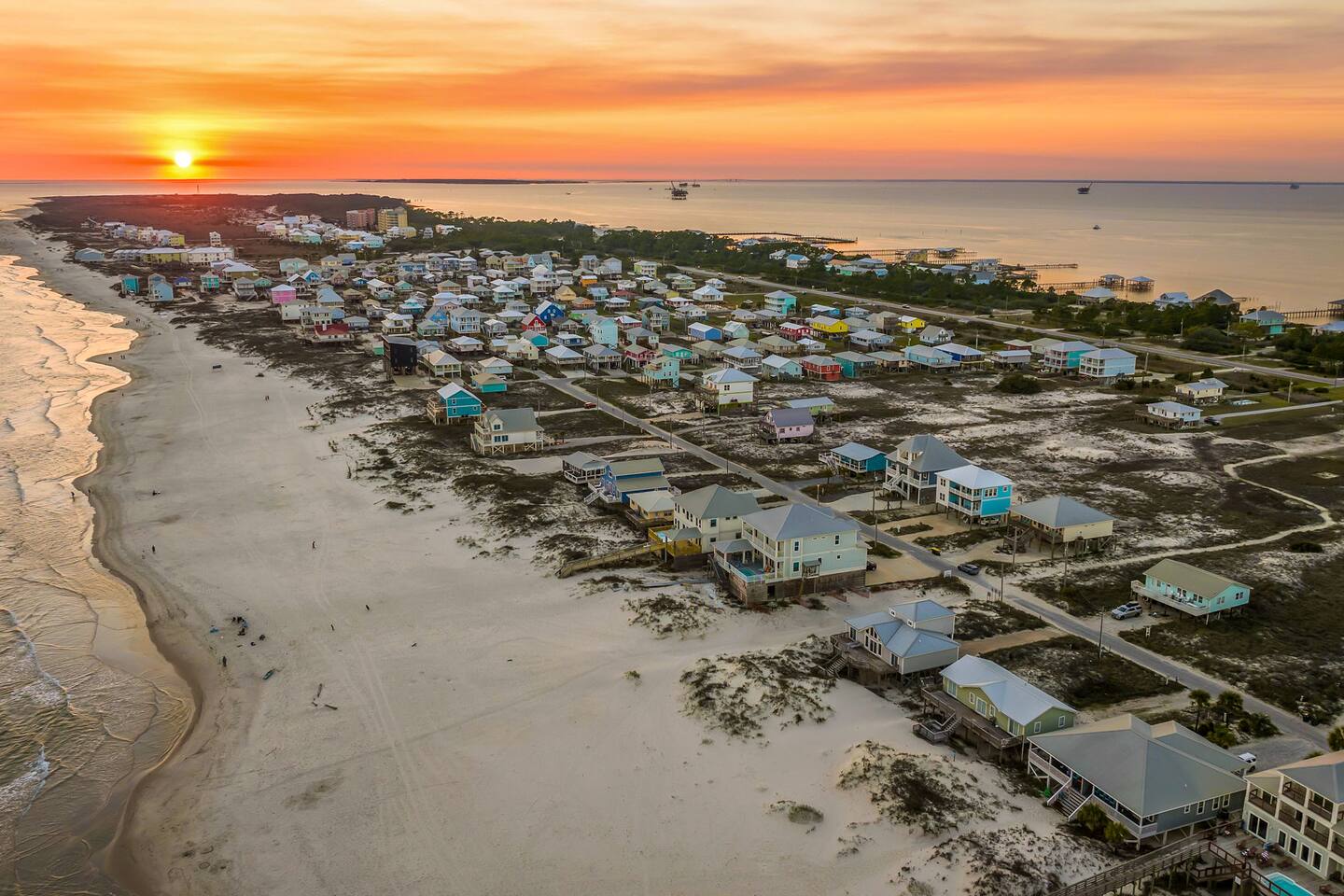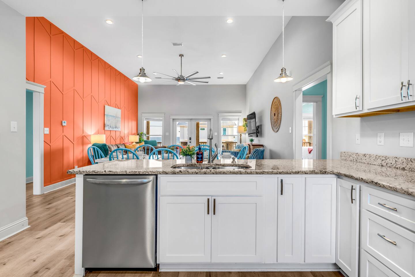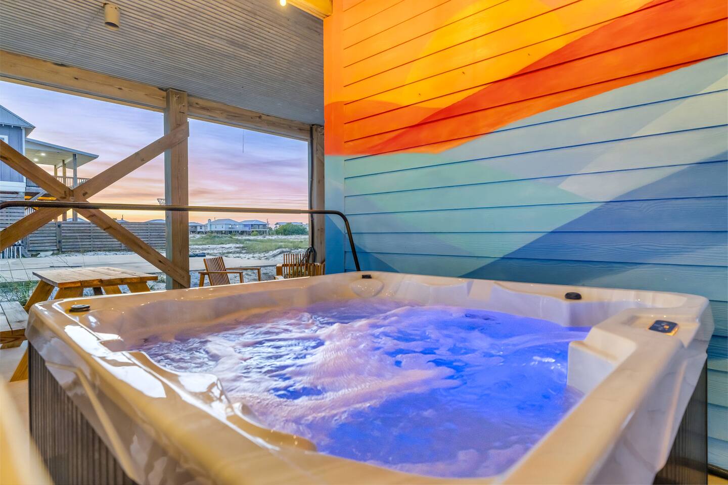Gulf Views, Hot Tub & Beach Across the Street—All on One Level This single-story coastal retreat in Gulf Shores gives you the best of both worlds: stunning Gulf views from your front deck and beach access just steps across the street—all without the oceanfront price tag. With three king suites, a bunk room for the kids, and a killer outdoor hangout area complete with hot tub, bar, and games, this is where beach days and late nights come together perfectly. Wake up to Gulf breezes, spend your days between the sand and the hot tub, and end each night with sunset cocktails from your front-row deck. WHAT MAKES THIS HOME SPECIAL ✔ Gulf views from the front deck + beach across the street ✔ Single-level layout—no stairs, easy living ✔ Private outdoor bar, hot tub & game area under the house ✔ 3 king suites with private bathrooms + bunk room ✔ Dog-friendly—beach life is better with your pup THE SPACE Your Gulf-facing front deck is where mornings begin—coffee in hand, sunrise painting the water, planning which beach you'll hit first. As the day winds down, grab a seat with a cold drink and watch the sky turn pink and gold over the waves. Below, your private shaded hangout area is the real MVP. Fire up the outdoor bar, sink into the hot tub after a long beach day, challenge someone to cornhole, and let the good times roll. Rinse off the sand in the outdoor shower and decide whether your next move is the hot tub or back to the beach—it's only across the street. Inside, the fully stocked kitchen handles everything from quick breakfast tacos to full seafood spreads. The dining table seats everyone comfortably, and the living room invites you to kick back on stylish boho-chic seating and stream whatever you're binge-watching on the 65" Smart TV. The single-level layout means no one's hauling luggage upstairs or chasing kids between floors—just easy, breezy beach house living. WHERE EVERYONE SLEEPS 3 king suites with Gulf views, private en-suite bathrooms, 50" Smart TVs 1 bunk room with full-over-full bunk + extra twin bed—perfect for kids or teens All beds and mattresses are brand new as of 2025. Four full bathrooms total (three private en-suites, one hallway bath for the bunk room) with spa-style showers, boho accents, and plush towels throughout. GOOD TO KNOW ✔ Beach chairs, wagon, toys, and gear included ✔ Outdoor shower for easy post-beach cleanup ✔ Washer and dryer in-unit ✔ Central A/C and fast Wi-Fi ✔ Dining favorites 5 minutes away (Tacky Jacks, Jessie's, Sassy Bass) ✔ Downtown Gulf Shores is 20 minutes down the coast BOOK YOUR ESCAPE This is the kind of place that becomes your new beach tradition—where you're close enough to hear the waves but far enough from the crowd to have your own vibe. Morning beach walks, afternoon hot tub hangs, evening games at the bar. If you want Gulf views, easy beach access, and a single-level layout that just works, you've found it. Availability fills fast—check your dates now. Rose & Doug Waves & Wilderness