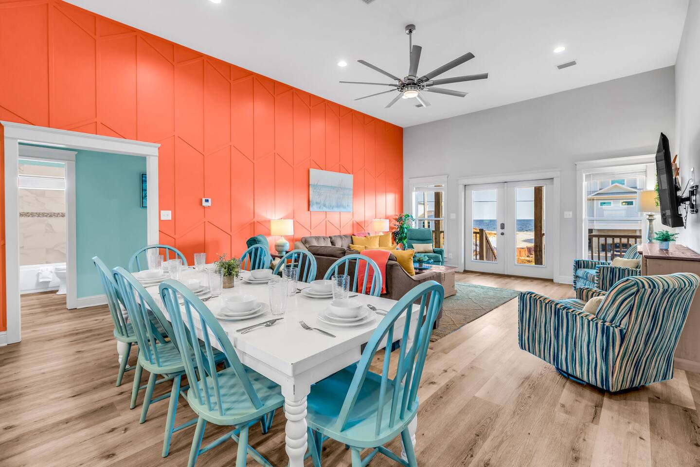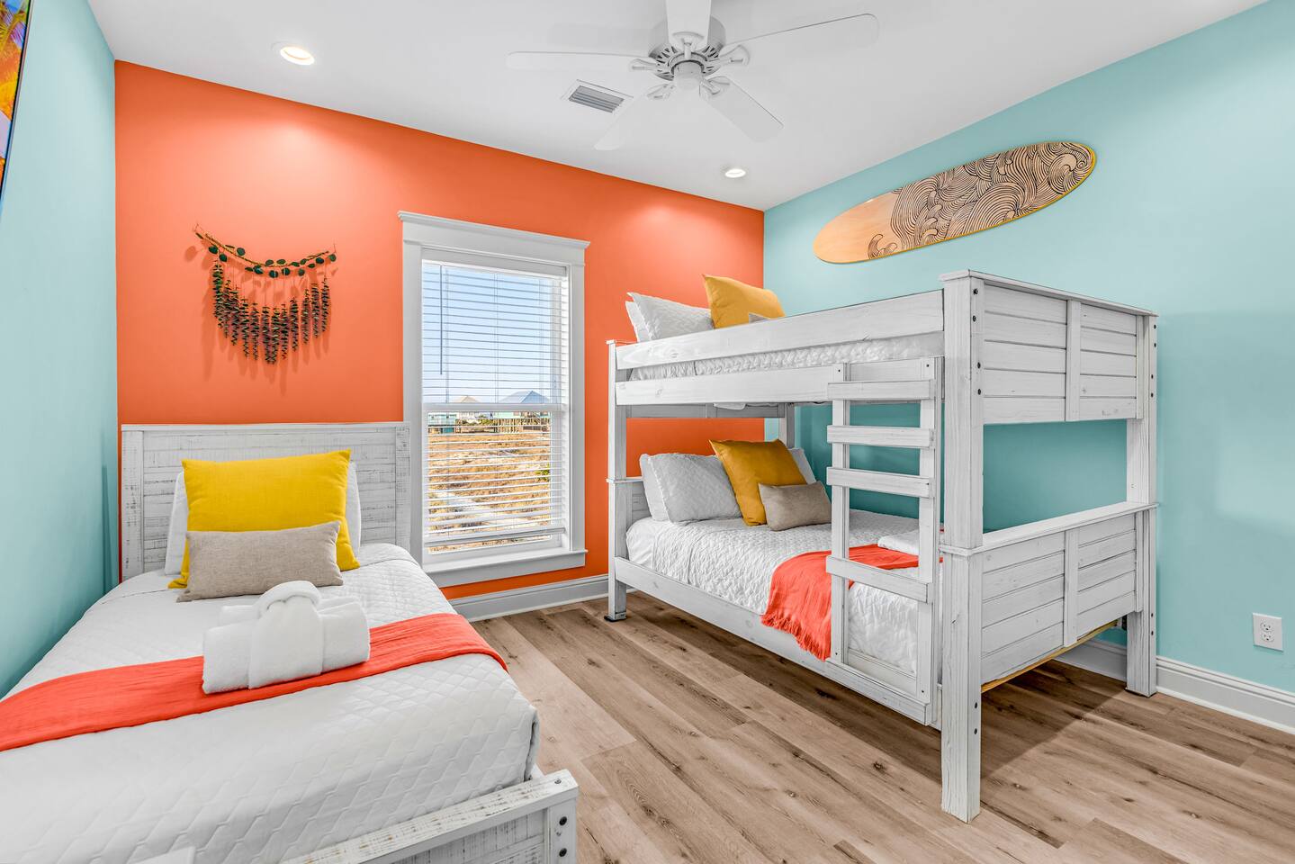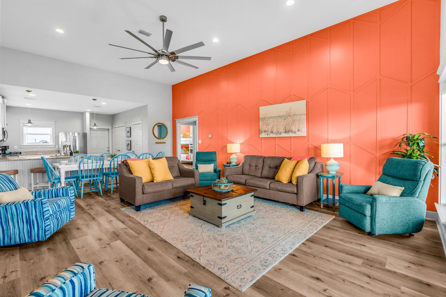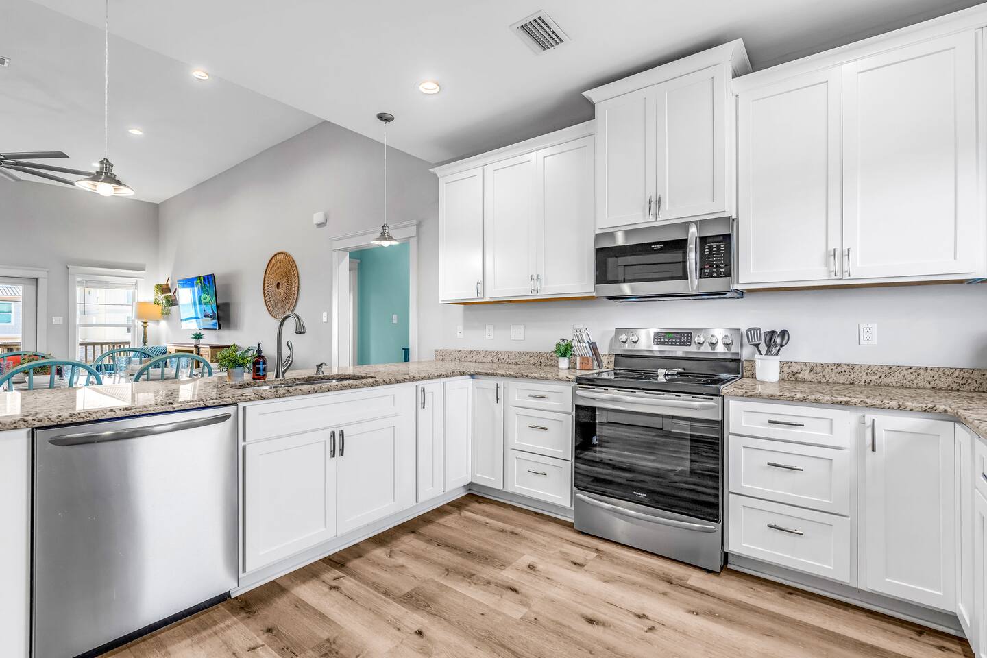 Gulf Views, Hot Tub & Beach Across the Street—All on One Level This single-story coastal retreat in Gulf Shores gives you the best of both worlds: stunning Gulf views from your front deck and beach access just steps across the street—all without the oceanfront price tag. With three king suites, a bunk room for the kids, and a killer outdoor hangout area complete with hot tub, bar, and games, this is where beach days and late nights come together perfectly. Wake up to Gulf breezes, spend your days between the sand and the hot tub, and end each night with sunset cocktails from your front-row deck. WHAT MAKES THIS HOME SPECIAL ✔ Gulf views from the front deck + beach across the street ✔ Single-level layout—no stairs, easy living ✔ Private outdoor bar, hot tub & game area under the house ✔ 3 king suites with private bathrooms + bunk room ✔ Dog-friendly—beach life is better with your pup THE SPACE Your Gulf-facing front deck is where mornings begin—coffee in hand, sunrise painting the water, planning which beach you'll hit first. As the day winds down, grab a seat with a cold drink and watch the sky turn pink and gold over the waves. Below, your private shaded hangout area is the real MVP. Fire up the outdoor bar, sink into the hot tub after a long beach day, challenge someone to cornhole, and let the good times roll. Rinse off the sand in the outdoor shower and decide whether your next move is the hot tub or back to the beach—it's only across the street. Inside, the fully stocked kitchen handles everything from quick breakfast tacos to full seafood spreads. The dining table seats everyone comfortably, and the living room invites you to kick back on stylish boho-chic seating and stream whatever you're binge-watching on the 65" Smart TV. The single-level layout means no one's hauling luggage upstairs or chasing kids between floors—just easy, breezy beach house living. WHERE EVERYONE SLEEPS 3 king suites with Gulf views, private en-suite bathrooms, 50" Smart TVs 1 bunk room with full-over-full bunk + extra twin bed—perfect for kids or teens All beds and mattresses are brand new as of 2025. Four full bathrooms total (three private en-suites, one hallway bath for the bunk room) with spa-style showers, boho accents, and plush towels throughout. GOOD TO KNOW ✔ Beach chairs, wagon, toys, and gear included ✔ Outdoor shower for easy post-beach cleanup ✔ Washer and dryer in-unit ✔ Central A/C and fast Wi-Fi ✔ Dining favorites 5 minutes away (Tacky Jacks, Jessie's, Sassy Bass) ✔ Downtown Gulf Shores is 20 minutes down the coast BOOK YOUR ESCAPE This is the kind of place that becomes your new beach tradition—where you're close enough to hear the waves but far enough from the crowd to have your own vibe. Morning beach walks, afternoon hot tub hangs, evening games at the bar. If you want Gulf views, easy beach access, and a single-level layout that just works, you've found it. Availability fills fast—check your dates now. Rose & Doug Waves & Wilderness