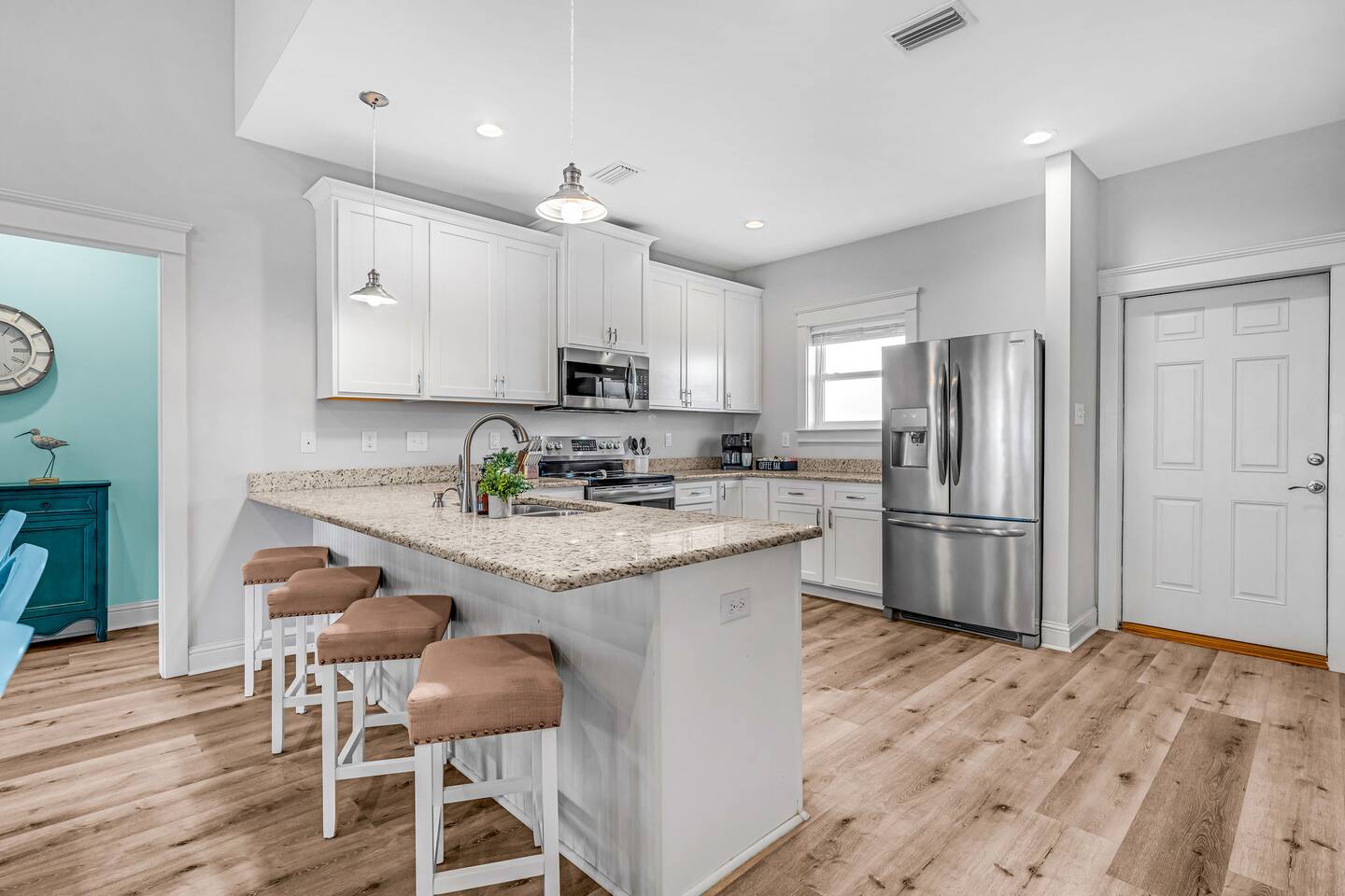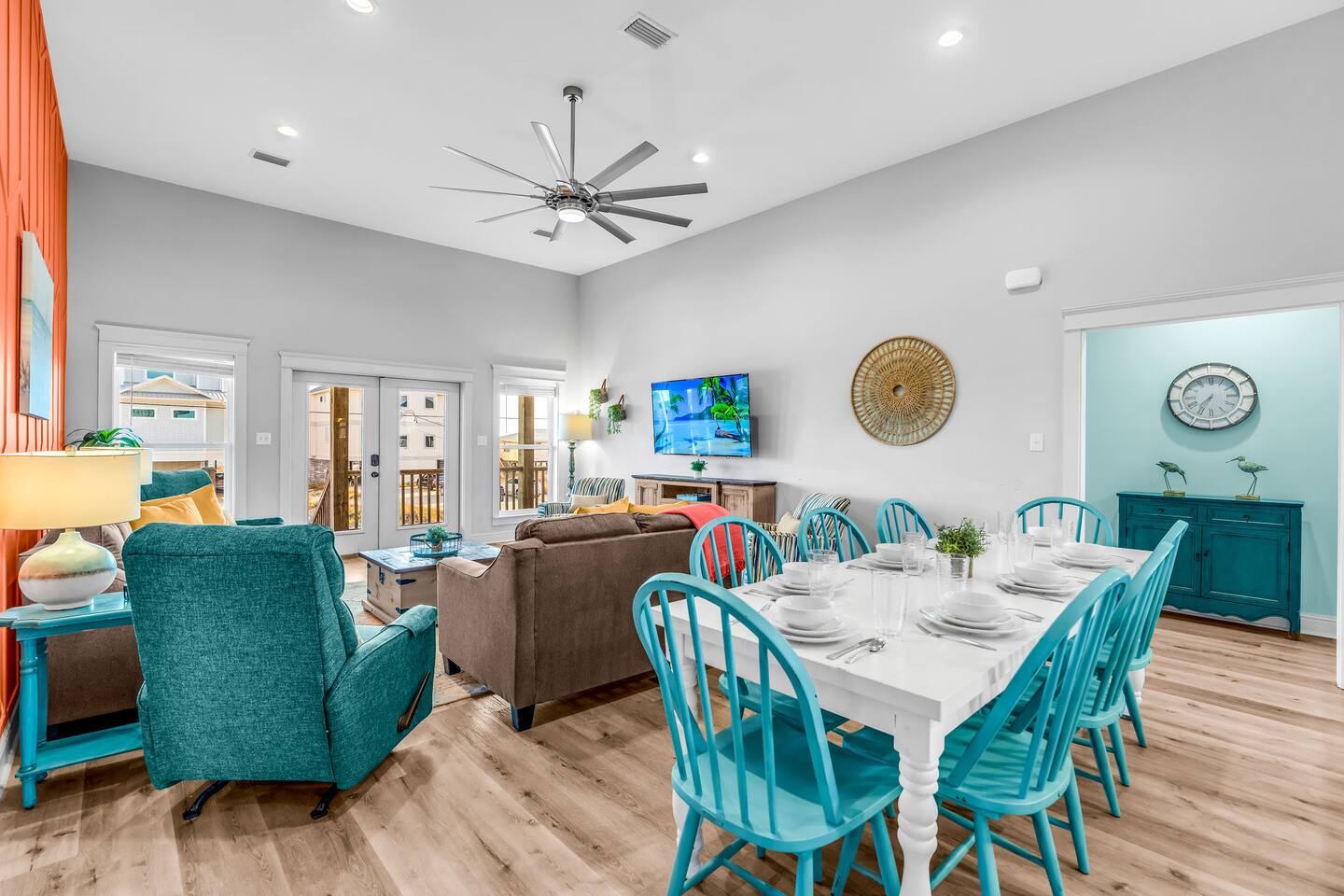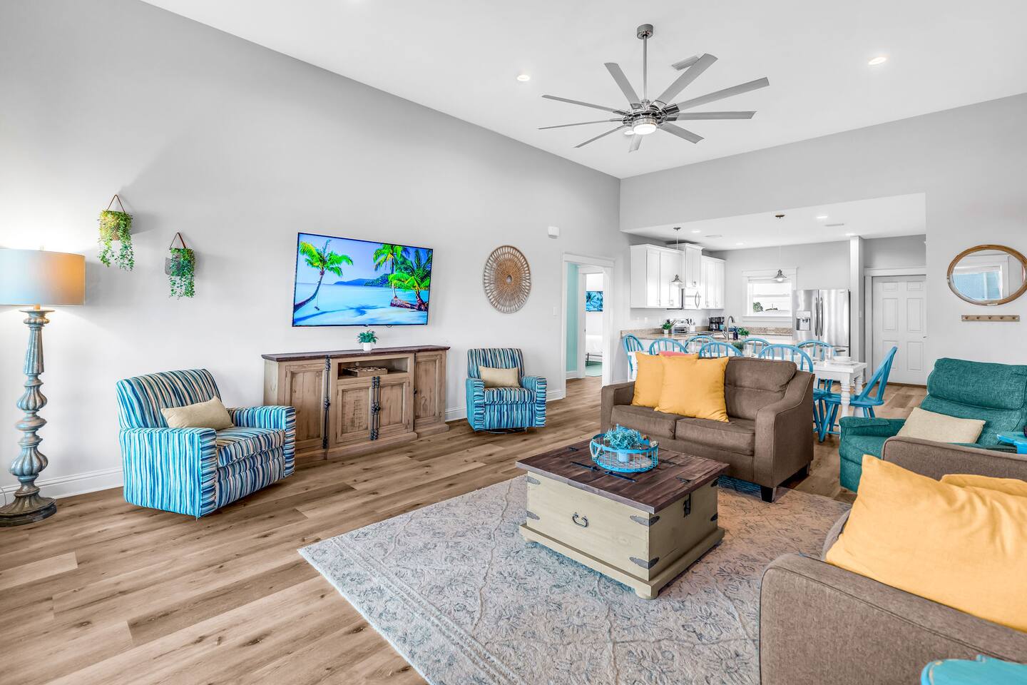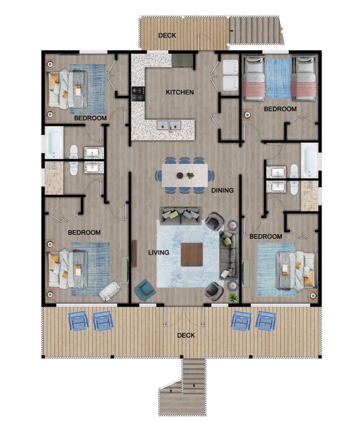 Gulf Views, Hot Tub & Beach Across the Street—All on One Level This single-story coastal retreat in Gulf Shores gives you the best of both worlds: stunning Gulf views from your front deck and beach access just steps across the street—all without the oceanfront price tag. With three king suites, a bunk room for the kids, and a killer outdoor hangout area complete with hot tub, bar, and games, this is where beach days and late nights come together perfectly. Wake up to Gulf breezes, spend your days between the sand and the hot tub, and end each night with sunset cocktails from your front-row deck. WHAT MAKES THIS HOME SPECIAL ✔ Gulf views from the front deck + beach across the street ✔ Single-level layout—no stairs, easy living ✔ Private outdoor bar, hot tub & game area under the house ✔ 3 king suites with private bathrooms + bunk room ✔ Dog-friendly—beach life is better with your pup THE SPACE Your Gulf-facing front deck is where mornings begin—coffee in hand, sunrise painting the water, planning which beach you'll hit first. As the day winds down, grab a seat with a cold drink and watch the sky turn pink and gold over the waves. Below, your private shaded hangout area is the real MVP. Fire up the outdoor bar, sink into the hot tub after a long beach day, challenge someone to cornhole, and let the good times roll. Rinse off the sand in the outdoor shower and decide whether your next move is the hot tub or back to the beach—it's only across the street. Inside, the fully stocked kitchen handles everything from quick breakfast tacos to full seafood spreads. The dining table seats everyone comfortably, and the living room invites you to kick back on stylish boho-chic seating and stream whatever you're binge-watching on the 65" Smart TV. The single-level layout means no one's hauling luggage upstairs or chasing kids between floors—just easy, breezy beach house living. WHERE EVERYONE SLEEPS 3 king suites with Gulf views, private en-suite bathrooms, 50" Smart TVs 1 bunk room with full-over-full bunk + extra twin bed—perfect for kids or teens All beds and mattresses are brand new as of 2025. Four full bathrooms total (three private en-suites, one hallway bath for the bunk room) with spa-style showers, boho accents, and plush towels throughout. GOOD TO KNOW ✔ Beach chairs, wagon, toys, and gear included ✔ Outdoor shower for easy post-beach cleanup ✔ Washer and dryer in-unit ✔ Central A/C and fast Wi-Fi ✔ Dining favorites 5 minutes away (Tacky Jacks, Jessie's, Sassy Bass) ✔ Downtown Gulf Shores is 20 minutes down the coast BOOK YOUR ESCAPE This is the kind of place that becomes your new beach tradition—where you're close enough to hear the waves but far enough from the crowd to have your own vibe. Morning beach walks, afternoon hot tub hangs, evening games at the bar. If you want Gulf views, easy beach access, and a single-level layout that just works, you've found it. Availability fills fast—check your dates now. Rose & Doug Waves & Wilderness