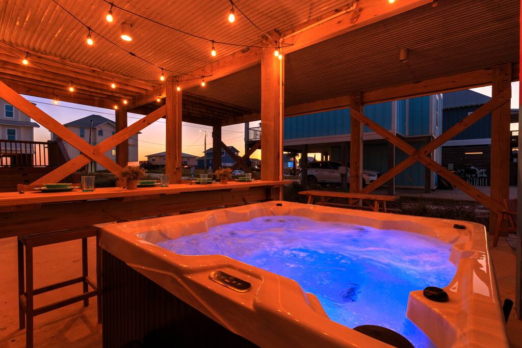 ✔️ 6- Person Hot Tub ✔ Public beach access just steps from your door and stunning Gulf views from the home. ✔️ 4 bedrooms, 4 baths, Sleeps 10 ✔️ Gulf-Facing Deck – Soak in the salt air and watch the waves roll in from an expansive deck with lounge seating. ✔️ Outdoor Oasis – Hang in your own shaded bar area under the house, complete with hot tub, cornhole, and comfy seating ✔️ Beach Gear, Linens & Soaps Included. ✔️ Outdoor Shower ✔️ Dog-Friendly