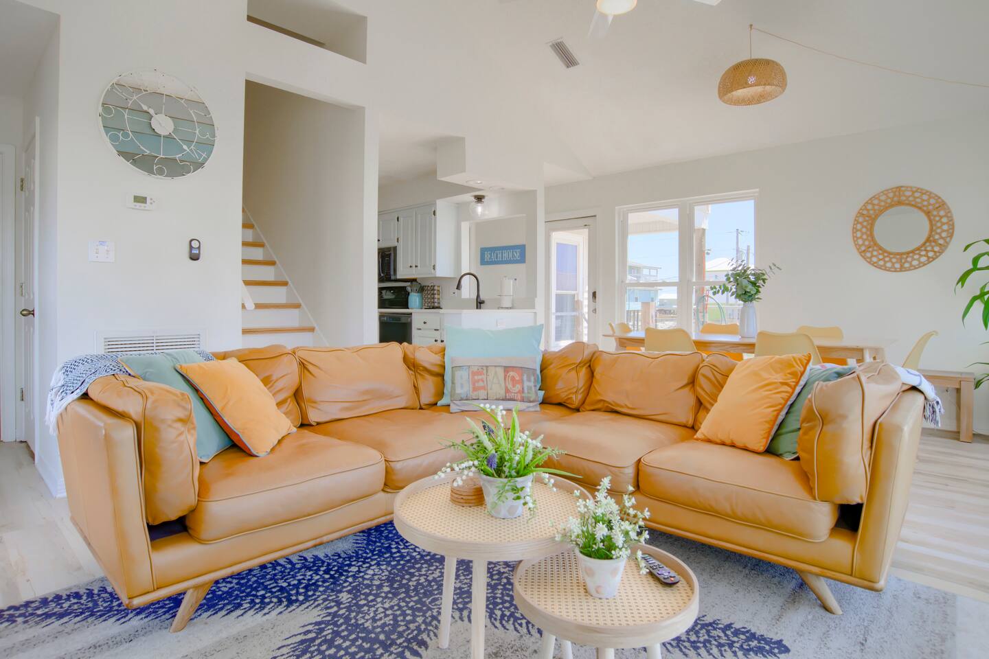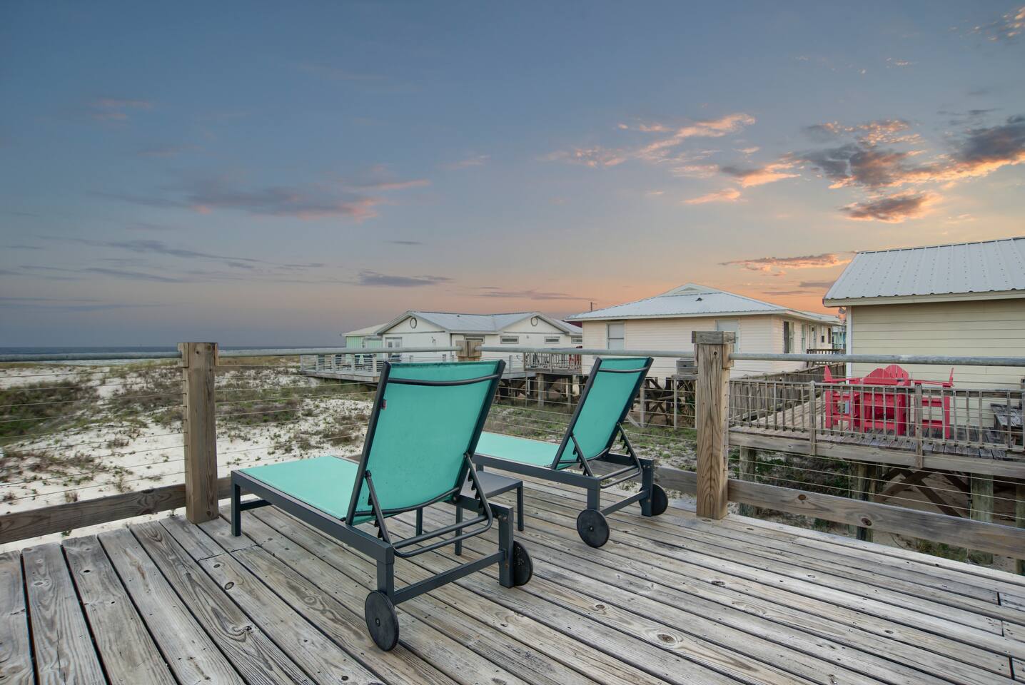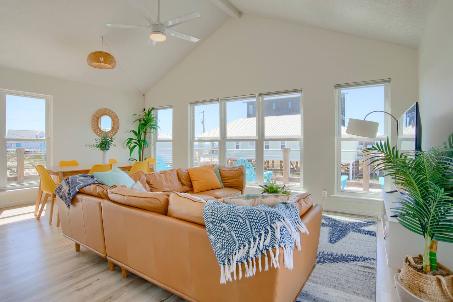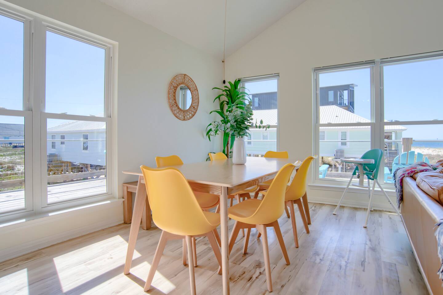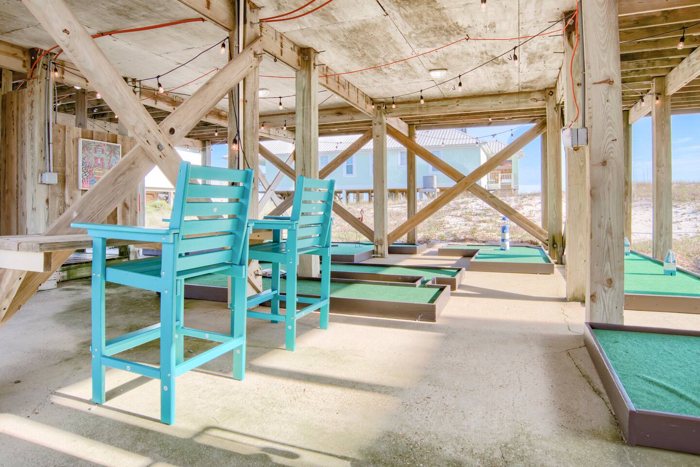 Steps to the Beach, Wrap-Around Deck & Mini Golf at Your Door Wake up to the sound of crashing waves and step directly onto the sand—no roads to cross, no long walks, just pure beachfront access from your door. This 4-bedroom Gulf Shores beach house features a wrap-around deck with unobstructed ocean views, an 8-hole putt-putt course, and all the coastal charm you need for the perfect family getaway. Spend your days between the beach and the deck, challenge the kids to mini golf or cornhole, fire up the grill for sunset dinners, and let the sound of the waves be your soundtrack. WHAT MAKES THIS HOME SPECIAL ✔ Direct beach access—steps from your door to the sand ✔ Wrap-around deck with sweeping Gulf views ✔ 8-hole mini golf course + cornhole under the house ✔ Sleeps 10 in 4 bedrooms with coastal-boho vibes ✔ Dog-friendly home and beach—bring the whole pack THE SPACE Floor-to-ceiling windows frame postcard-worthy Gulf views from the moment you walk in. The open-concept main floor flows seamlessly from kitchen to dining to living room, keeping everyone connected whether you're prepping breakfast burritos, dealing cards at the table, or sinking into the cognac leather sectional for movie night on the 65" Smart TV. Outside, your wrap-around deck is the heart of the home. Lounge in the Adirondack chairs with your morning coffee, gather around the outdoor dining table for grilled seafood dinners, and watch the sun dip into the Gulf with a cold drink in hand. When you're ready for the beach, it's right there—just a few steps and you're toes-in-the-sand. The real surprise? Your own 8-hole putt-putt course and cornhole setup under the house. Perfect for post-beach entertainment, friendly competition, or keeping the kids busy while you finish that chapter. Rinse off the sand in the outdoor shower and decide whether your next move is mini golf, the beach, or back to the deck. WHERE EVERYONE SLEEPS Main Floor: 2 king bedrooms (one with Gulf views from bed), Smart TVs Upstairs: 1 king bedroom with Gulf views, Smart TV Upstairs: 1 bunk room with 2 twin-over-twin bunks (sleeps 4 kids), Smart TV Two full bathrooms (one per floor). All linens and towels provided. GOOD TO KNOW ✔ Beach chairs, boogie boards, toys, and wagon included ✔ Outdoor shower for easy cleanup ✔ BBQ grill on the deck ✔ Pack 'n Play and high chair provided ✔ Washer and dryer in-unit ✔ Central A/C and fast Wi-Fi ✔ Local shops 5 minutes away, downtown Gulf Shores 20 minutes ✔ Tacky Jack's and Sassy Bass nearby for easy dinners out BOOK YOUR ESCAPE This is the kind of place where vacation just flows—beach walks, mini golf tournaments, deck hangs, repeat. If you want direct beach access, sweeping Gulf views, and built-in entertainment for the whole crew, this is it. Availability fills fast—check your dates now. Doug & Rose Waves & Wilderness
