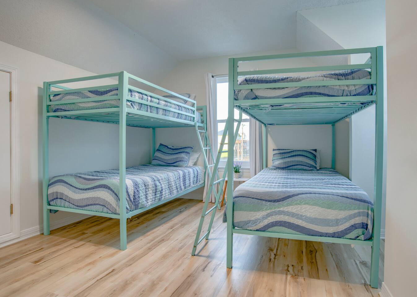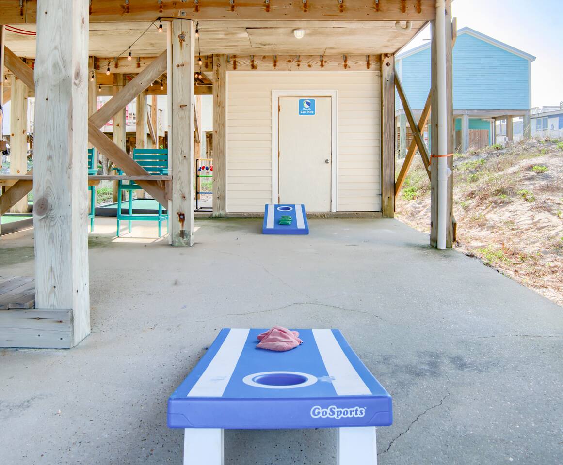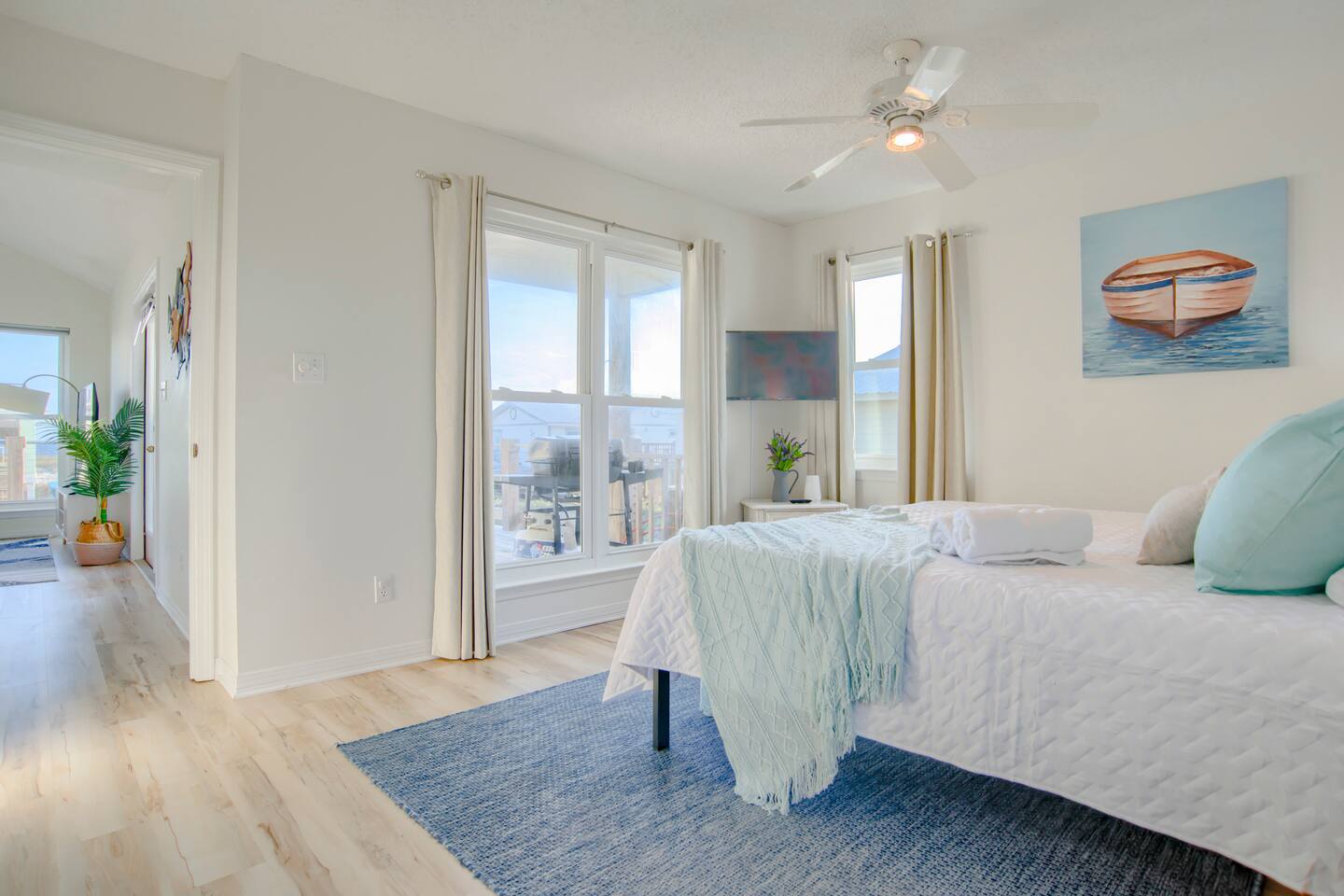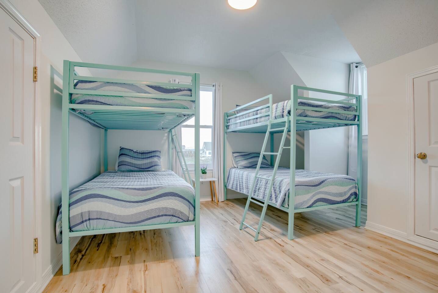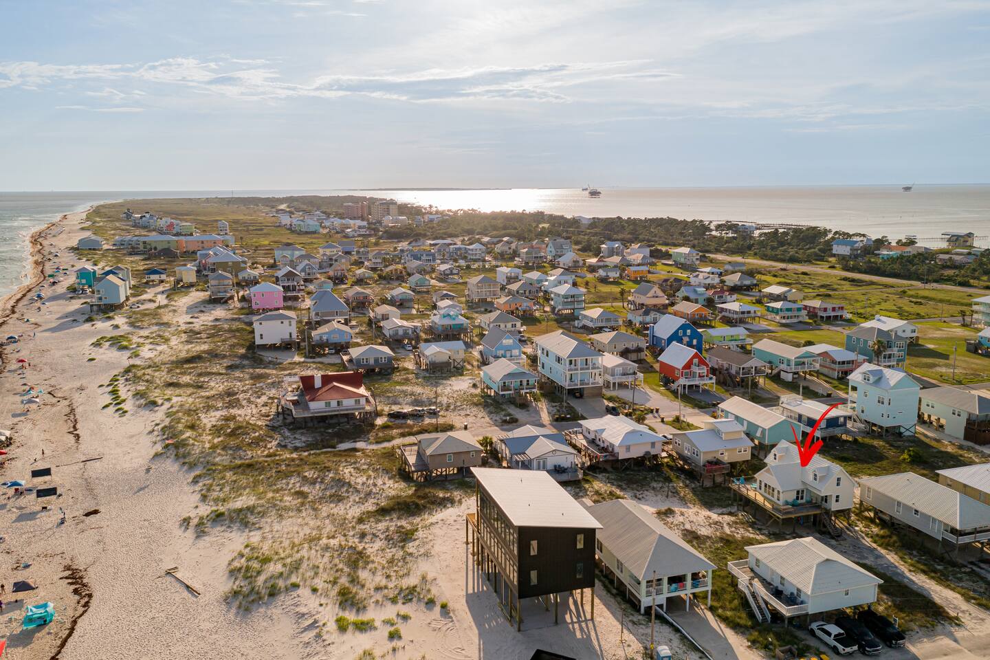 Steps to the Beach, Wrap-Around Deck & Mini Golf at Your Door Wake up to the sound of crashing waves and step directly onto the sand—no roads to cross, no long walks, just pure beachfront access from your door. This 4-bedroom Gulf Shores beach house features a wrap-around deck with unobstructed ocean views, an 8-hole putt-putt course, and all the coastal charm you need for the perfect family getaway. Spend your days between the beach and the deck, challenge the kids to mini golf or cornhole, fire up the grill for sunset dinners, and let the sound of the waves be your soundtrack. WHAT MAKES THIS HOME SPECIAL ✔ Direct beach access—steps from your door to the sand ✔ Wrap-around deck with sweeping Gulf views ✔ 8-hole mini golf course + cornhole under the house ✔ Sleeps 10 in 4 bedrooms with coastal-boho vibes ✔ Dog-friendly home and beach—bring the whole pack THE SPACE Floor-to-ceiling windows frame postcard-worthy Gulf views from the moment you walk in. The open-concept main floor flows seamlessly from kitchen to dining to living room, keeping everyone connected whether you're prepping breakfast burritos, dealing cards at the table, or sinking into the cognac leather sectional for movie night on the 65" Smart TV. Outside, your wrap-around deck is the heart of the home. Lounge in the Adirondack chairs with your morning coffee, gather around the outdoor dining table for grilled seafood dinners, and watch the sun dip into the Gulf with a cold drink in hand. When you're ready for the beach, it's right there—just a few steps and you're toes-in-the-sand. The real surprise? Your own 8-hole putt-putt course and cornhole setup under the house. Perfect for post-beach entertainment, friendly competition, or keeping the kids busy while you finish that chapter. Rinse off the sand in the outdoor shower and decide whether your next move is mini golf, the beach, or back to the deck. WHERE EVERYONE SLEEPS Main Floor: 2 king bedrooms (one with Gulf views from bed), Smart TVs Upstairs: 1 king bedroom with Gulf views, Smart TV Upstairs: 1 bunk room with 2 twin-over-twin bunks (sleeps 4 kids), Smart TV Two full bathrooms (one per floor). All linens and towels provided. GOOD TO KNOW ✔ Beach chairs, boogie boards, toys, and wagon included ✔ Outdoor shower for easy cleanup ✔ BBQ grill on the deck ✔ Pack 'n Play and high chair provided ✔ Washer and dryer in-unit ✔ Central A/C and fast Wi-Fi ✔ Local shops 5 minutes away, downtown Gulf Shores 20 minutes ✔ Tacky Jack's and Sassy Bass nearby for easy dinners out BOOK YOUR ESCAPE This is the kind of place where vacation just flows—beach walks, mini golf tournaments, deck hangs, repeat. If you want direct beach access, sweeping Gulf views, and built-in entertainment for the whole crew, this is it. Availability fills fast—check your dates now. Doug & Rose Waves & Wilderness