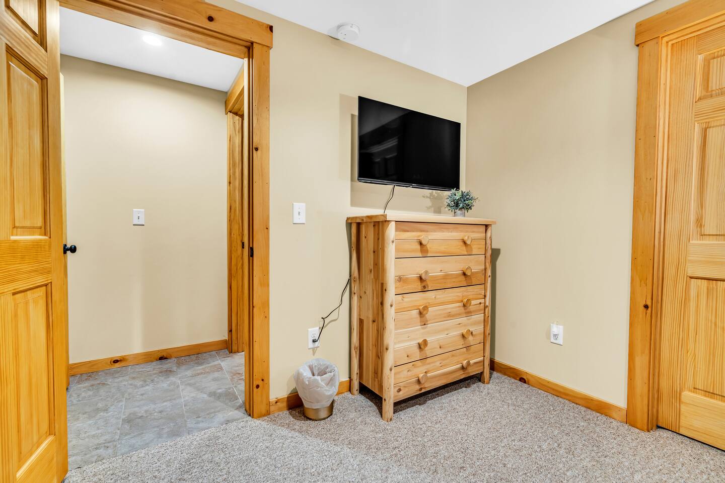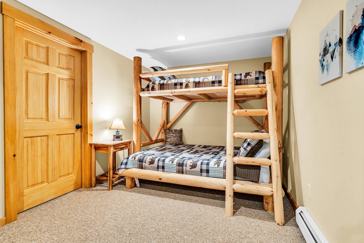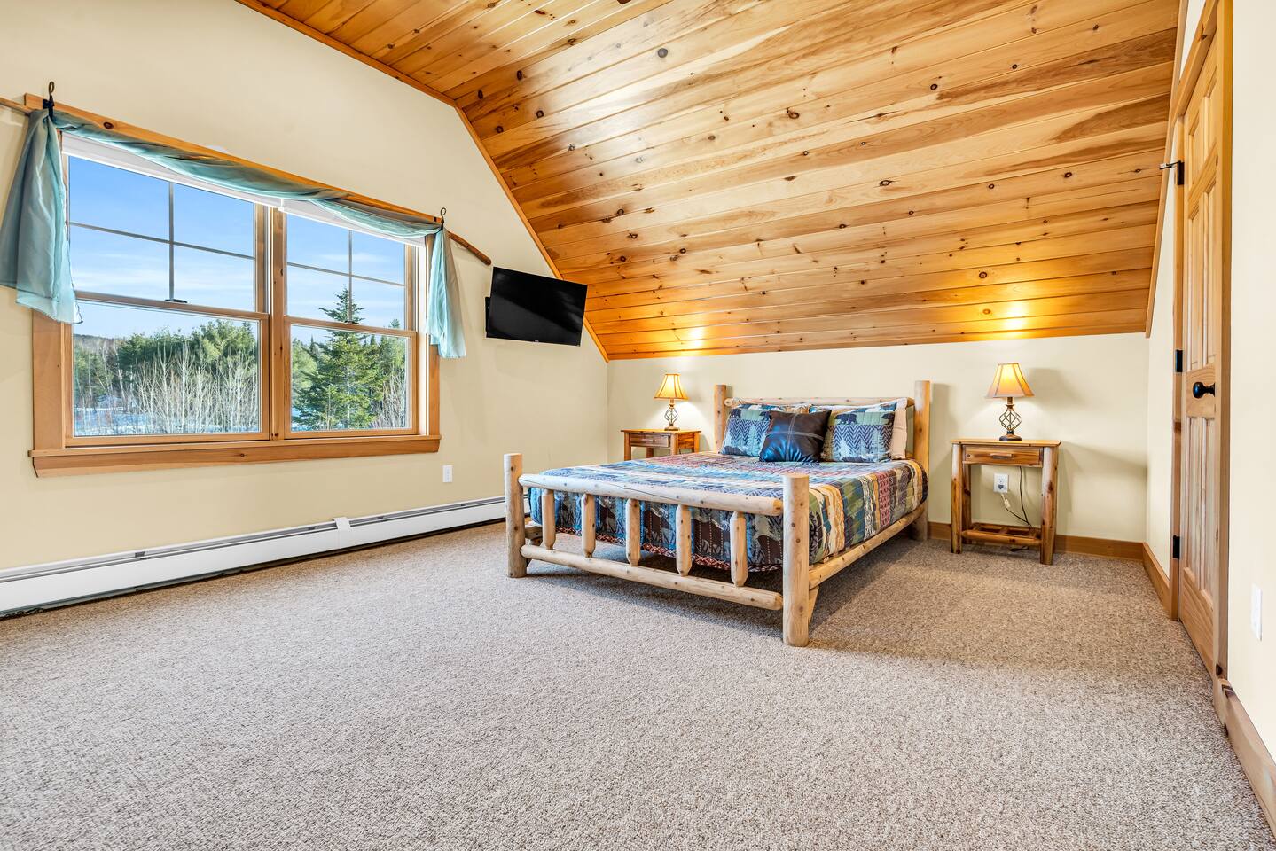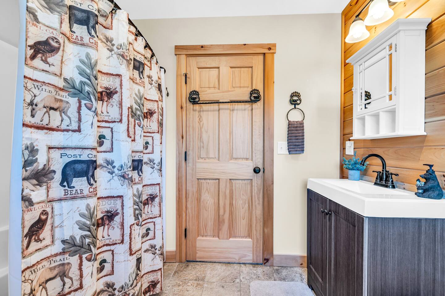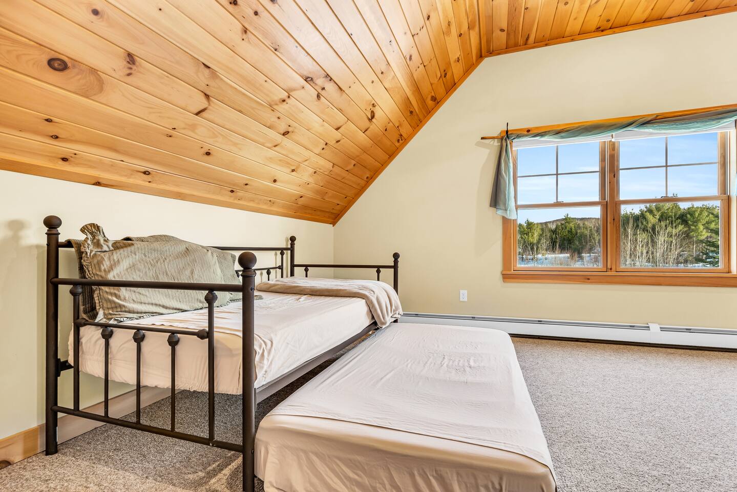 Mountain Views, Hot Tub & Game Room—15 Minutes to Sunday River This three-story Bethel cabin blends rustic Maine charm with modern comfort and unbeatable Western Maine access. Wake up to sweeping views of Sunday River and the Mahoosuc Mountains, soak in your private hot tub after skiing or hiking, and gather in the game room with a full bar and second kitchen. Spend your days on the slopes or trails, then come home to a gas fireplace, plush leather seating, and the kind of mountain retreat where everyone actually relaxes. WHAT MAKES THIS HOME SPECIAL ✔ Stunning Sunday River and Mahoosuc Mountain views ✔ Game room with air hockey, shuffleboard & full bar with second kitchen ✔ Private hot tub and fire pit with mountain backdrop ✔ 15 minutes to Sunday River, 5 minutes to Carter's Cross Country Ski Center ✔ 4 bedrooms sleep up to 12 with flexible bunk layouts ✔ Dog-friendly + whole-house generator ✔ Whole-house generator THE SPACE The spacious living area is designed for gathering and making memories. Sink into plush leather seating around the gas fireplace, stream your favorites on the 65" Smart TV, and let the large windows frame beautiful Sunday River and Mahoosuc Mountain views. The open layout connects kitchen, dining, and living spaces so no one's left out—whether you're cooking breakfast, dealing cards at the dining table, or just relaxing after a day outside. The fully stocked gourmet kitchen handles everything with modern appliances, ample counter space, and all the cookware you need. The dining table is perfect for home-cooked meals or takeout from Bethel's nearby favorites. The game room is a game-changer—air hockey, shuffleboard, a full bar with a second kitchen, and a large Smart TV for movies, sports, or rainy-day entertainment. This space works for kids, teens, and adults alike—everyone finds their happy place here. Outside, your private hot tub overlooks stunning mountain views—the perfect spot for après-ski soaks or post-hike recovery. Gather around the fire pit for stargazing and s'mores, lounge on the large deck in Adirondack chairs with Sunday River spread out before you, fire up the BBQ grill, or challenge someone to cornhole under the cabin. Peaceful surroundings and nature all around. WHERE EVERYONE SLEEPS Master Bedroom: Queen bed with en-suite bath Bedroom 2: Queen bed with twin trundle Bedroom 3: Large bunk room with twin bunks, 2 additional twin beds + full bed (sleeps 6) Bedroom 4: Full-over-twin bunk bed All bedrooms are cozy and designed for rest. Bathrooms feature tub/shower combos with upgraded finishes. All linens, towels, and soaps provided. GOOD TO KNOW ✔ Parking for up to 6 vehicles on private road ✔ Whole-house generator for uninterrupted stays ✔ Washer and dryer in-unit ✔ Central A/C and fast fiber Wi-Fi ✔ High chair available ✔ 15 minutes to Sunday River and Mt. Abram Ski & Bike Park ✔ 5 minutes to Carter's Cross Country Ski Center ✔ 10 minutes to downtown Bethel for dining, shopping & local charm ✔ 30 minutes to Frenchman's Hole for scenic summer swims BOOK YOUR ESCAPE This is the kind of mountain cabin where ski trips, fall foliage weekends, and summer getaways all work perfectly—because the views never quit, the game room keeps everyone entertained, and the hot tub is always waiting. If you want Sunday River access, rustic charm, and modern comfort, this is it. Availability fills fast—check your dates now. Doug & Rose Waves & Wilderness