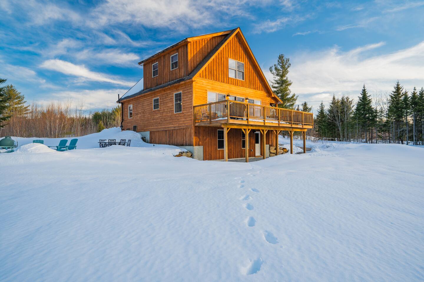 ✔ Modern 4-Bedroom, 4-Bath Cabin – Sleeps 12 ✔ Relax in a 7-Person Hot Tub Under Cozy String Lights ✔ Game Room with Bar, Air Hockey, Shuffleboard, & SMART TV ✔ 15 Min to Sunday River & Mt Abram, 10 Min to Downtown ✔ Patio with Fire Pit, Adirondack Chairs, Dining Areas, and BBQ Grill ✔ Spacious Deck with Stunning Views of Sunday River & Mahoosuc Mountains ✔ Cozy Gas Fireplace, A/C, and Fast Fiber WiFi ✔ Dog-Friendly (w/ fee) ✔ High Chair, Pack N' Play, & All Linens/Towels Provided