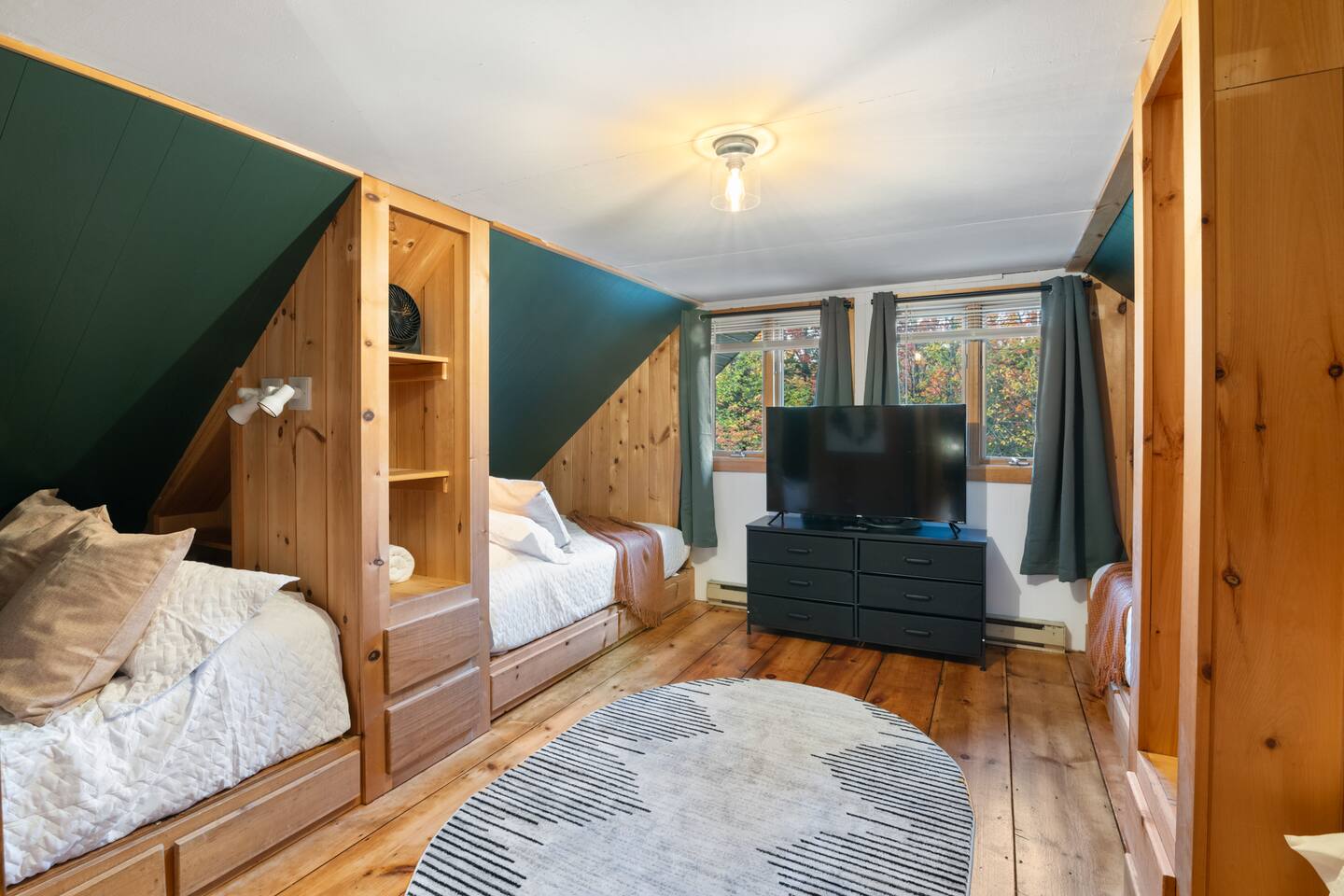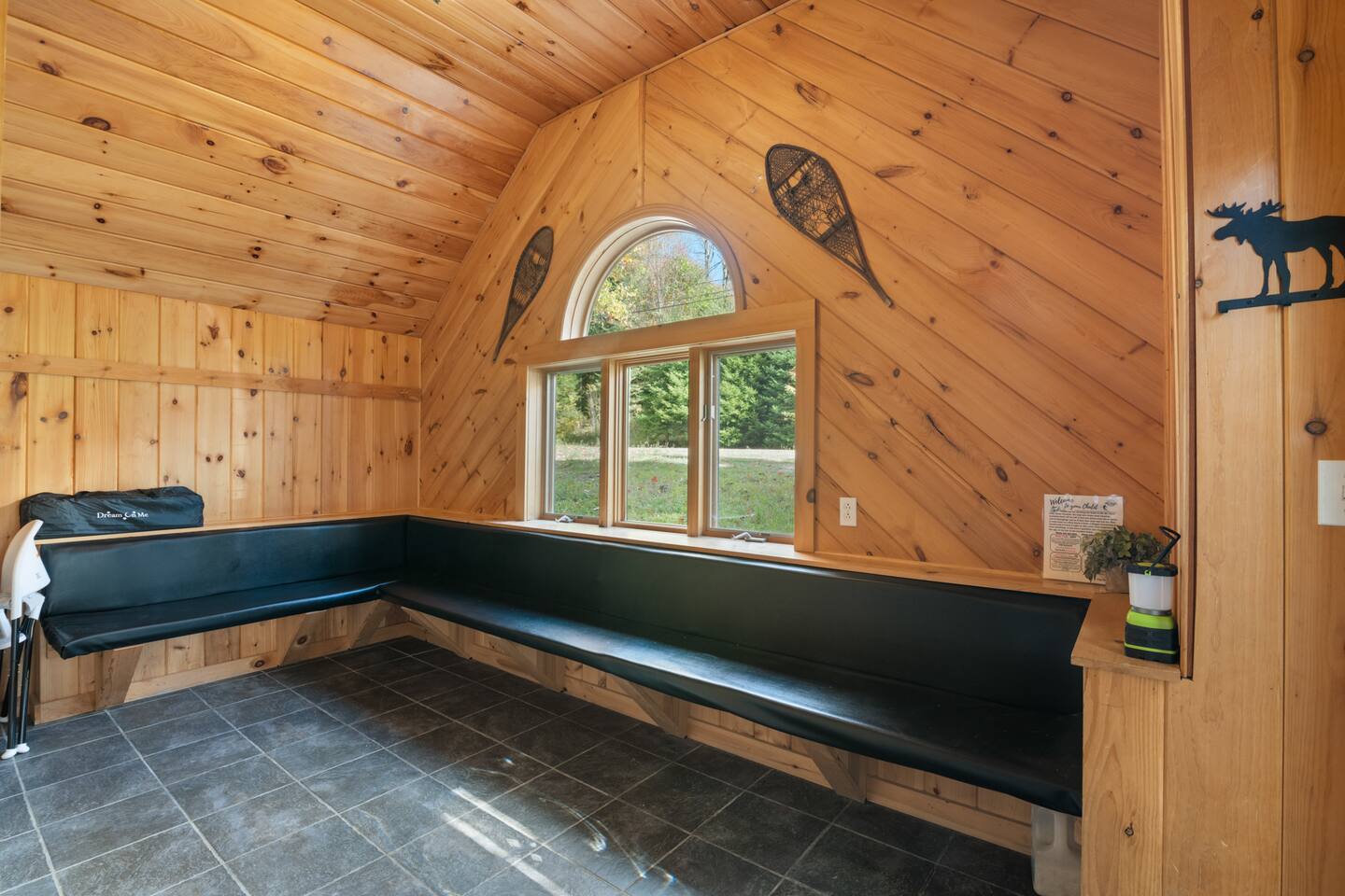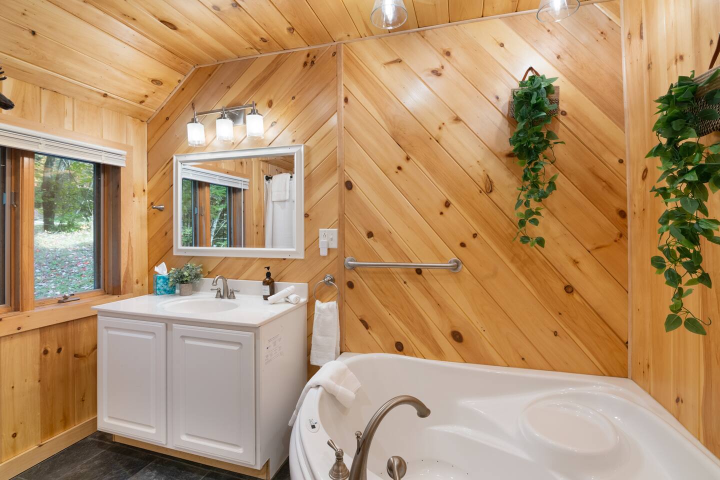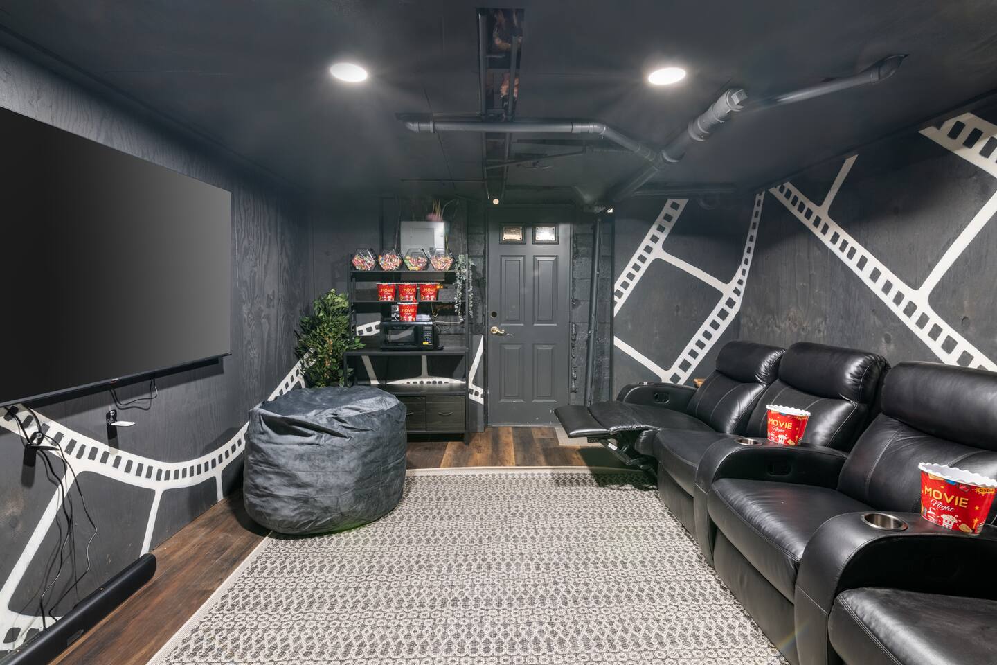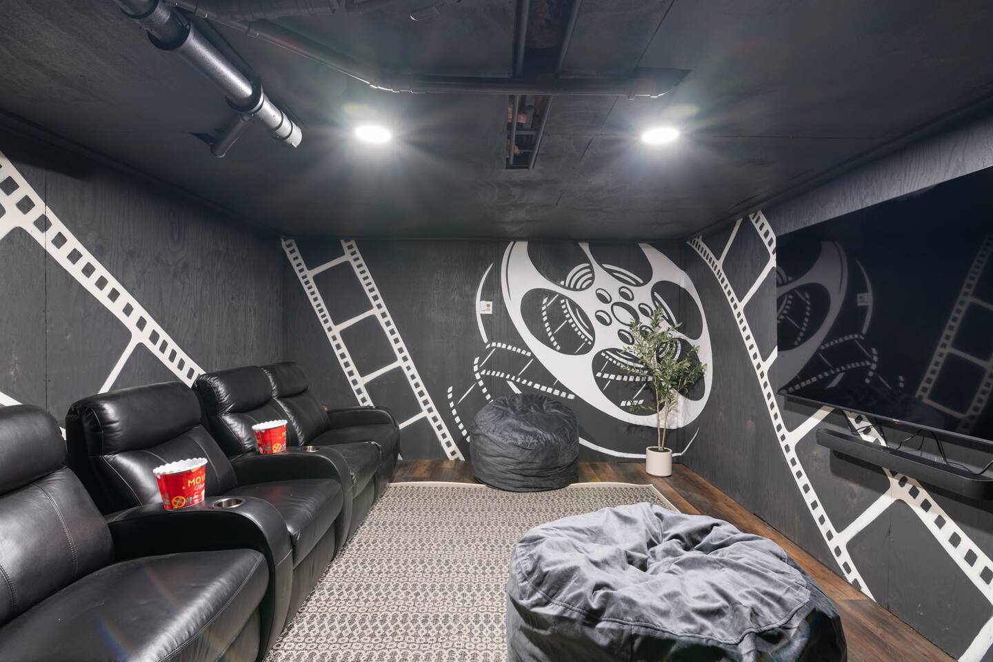 Vermont Chalet with Theater Room, Game Room & Hot Tub Near Mount Snow This 3-story Vermont chalet is loaded for mountain getaways—private theater with reclining seats and candy bar, top-tier game room with arcade classics and custom murals, hot tub under the stars, and a prime location near Mount Snow and Southern Vermont's best outdoor adventures. Spend your days skiing, hiking, or exploring everything Vermont has to offer, then come home to knotty pine charm, modern comfort, and the kind of entertainment that keeps everyone happy. WHAT MAKES THIS HOME SPECIAL ✔ Private theater room with leather recliners, surround sound & candy bar ✔ Game room with air hockey, shuffleboard, arcade games & 75" Smart TV ✔ Hot tub and fire pit for après-ski relaxation ✔ Minutes to Mount Snow and Southern Vermont trails ✔ 4 bedrooms sleep up to 12 with flexible layouts ✔ Easy year-round access—no steep mountain roads THE SPACE The heart of the chalet is the open living space where everyone naturally gathers. Sink into plush leather seating around the warm electric fireplace, stream your favorites on the Smart TV, and let the natural light pour in through large windows and glass doors. The open layout connects kitchen, dining, and living areas so no one's left out—whether you're cooking breakfast, dealing cards at the dining table, or just relaxing after a day on the mountain. The fully equipped kitchen handles everything from hearty ski-day breakfasts to cozy dinners with modern appliances, generous counter space, and all the cookware you need. The dining area seats your entire group for home-cooked meals, takeout from nearby spots, or late-night conversations that stretch longer than planned. Your private theater room brings the cinema experience home with leather reclining seats, surround sound, and a popcorn and candy bar. Perfect for movie marathons, game days, or giving the kids something to do while adults finish their wine. The game room is where the real fun happens—air hockey, shuffleboard, three arcade games, a 75" Smart TV, and custom murals by a local artist. Rainy day? Restless kids? Competitive adults? Everyone's covered. Outside, soak in the hot tub after a long ski day, roast s'mores around the fire pit under Vermont stars, or fire up the grill on the deck with peaceful wilderness views all around. WHERE EVERYONE SLEEPS Bedroom 1 (Primary): King bed with en-suite bathroom and soaker tub Bedroom 2: Four built-in full beds—great for kids or groups Bedroom 3: Two king beds—perfect for couples or friends sharing Bedroom 4 (Lower Level): Queen bed with twin trundle Three full bathrooms. Every bedroom has a Smart TV. All linens, towels, and soaps are provided. GOOD TO KNOW ✔ Parking for up to 4 vehicles ✔ Easy year-round access—no steep roads ✔ Washer and dryer in-unit ✔ Central A/C and heat ✔ Pack 'n Play and high chair provided ✔ Deck with grill and outdoor dining ✔ Minutes to Mount Snow skiing, hiking & Southern Vermont adventures ✔ Bring your favorite towel for the hot tub BOOK YOUR ESCAPE This is the kind of Vermont chalet where ski trips, fall foliage weekends, and summer getaways all work perfectly—because there's as much to do inside as there is outside. If you want mountain access, modern comfort, and built-in entertainment for the whole crew, this is it. Availability fills fast—check your dates now. Doug & Rose Waves & Wilderness