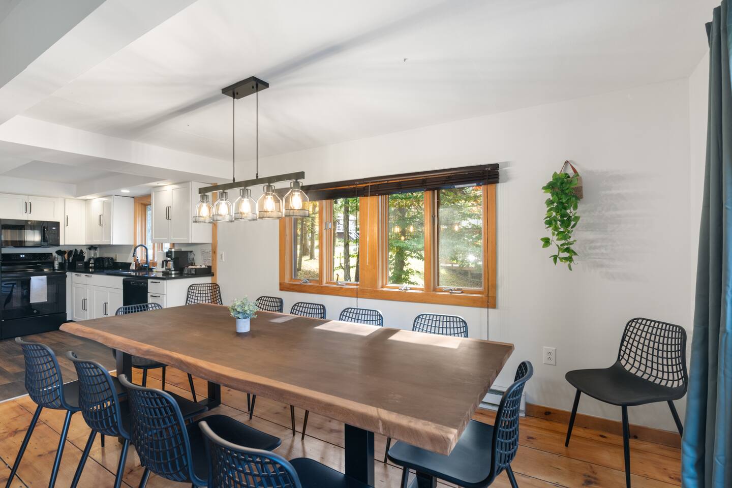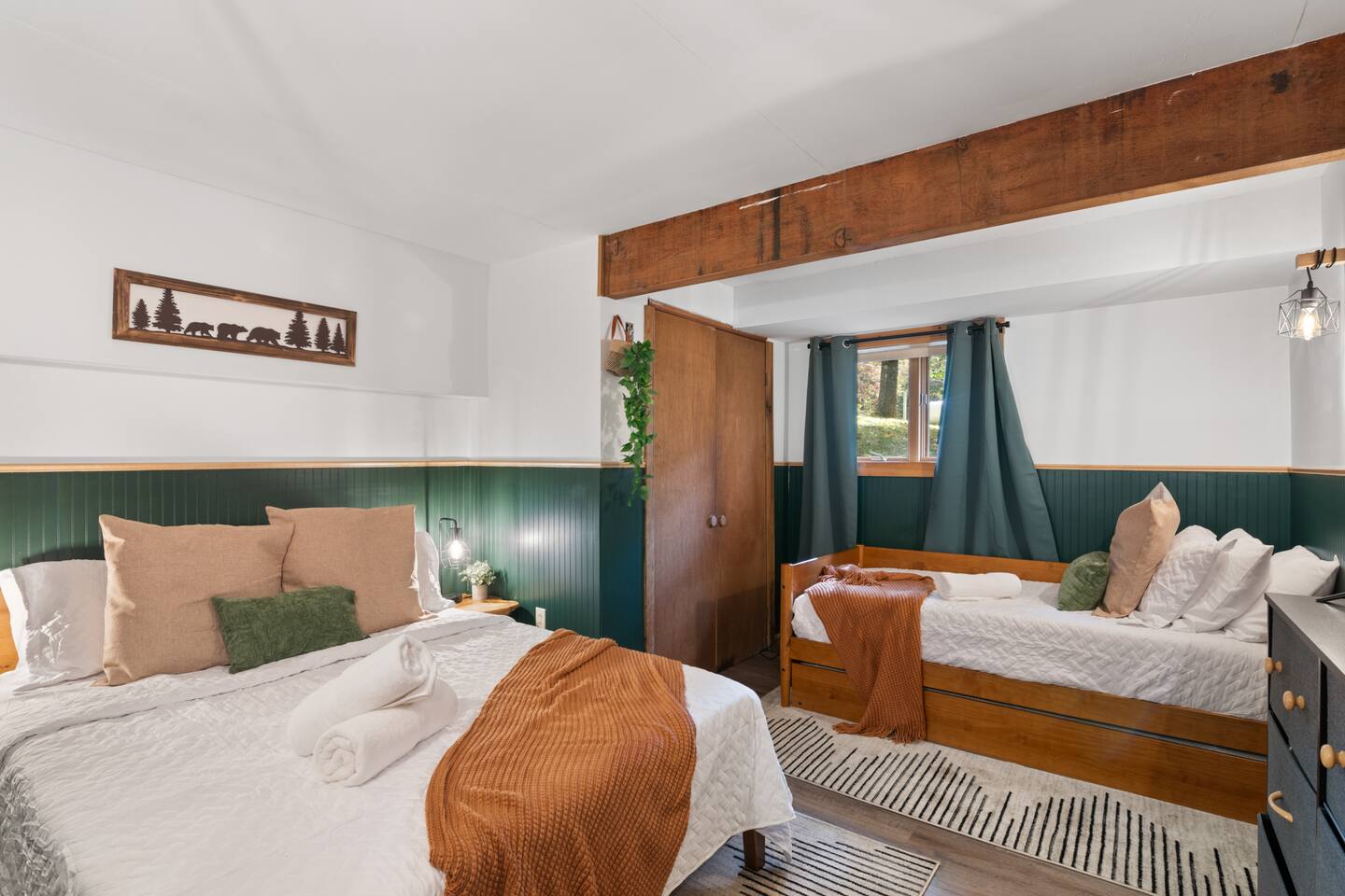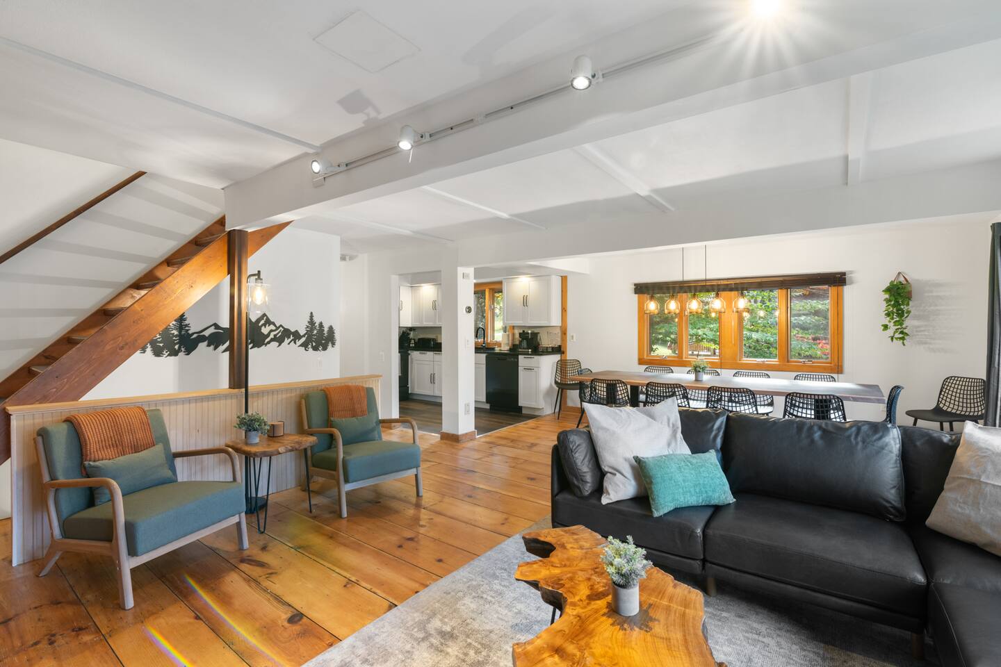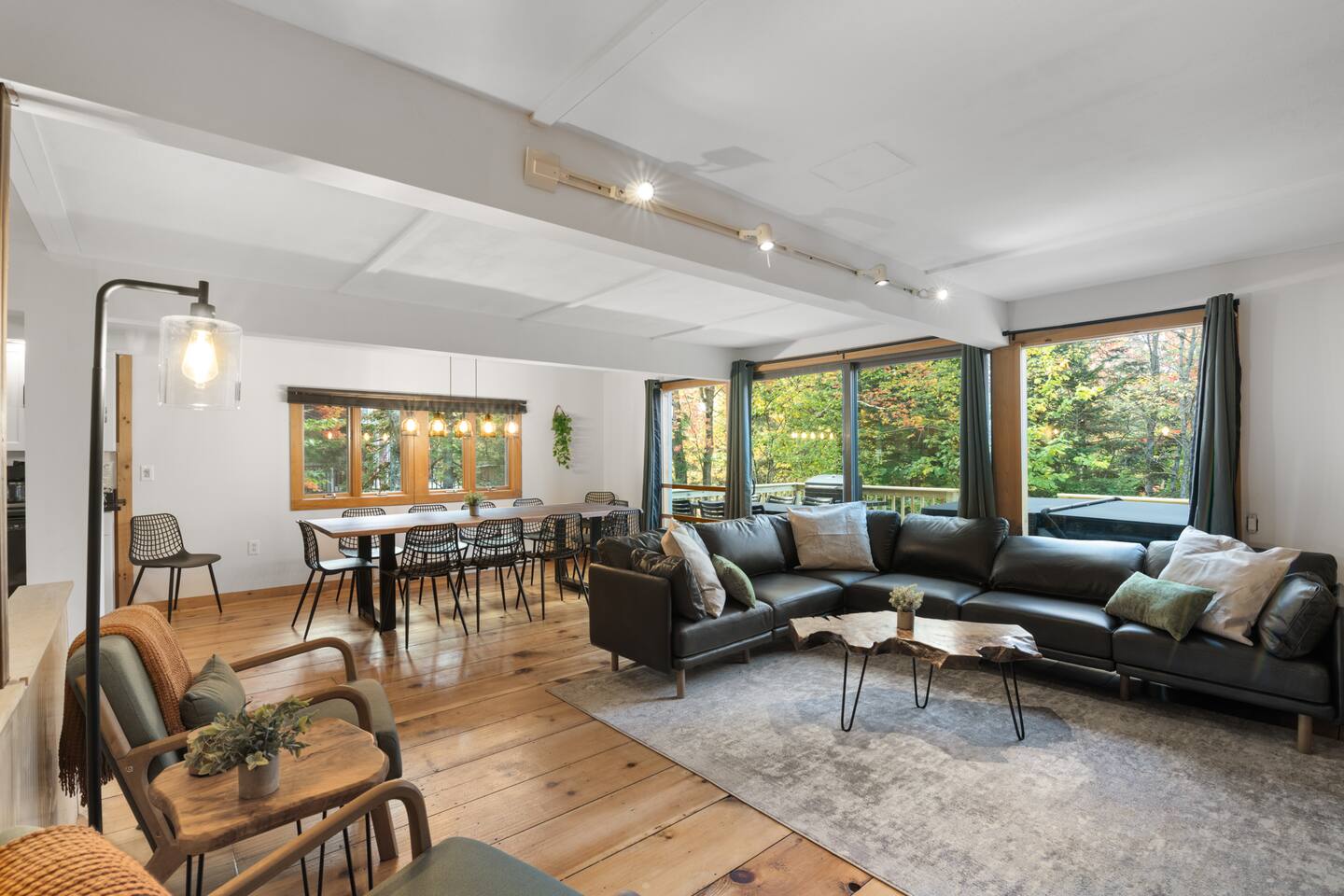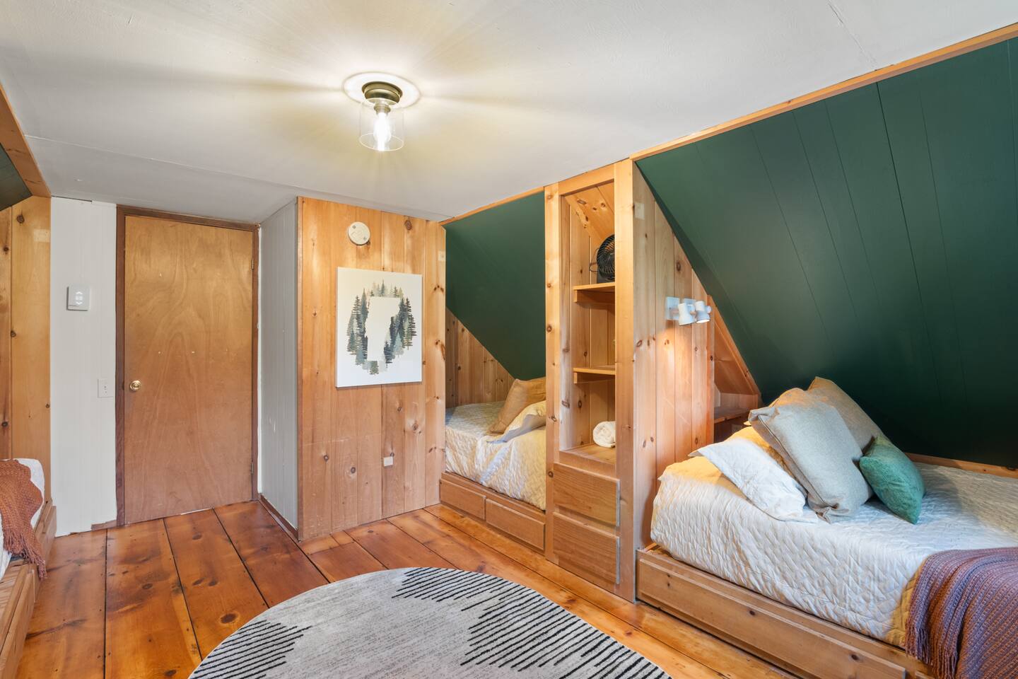 Vermont Chalet with Theater Room, Game Room & Hot Tub Near Mount Snow This 3-story Vermont chalet is loaded for mountain getaways—private theater with reclining seats and candy bar, top-tier game room with arcade classics and custom murals, hot tub under the stars, and a prime location near Mount Snow and Southern Vermont's best outdoor adventures. Spend your days skiing, hiking, or exploring everything Vermont has to offer, then come home to knotty pine charm, modern comfort, and the kind of entertainment that keeps everyone happy. WHAT MAKES THIS HOME SPECIAL ✔ Private theater room with leather recliners, surround sound & candy bar ✔ Game room with air hockey, shuffleboard, arcade games & 75" Smart TV ✔ Hot tub and fire pit for après-ski relaxation ✔ Minutes to Mount Snow and Southern Vermont trails ✔ 4 bedrooms sleep up to 12 with flexible layouts ✔ Easy year-round access—no steep mountain roads THE SPACE The heart of the chalet is the open living space where everyone naturally gathers. Sink into plush leather seating around the warm electric fireplace, stream your favorites on the Smart TV, and let the natural light pour in through large windows and glass doors. The open layout connects kitchen, dining, and living areas so no one's left out—whether you're cooking breakfast, dealing cards at the dining table, or just relaxing after a day on the mountain. The fully equipped kitchen handles everything from hearty ski-day breakfasts to cozy dinners with modern appliances, generous counter space, and all the cookware you need. The dining area seats your entire group for home-cooked meals, takeout from nearby spots, or late-night conversations that stretch longer than planned. Your private theater room brings the cinema experience home with leather reclining seats, surround sound, and a popcorn and candy bar. Perfect for movie marathons, game days, or giving the kids something to do while adults finish their wine. The game room is where the real fun happens—air hockey, shuffleboard, three arcade games, a 75" Smart TV, and custom murals by a local artist. Rainy day? Restless kids? Competitive adults? Everyone's covered. Outside, soak in the hot tub after a long ski day, roast s'mores around the fire pit under Vermont stars, or fire up the grill on the deck with peaceful wilderness views all around. WHERE EVERYONE SLEEPS Bedroom 1 (Primary): King bed with en-suite bathroom and soaker tub Bedroom 2: Four built-in full beds—great for kids or groups Bedroom 3: Two king beds—perfect for couples or friends sharing Bedroom 4 (Lower Level): Queen bed with twin trundle Three full bathrooms. Every bedroom has a Smart TV. All linens, towels, and soaps are provided. GOOD TO KNOW ✔ Parking for up to 4 vehicles ✔ Easy year-round access—no steep roads ✔ Washer and dryer in-unit ✔ Central A/C and heat ✔ Pack 'n Play and high chair provided ✔ Deck with grill and outdoor dining ✔ Minutes to Mount Snow skiing, hiking & Southern Vermont adventures ✔ Bring your favorite towel for the hot tub BOOK YOUR ESCAPE This is the kind of Vermont chalet where ski trips, fall foliage weekends, and summer getaways all work perfectly—because there's as much to do inside as there is outside. If you want mountain access, modern comfort, and built-in entertainment for the whole crew, this is it. Availability fills fast—check your dates now. Doug & Rose Waves & Wilderness