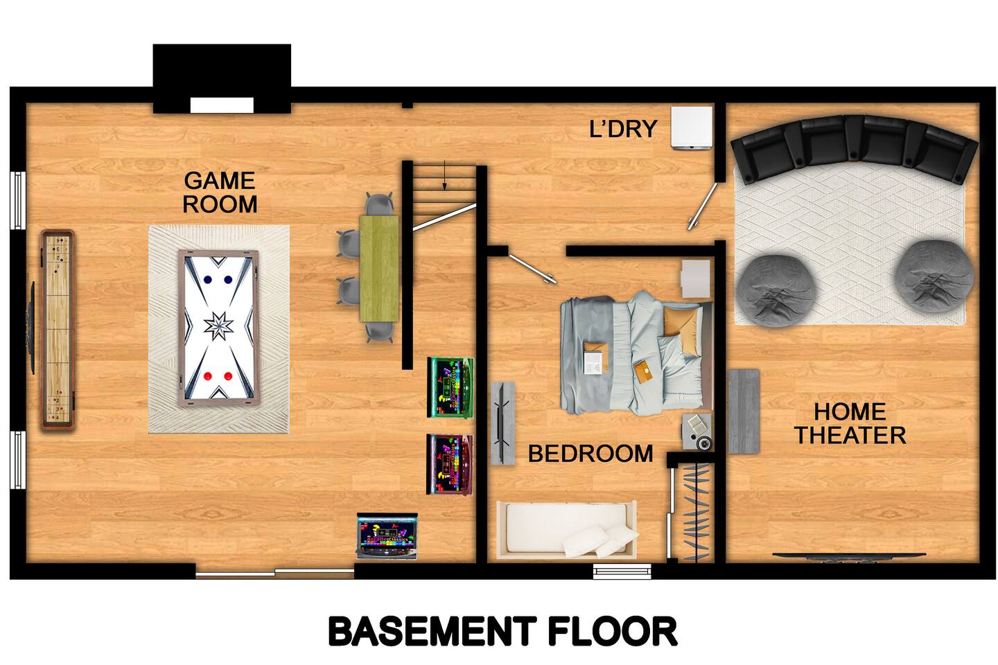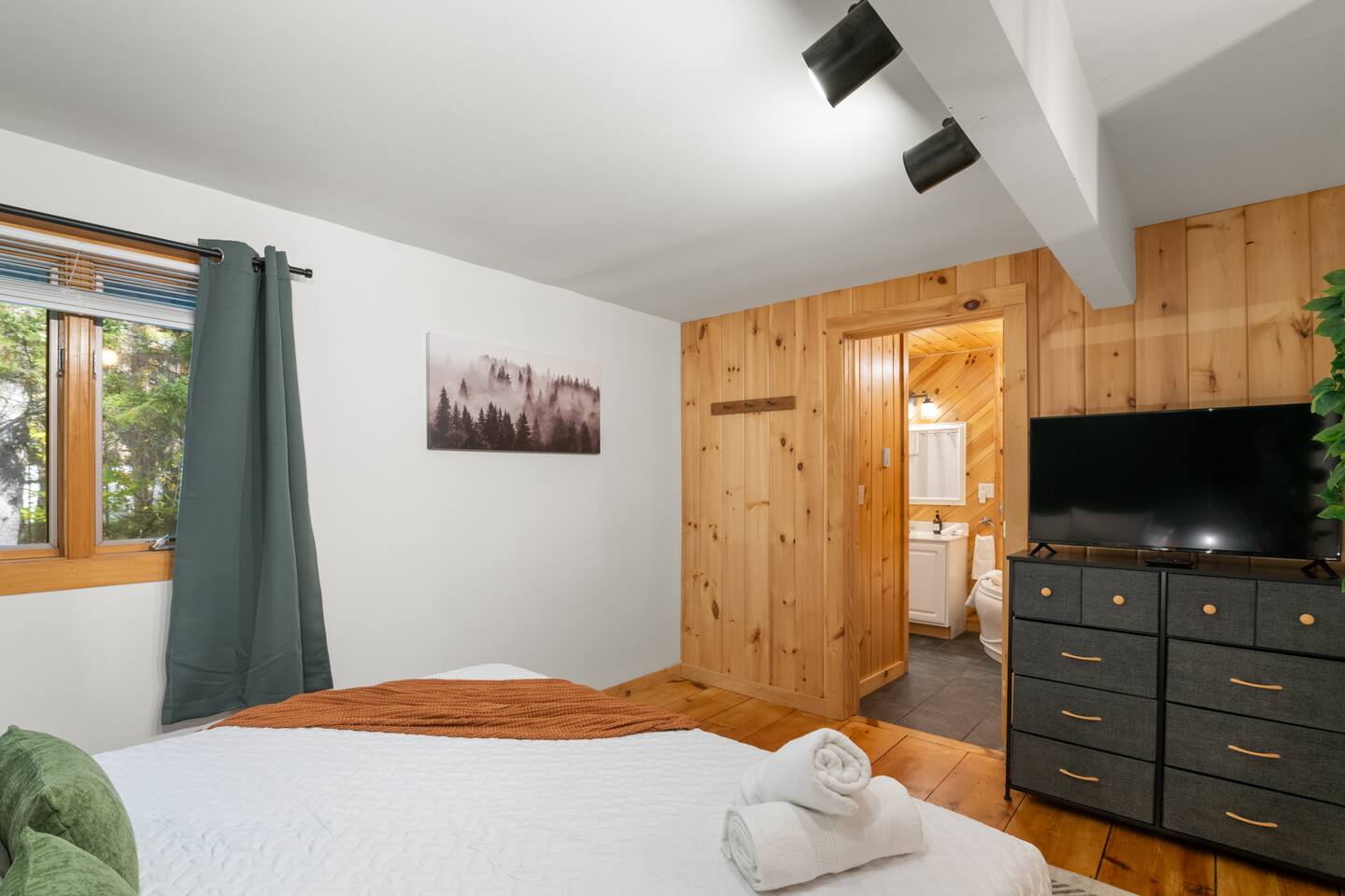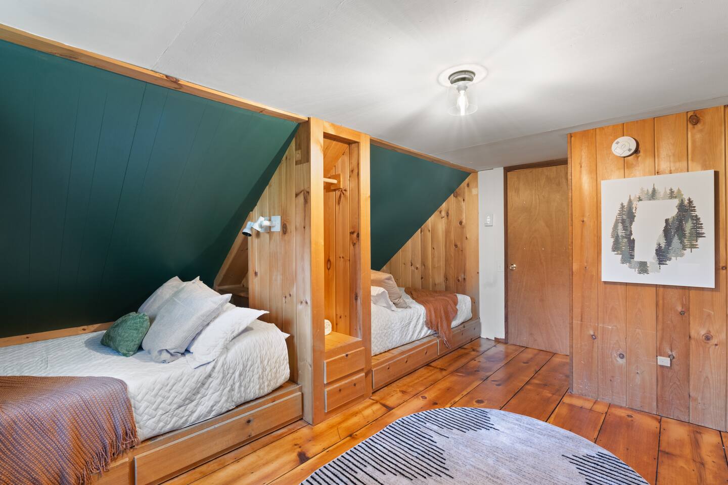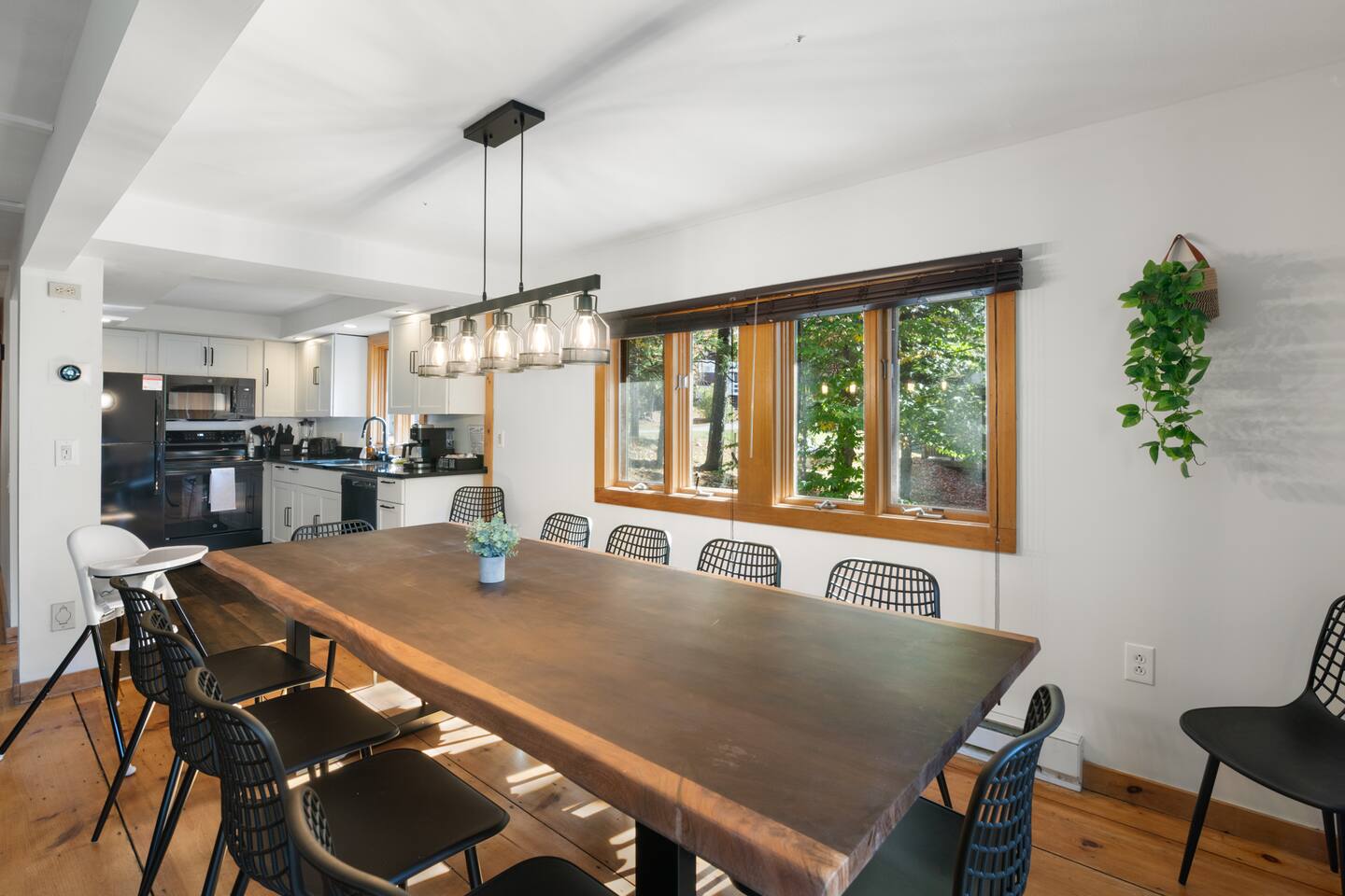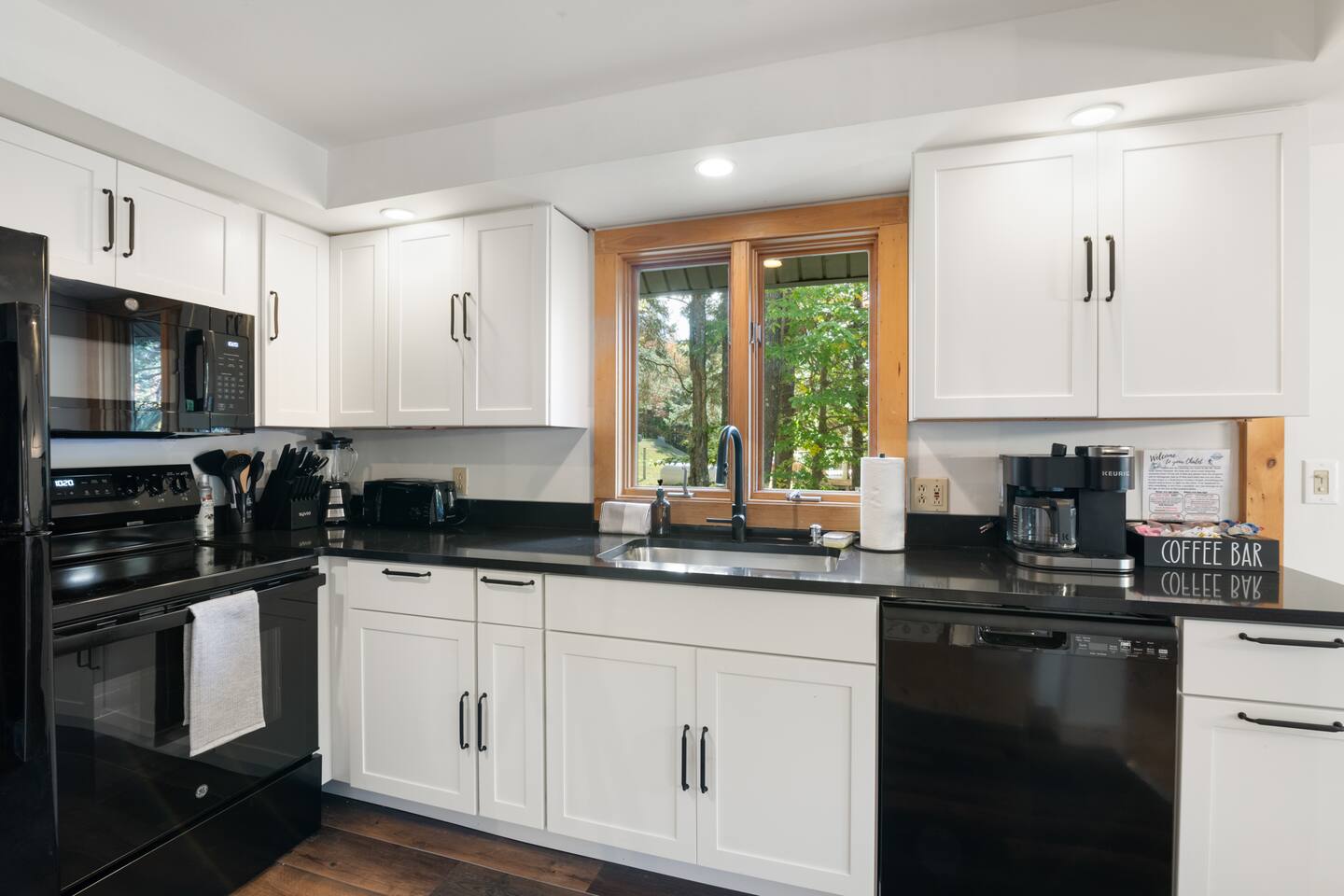 Vermont Chalet with Theater Room, Game Room & Hot Tub Near Mount Snow This 3-story Vermont chalet is loaded for mountain getaways—private theater with reclining seats and candy bar, top-tier game room with arcade classics and custom murals, hot tub under the stars, and a prime location near Mount Snow and Southern Vermont's best outdoor adventures. Spend your days skiing, hiking, or exploring everything Vermont has to offer, then come home to knotty pine charm, modern comfort, and the kind of entertainment that keeps everyone happy. WHAT MAKES THIS HOME SPECIAL ✔ Private theater room with leather recliners, surround sound & candy bar ✔ Game room with air hockey, shuffleboard, arcade games & 75" Smart TV ✔ Hot tub and fire pit for après-ski relaxation ✔ Minutes to Mount Snow and Southern Vermont trails ✔ 4 bedrooms sleep up to 12 with flexible layouts ✔ Easy year-round access—no steep mountain roads THE SPACE The heart of the chalet is the open living space where everyone naturally gathers. Sink into plush leather seating around the warm electric fireplace, stream your favorites on the Smart TV, and let the natural light pour in through large windows and glass doors. The open layout connects kitchen, dining, and living areas so no one's left out—whether you're cooking breakfast, dealing cards at the dining table, or just relaxing after a day on the mountain. The fully equipped kitchen handles everything from hearty ski-day breakfasts to cozy dinners with modern appliances, generous counter space, and all the cookware you need. The dining area seats your entire group for home-cooked meals, takeout from nearby spots, or late-night conversations that stretch longer than planned. Your private theater room brings the cinema experience home with leather reclining seats, surround sound, and a popcorn and candy bar. Perfect for movie marathons, game days, or giving the kids something to do while adults finish their wine. The game room is where the real fun happens—air hockey, shuffleboard, three arcade games, a 75" Smart TV, and custom murals by a local artist. Rainy day? Restless kids? Competitive adults? Everyone's covered. Outside, soak in the hot tub after a long ski day, roast s'mores around the fire pit under Vermont stars, or fire up the grill on the deck with peaceful wilderness views all around. WHERE EVERYONE SLEEPS Bedroom 1 (Primary): King bed with en-suite bathroom and soaker tub Bedroom 2: Four built-in full beds—great for kids or groups Bedroom 3: Two king beds—perfect for couples or friends sharing Bedroom 4 (Lower Level): Queen bed with twin trundle Three full bathrooms. Every bedroom has a Smart TV. All linens, towels, and soaps are provided. GOOD TO KNOW ✔ Parking for up to 4 vehicles ✔ Easy year-round access—no steep roads ✔ Washer and dryer in-unit ✔ Central A/C and heat ✔ Pack 'n Play and high chair provided ✔ Deck with grill and outdoor dining ✔ Minutes to Mount Snow skiing, hiking & Southern Vermont adventures ✔ Bring your favorite towel for the hot tub BOOK YOUR ESCAPE This is the kind of Vermont chalet where ski trips, fall foliage weekends, and summer getaways all work perfectly—because there's as much to do inside as there is outside. If you want mountain access, modern comfort, and built-in entertainment for the whole crew, this is it. Availability fills fast—check your dates now. Doug & Rose Waves & Wilderness