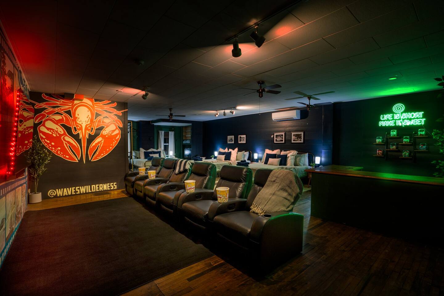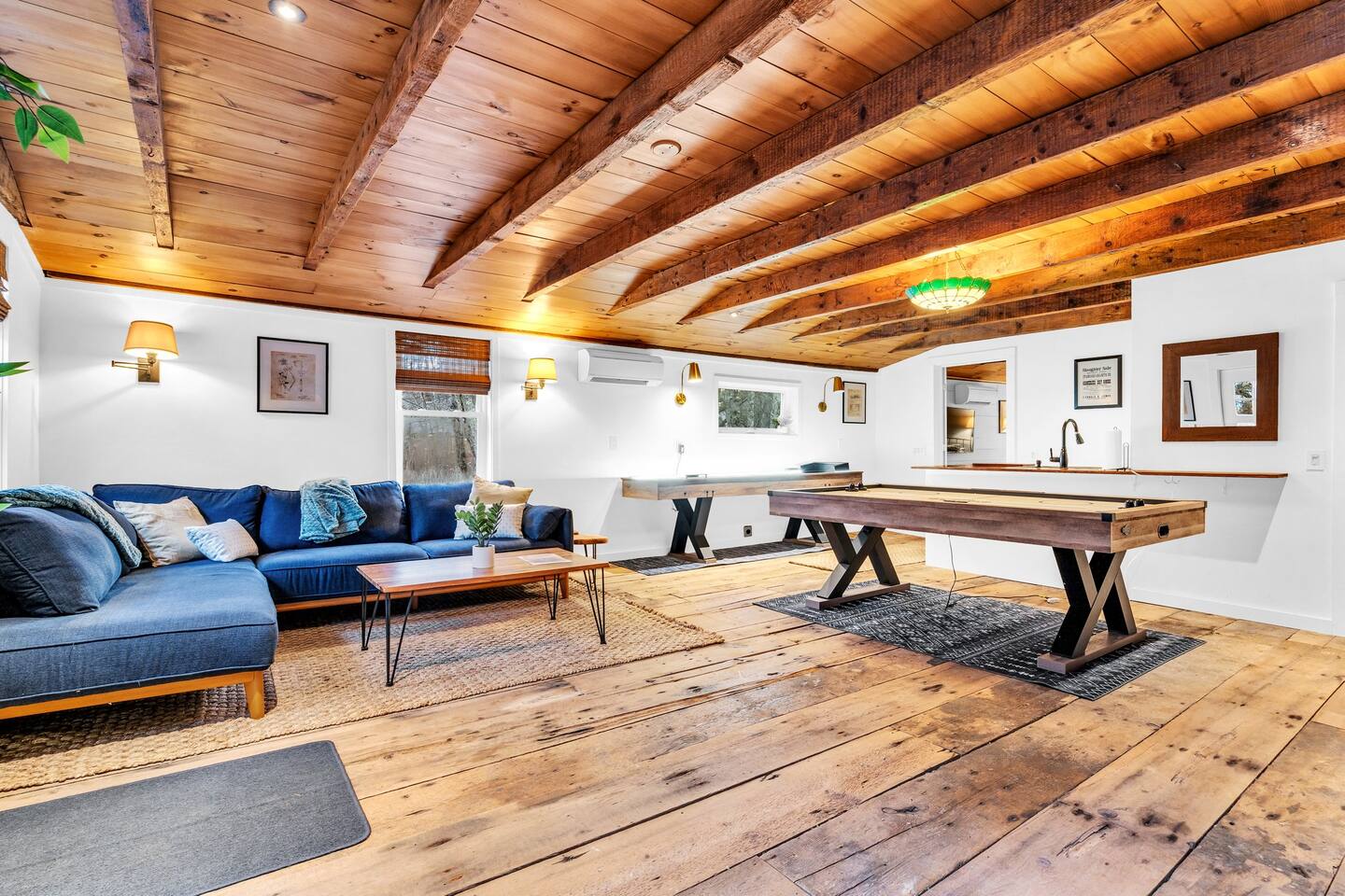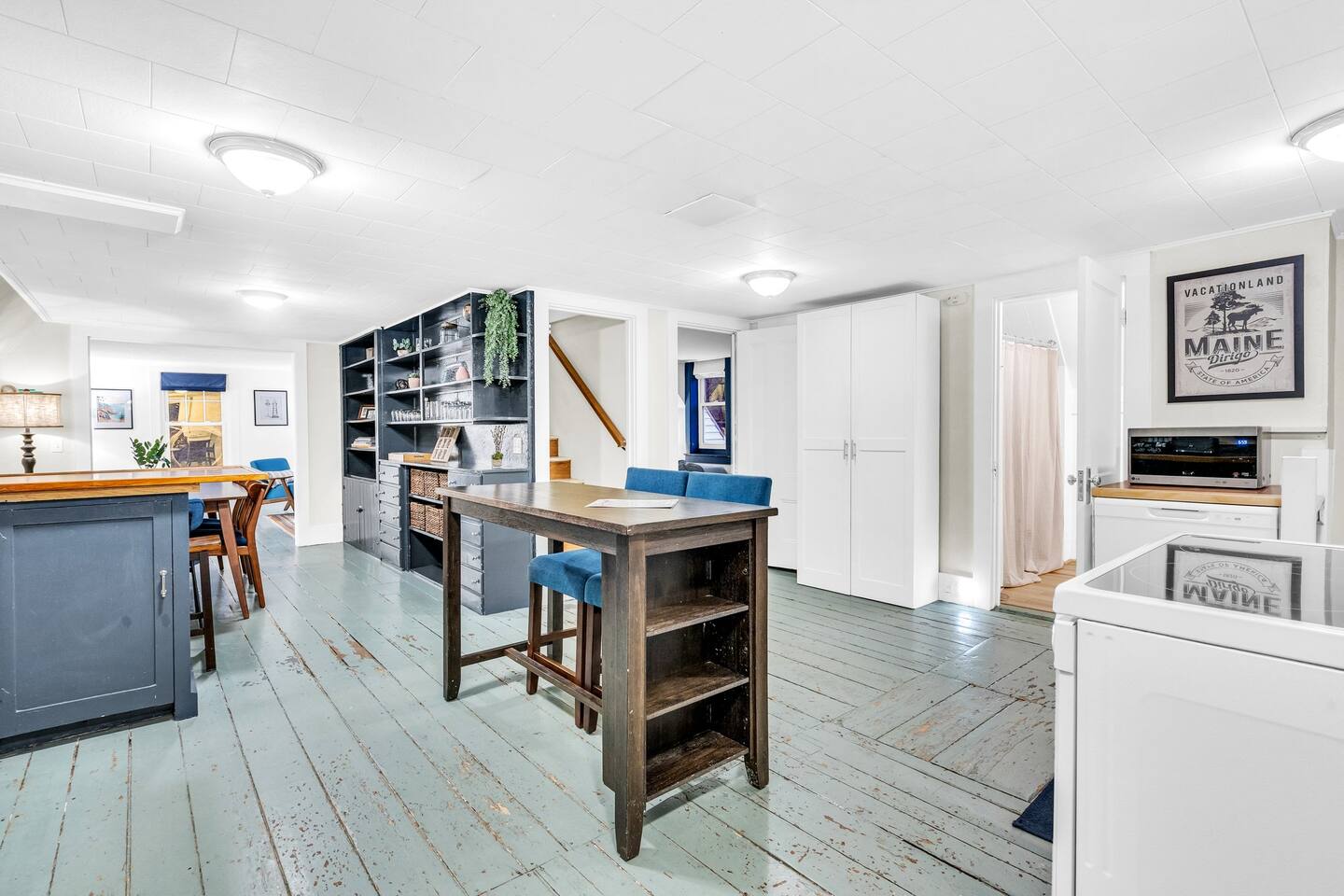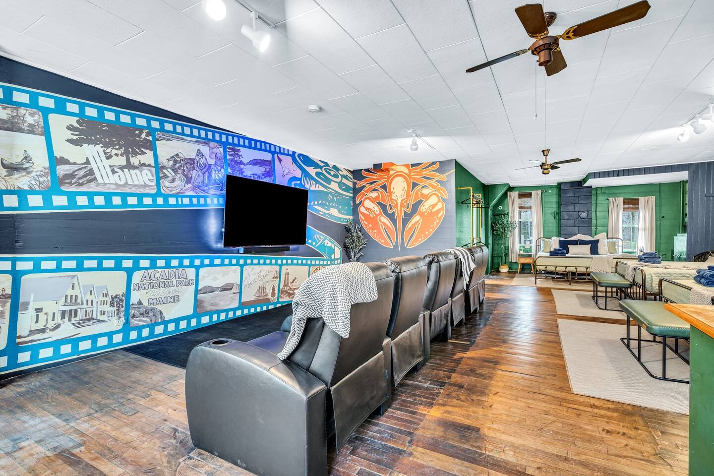 Historic 1856 Retreat with Theater Room, Hot Tub & Steps to Acadia National Park This isn't just a vacation rental—it's a piece of Maine history. Built in 1856 and once home to Mount Desert's original general store and butcher shop, this meticulously restored property on Main Street blends authentic historic character with modern comforts for an experience you won't find anywhere else. Sleep among preserved store counters and vintage safes, soak in the hot tub overlooking Somes Sound inlet, watch movies in your private theater, and explore Acadia National Park just moments from your door. WHAT MAKES THIS HOME SPECIAL ✔ Historic 1856 building with original general store & butcher shop preserved ✔ Private theater room with 6 leather recliners & surround sound ✔ Game room with air hockey, 9-foot shuffleboard & 70" Smart TV ✔ 7-person hot tub overlooking the stream and historic fish ladder ✔ Minutes to Acadia National Park, Jordan Pond & Cadillac Mountain ✔ Sleeps up to 14 in uniquely historic spaces THE SPACE The original general store and butcher shop have been transformed into spaces you'll never forget. The game room preserves historic details while hosting full-size air hockey, 9-foot shuffleboard, a comfortable sectional, and a 70" Smart TV for streaming. Next door, your private theater room features six leather recliners, big-screen viewing with surround sound, and complimentary movie candy—because every great movie needs snacks. Outside, your backyard borders the inlet of Somes Sound with the historic fish ladder just steps away. Sink into the 7-person hot tub under the stars with the sound of flowing water nearby, lounge on the daybed overlooking the stream, gather around the fire pit for s'mores and stories, or fire up the propane grill and lobster pot for a classic Maine feast at the outdoor dining table. Inside, the fully equipped kitchen handles everything from quick breakfasts to big lobster dinners with modern appliances, ample counter space, and gadgets like an Instant Pot and crock pot. The open living and dining area brings everyone together with comfortable leather seating, a Smart TV, and a dining table that seats the whole crew. Large windows flood the space with natural light and connect you to the historic charm all around. WHERE EVERYONE SLEEPS 2 king suites with private en-suite bathrooms, brand-new mattresses, 50" Smart TVs 1 main-floor queen bedroom with 50" Smart TV 1 twin bedroom with 2 twin beds, 50" Smart TV Historic General Store Room: 3 king beds set among preserved original features including the old store counter and safe—a guest favorite and truly unforgettable experience Four full bathrooms throughout: main-floor tub/shower combo, upper-floor walk-in shower, lower-level walk-in shower, and lower-level king suite with clawfoot soaking tub. Linens & shower soaps provided throughout GOOD TO KNOW ✔ Pack 'n Play and high chair provided ✔ Washer and dryer in-unit ✔ Central A/C and heat ✔ All linens, towels, and toiletries provided ✔ Minutes to Acadia National Park, Jordan Pond, Cadillac Mountain & Somes Sound ✔ Easy access to Bar Harbor dining, shopping & coastal adventures IMPORTANT NOTE ABOUT THIS HISTORIC HOME This property was built in 1856 and lovingly preserved. You'll find original elements like steep stairs, uneven floors, and imperfect paint—these are part of the home's authentic character and charm. If you're looking for a modern, cookie-cutter rental, this isn't it. If you want a one-of-a-kind historic experience with stories in every room, you've found your place. BOOK YOUR ESCAPE This is the kind of place that becomes the story you tell for years—where you slept in a 168-year-old general store, soaked in a hot tub beside a historic fish ladder, and hiked Acadia by day before movie nights in your private theater. If you want history, adventure, and an experience unlike any other, this is it. Availability fills fast—check your dates now. Doug & Rose Waves & Wilderness