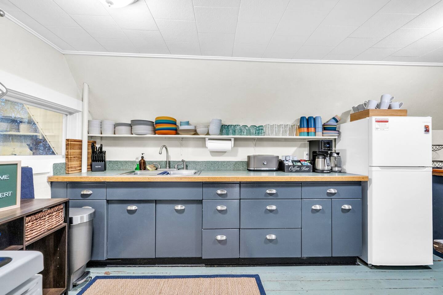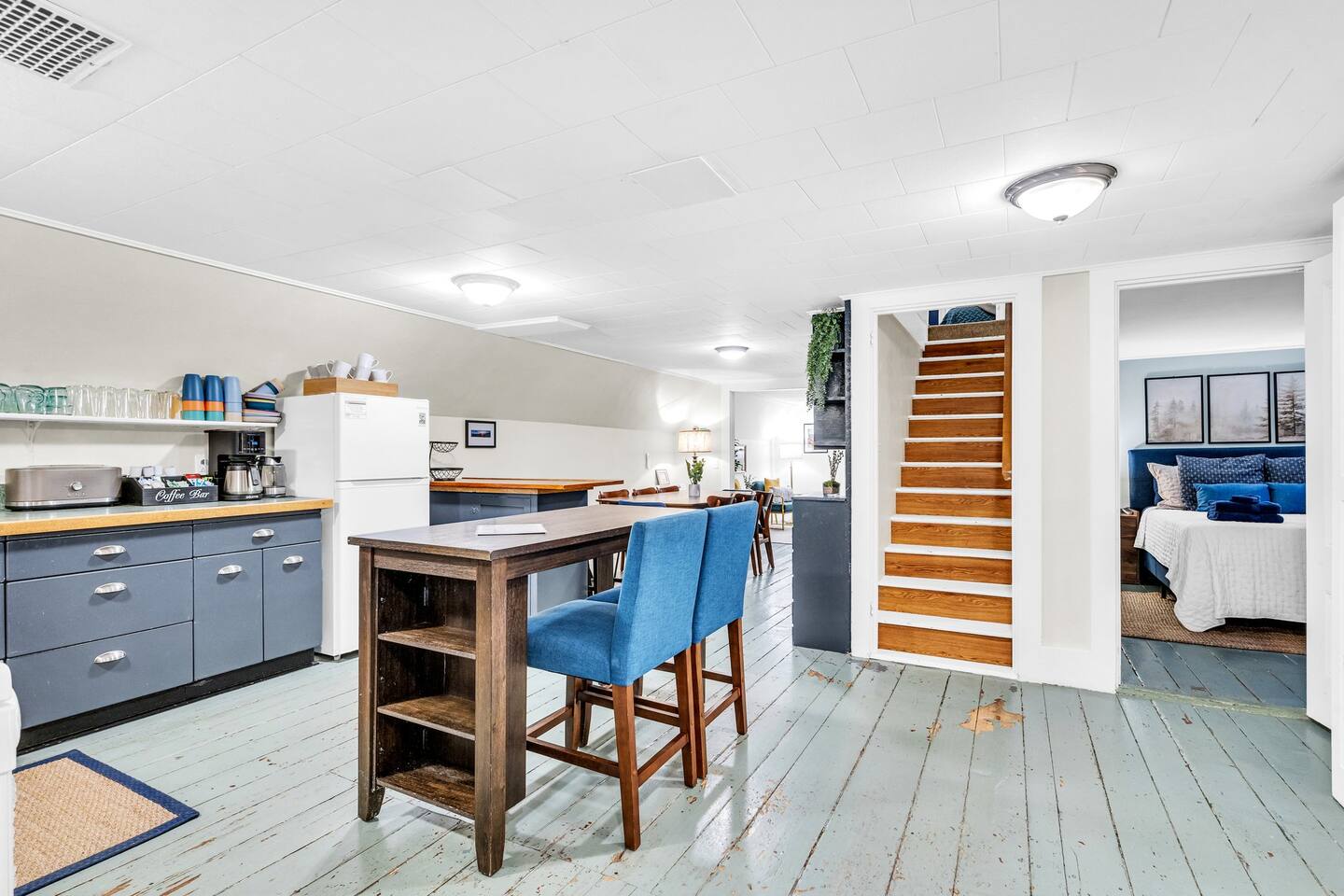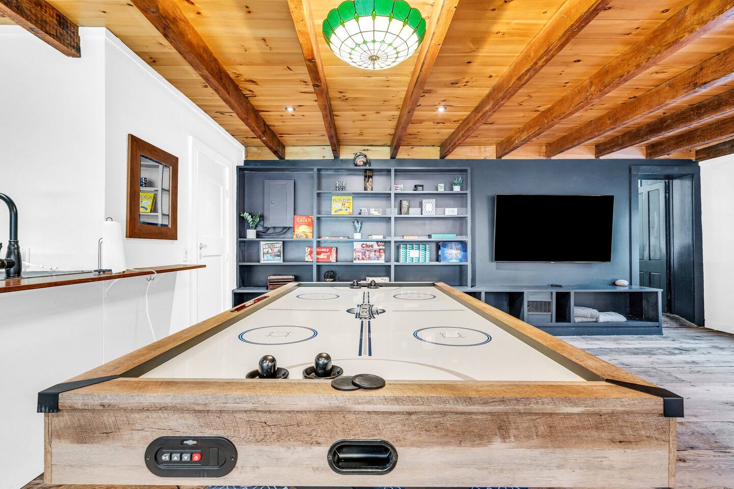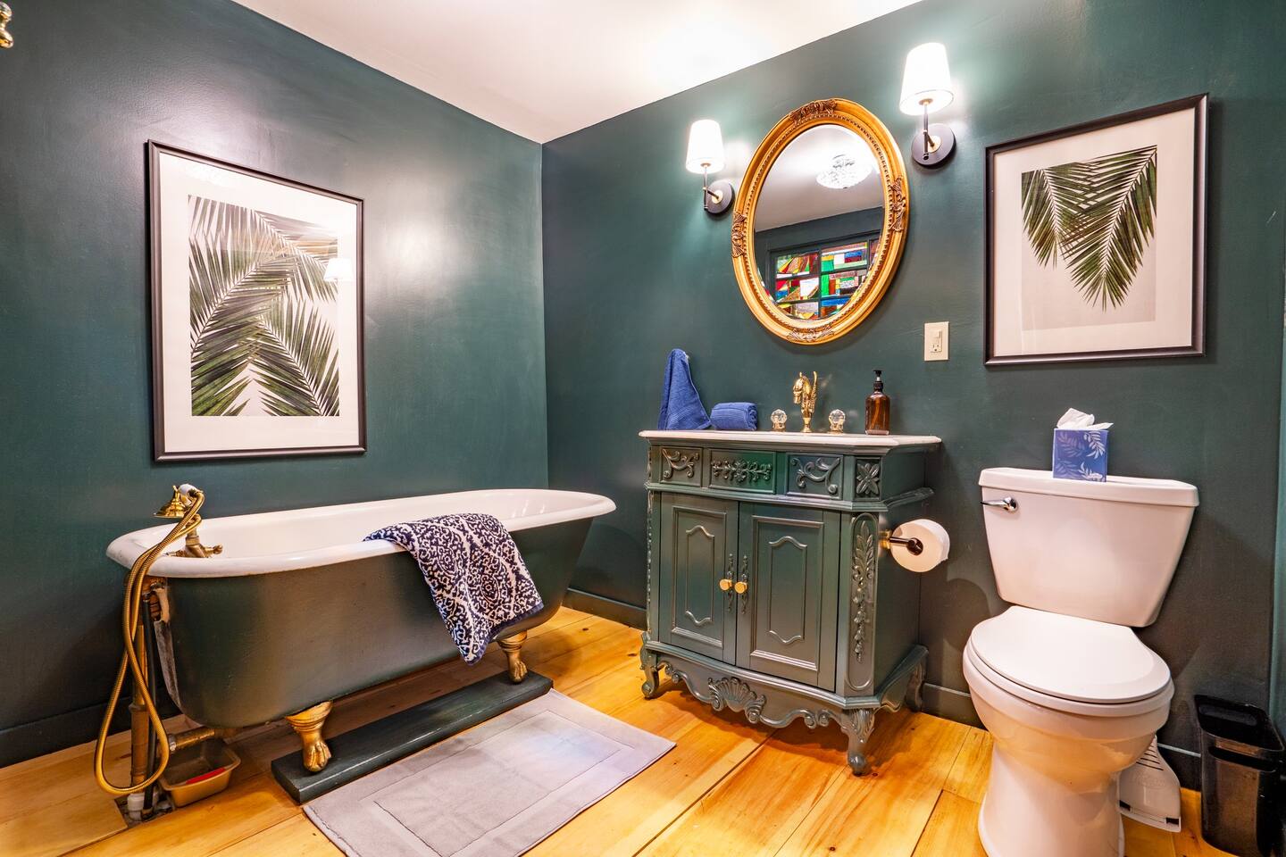Historic 1856 Retreat with Theater Room, Hot Tub & Steps to Acadia National Park This isn't just a vacation rental—it's a piece of Maine history. Built in 1856 and once home to Mount Desert's original general store and butcher shop, this meticulously restored property on Main Street blends authentic historic character with modern comforts for an experience you won't find anywhere else. Sleep among preserved store counters and vintage safes, soak in the hot tub overlooking Somes Sound inlet, watch movies in your private theater, and explore Acadia National Park just moments from your door. WHAT MAKES THIS HOME SPECIAL ✔ Historic 1856 building with original general store & butcher shop preserved ✔ Private theater room with 6 leather recliners & surround sound ✔ Game room with air hockey, 9-foot shuffleboard & 70" Smart TV ✔ 7-person hot tub overlooking the stream and historic fish ladder ✔ Minutes to Acadia National Park, Jordan Pond & Cadillac Mountain ✔ Sleeps up to 14 in uniquely historic spaces THE SPACE The original general store and butcher shop have been transformed into spaces you'll never forget. The game room preserves historic details while hosting full-size air hockey, 9-foot shuffleboard, a comfortable sectional, and a 70" Smart TV for streaming. Next door, your private theater room features six leather recliners, big-screen viewing with surround sound, and complimentary movie candy—because every great movie needs snacks. Outside, your backyard borders the inlet of Somes Sound with the historic fish ladder just steps away. Sink into the 7-person hot tub under the stars with the sound of flowing water nearby, lounge on the daybed overlooking the stream, gather around the fire pit for s'mores and stories, or fire up the propane grill and lobster pot for a classic Maine feast at the outdoor dining table. Inside, the fully equipped kitchen handles everything from quick breakfasts to big lobster dinners with modern appliances, ample counter space, and gadgets like an Instant Pot and crock pot. The open living and dining area brings everyone together with comfortable leather seating, a Smart TV, and a dining table that seats the whole crew. Large windows flood the space with natural light and connect you to the historic charm all around. WHERE EVERYONE SLEEPS 2 king suites with private en-suite bathrooms, brand-new mattresses, 50" Smart TVs 1 main-floor queen bedroom with 50" Smart TV 1 twin bedroom with 2 twin beds, 50" Smart TV Historic General Store Room: 3 king beds set among preserved original features including the old store counter and safe—a guest favorite and truly unforgettable experience Four full bathrooms throughout: main-floor tub/shower combo, upper-floor walk-in shower, lower-level walk-in shower, and lower-level king suite with clawfoot soaking tub. Linens & shower soaps provided throughout GOOD TO KNOW ✔ Pack 'n Play and high chair provided ✔ Washer and dryer in-unit ✔ Central A/C and heat ✔ All linens, towels, and toiletries provided ✔ Minutes to Acadia National Park, Jordan Pond, Cadillac Mountain & Somes Sound ✔ Easy access to Bar Harbor dining, shopping & coastal adventures IMPORTANT NOTE ABOUT THIS HISTORIC HOME This property was built in 1856 and lovingly preserved. You'll find original elements like steep stairs, uneven floors, and imperfect paint—these are part of the home's authentic character and charm. If you're looking for a modern, cookie-cutter rental, this isn't it. If you want a one-of-a-kind historic experience with stories in every room, you've found your place. BOOK YOUR ESCAPE This is the kind of place that becomes the story you tell for years—where you slept in a 168-year-old general store, soaked in a hot tub beside a historic fish ladder, and hiked Acadia by day before movie nights in your private theater. If you want history, adventure, and an experience unlike any other, this is it. Availability fills fast—check your dates now. Doug & Rose Waves & Wilderness