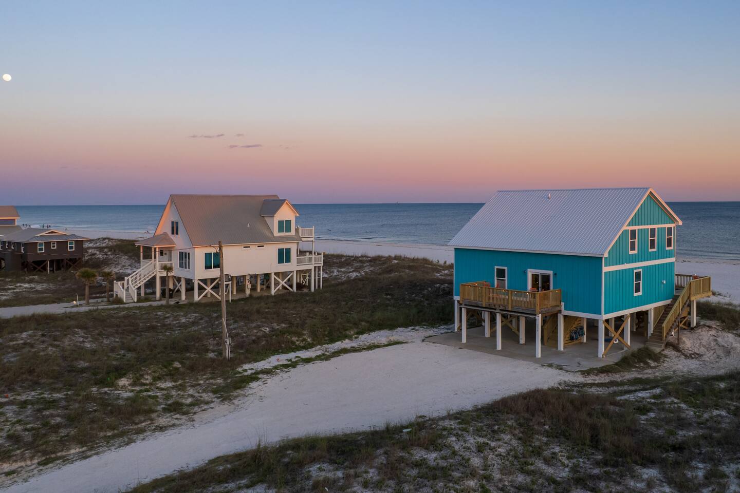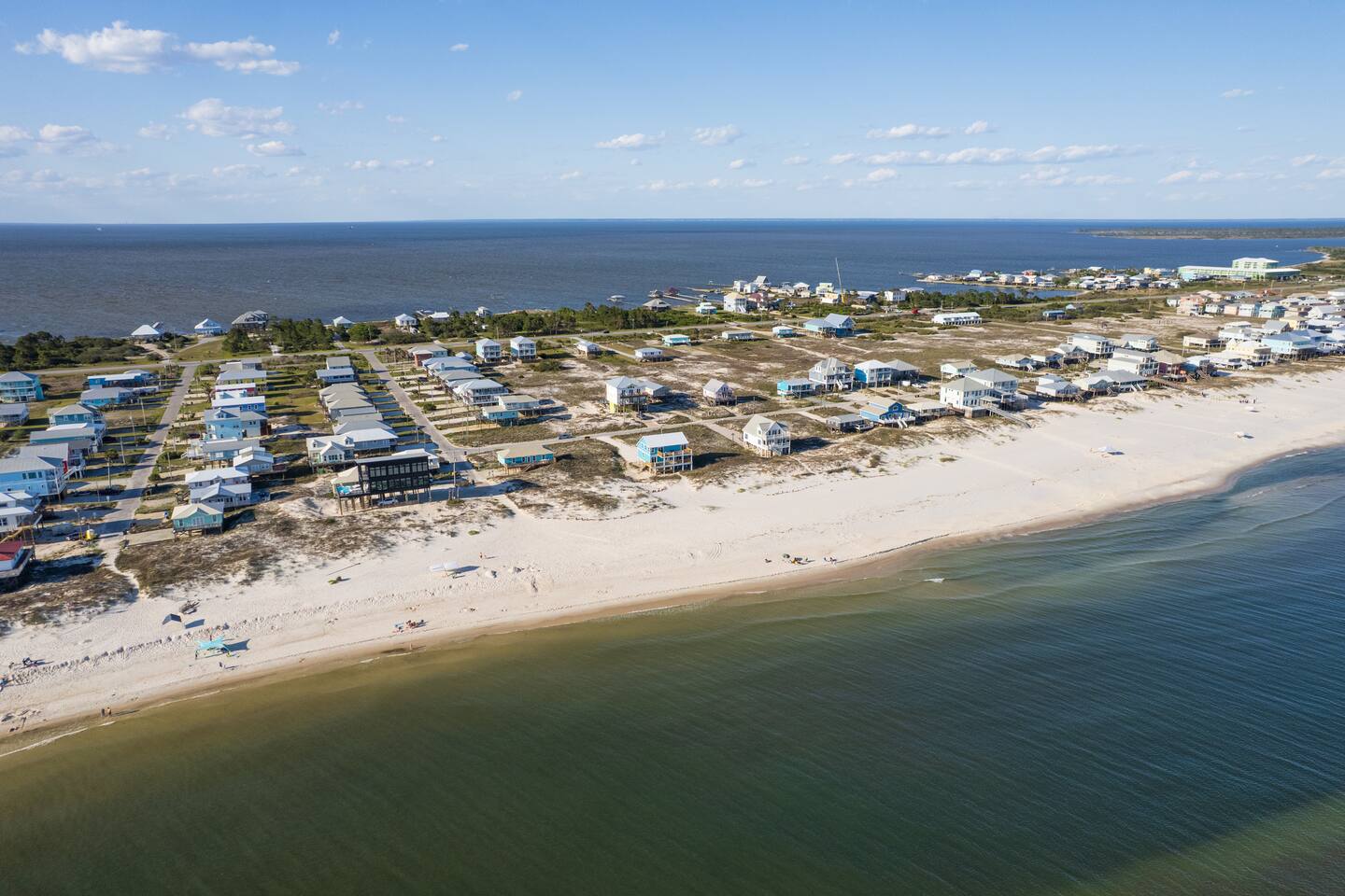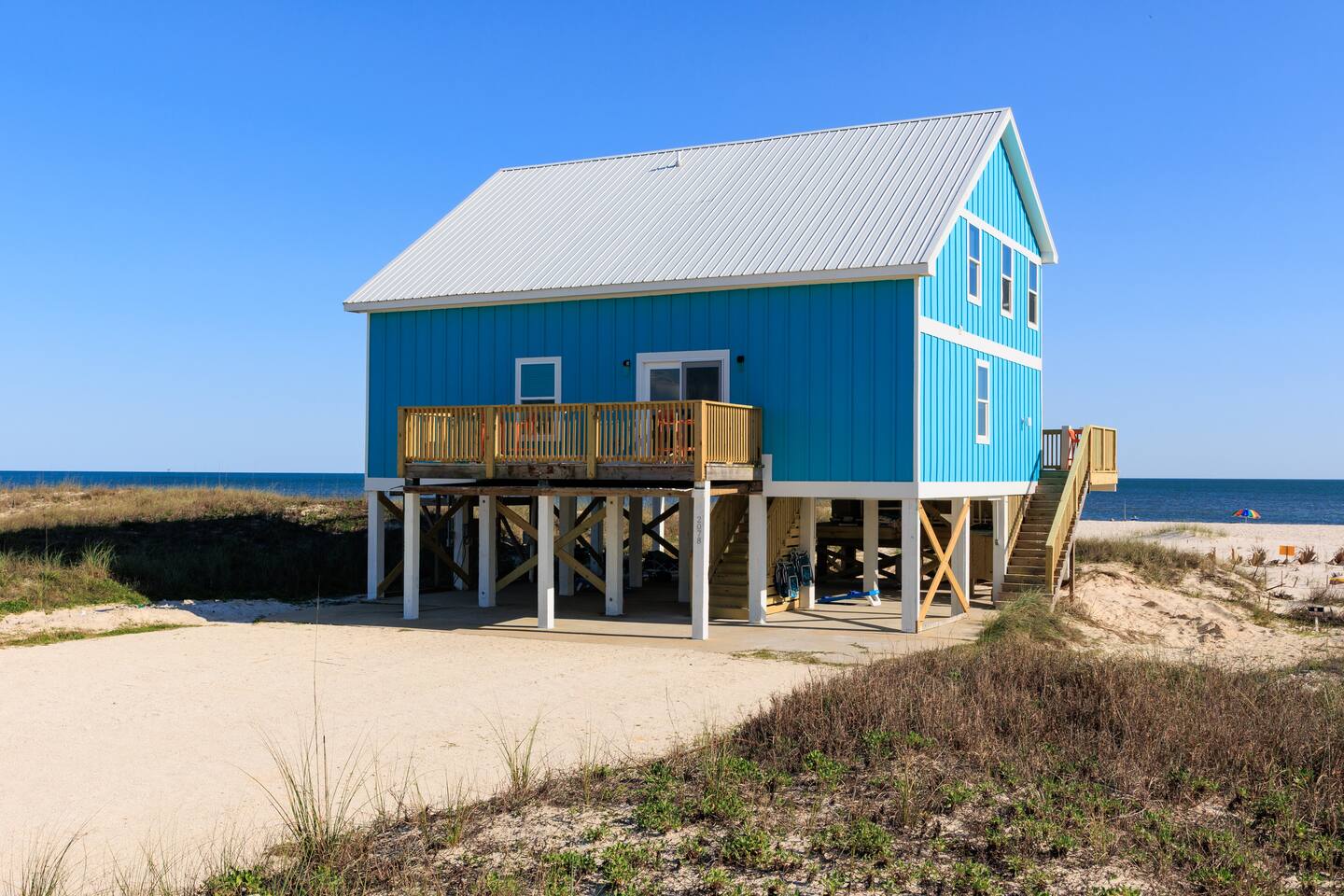 Gulf-Front Luxury with Private Pool & Sunset Views from Every Room Fully renovated in 2025, this stunning beachfront home in Gulf Shores offers the ultimate coastal escape for families, friends, and your four-legged crew. Wake up to endless Gulf views from every room, step directly from your deck onto the sand, and spend your days floating between the beach and your private heated pool. This is true Gulf-front living—where the sound of waves is your constant companion and sunset swims are just part of the daily routine. WHAT MAKES THIS HOME SPECIAL ✔ Direct beachfront—step from your deck straight onto the sand ✔ Unobstructed Gulf views from every single room ✔ Private heated pool on the deck for post-beach cooldowns ✔ Fully renovated in 2025 with coastal-chic design ✔ Dog-friendly—bring the whole pack THE SPACE Your two expansive Gulf-facing decks are where you'll spend most of your time. Start mornings with coffee and front-row sunrise views, gather for alfresco dinners at the outdoor table, or pull up a seat at the high-top pub seating with a cold drink as the sky turns pink and gold. When you need to cool off, dive into your private pool without ever leaving the view. And when the beach calls? You're already there—just step off the deck onto the sand. Inside, the fully stocked kitchen makes meal prep effortless, whether you're blending morning smoothies or prepping a seafood feast. The dining table has room for everyone, and the living room invites you to sink into the cognac leather sofa surrounded by boho-chic accents. Stream a movie on the 65" Smart TV or leave the windows open and let the sound of the waves be your entertainment. Rinse off the salt and sand in the outdoor shower, then decide whether your next move is the pool, the deck, or straight back to the beach. WHERE EVERYONE SLEEPS Main Floor: 2 Gulf-front king suites with deck access, 50" Smart TVs Upstairs: 2 Gulf-front king suites with deck access, 50" Smart TVs Upstairs: 1 bunk room with queen-over-twin and twin-over-twin bunks—perfect for kids As of 2025, every bed and mattress is brand new. Four full bathrooms (two per floor) with spa-inspired showers, plush towels, and boho decor throughout. GOOD TO KNOW ✔ Beach chairs, toys, and wagon included ✔ Private outdoor shower ✔ Washer and dryer in-unit ✔ Central A/C for year-round comfort ✔ Fast Wi-Fi for streaming or staying connected ✔ Dining favorites 5 minutes away (Tacky Jacks, Jessie's, Sassy Bass) ✔ Downtown Gulf Shores 20 minutes down the coast ✔ Fort Morgan's quieter, family-friendly vibe with easy access to everything POOL HEATING Want to swim even when it's cooler outside? Pool heating is available for $75/day and typically maintains a comfortable 80–85°F depending on the weather. Just let us know after booking, and we'll have it ready for your arrival. BOOK YOUR ESCAPE This is the kind of place where you lose track of time—where days blur into a perfect rhythm of beach, pool, deck, repeat. Whether you're here for a family reunion, a friends' trip, or just to unplug and recharge, this Gulf-front home delivers the vacation you've been dreaming about. Availability fills fast—check your dates now. Rose & Doug Waves & Wilderness