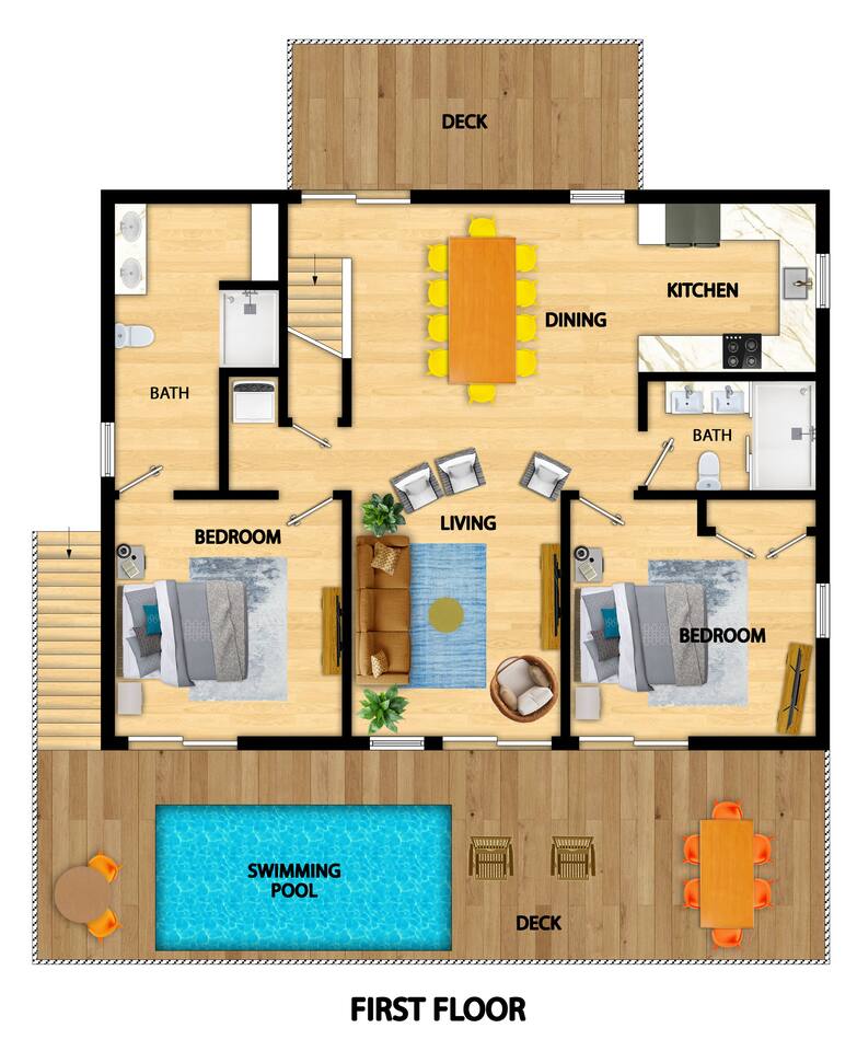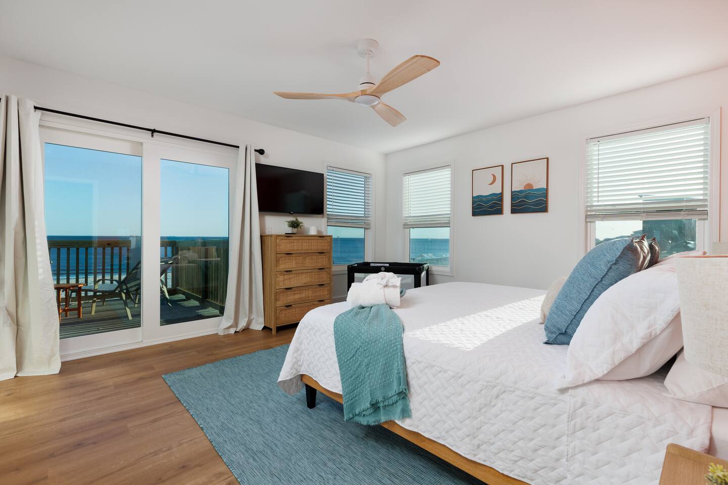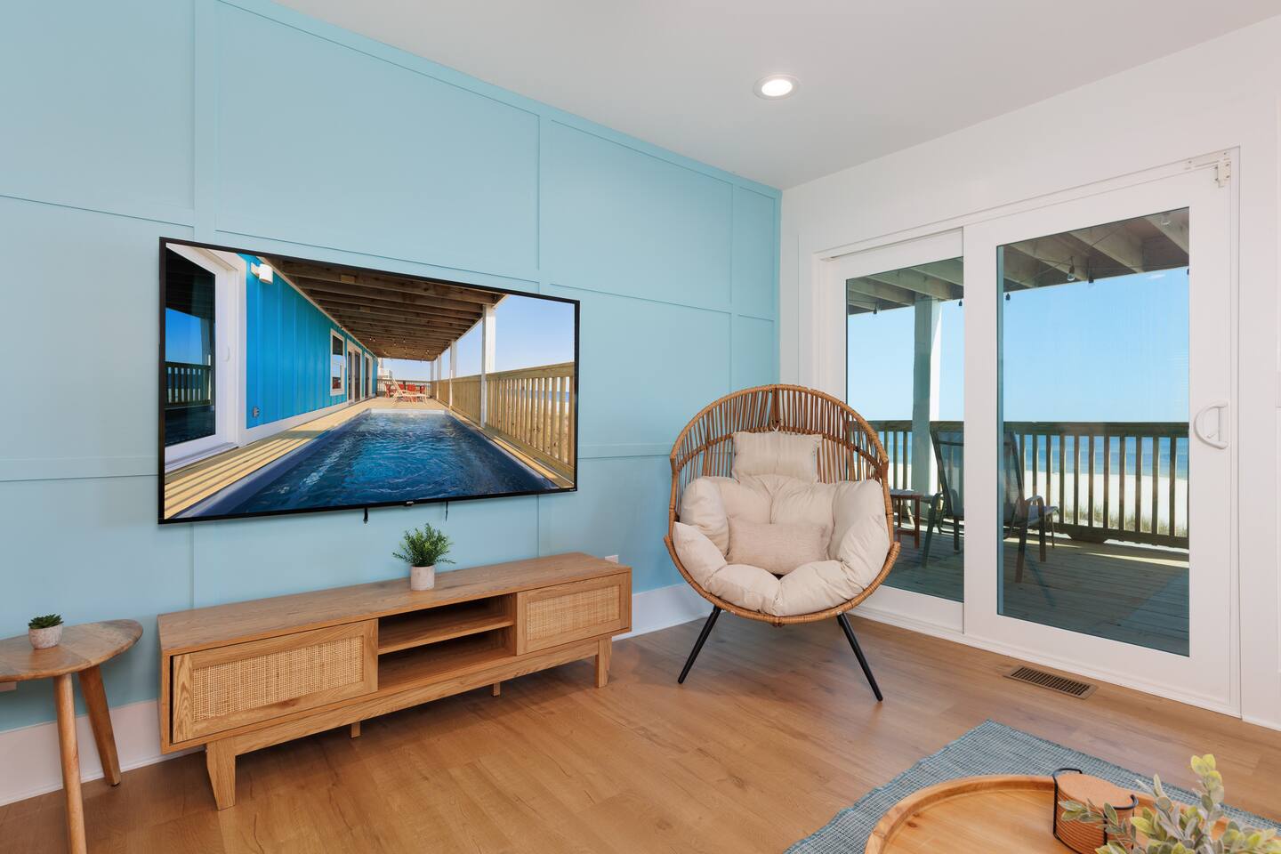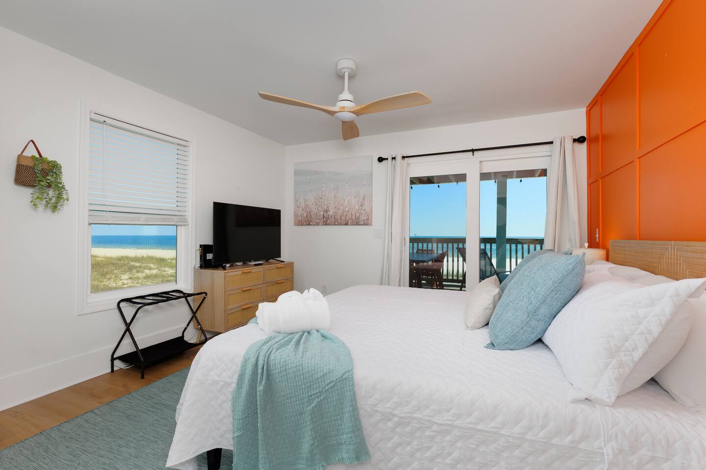 Gulf-Front Luxury with Private Pool & Sunset Views from Every Room Fully renovated in 2025, this stunning beachfront home in Gulf Shores offers the ultimate coastal escape for families, friends, and your four-legged crew. Wake up to endless Gulf views from every room, step directly from your deck onto the sand, and spend your days floating between the beach and your private heated pool. This is true Gulf-front living—where the sound of waves is your constant companion and sunset swims are just part of the daily routine. WHAT MAKES THIS HOME SPECIAL ✔ Direct beachfront—step from your deck straight onto the sand ✔ Unobstructed Gulf views from every single room ✔ Private heated pool on the deck for post-beach cooldowns ✔ Fully renovated in 2025 with coastal-chic design ✔ Dog-friendly—bring the whole pack THE SPACE Your two expansive Gulf-facing decks are where you'll spend most of your time. Start mornings with coffee and front-row sunrise views, gather for alfresco dinners at the outdoor table, or pull up a seat at the high-top pub seating with a cold drink as the sky turns pink and gold. When you need to cool off, dive into your private pool without ever leaving the view. And when the beach calls? You're already there—just step off the deck onto the sand. Inside, the fully stocked kitchen makes meal prep effortless, whether you're blending morning smoothies or prepping a seafood feast. The dining table has room for everyone, and the living room invites you to sink into the cognac leather sofa surrounded by boho-chic accents. Stream a movie on the 65" Smart TV or leave the windows open and let the sound of the waves be your entertainment. Rinse off the salt and sand in the outdoor shower, then decide whether your next move is the pool, the deck, or straight back to the beach. WHERE EVERYONE SLEEPS Main Floor: 2 Gulf-front king suites with deck access, 50" Smart TVs Upstairs: 2 Gulf-front king suites with deck access, 50" Smart TVs Upstairs: 1 bunk room with queen-over-twin and twin-over-twin bunks—perfect for kids As of 2025, every bed and mattress is brand new. Four full bathrooms (two per floor) with spa-inspired showers, plush towels, and boho decor throughout. GOOD TO KNOW ✔ Beach chairs, toys, and wagon included ✔ Private outdoor shower ✔ Washer and dryer in-unit ✔ Central A/C for year-round comfort ✔ Fast Wi-Fi for streaming or staying connected ✔ Dining favorites 5 minutes away (Tacky Jacks, Jessie's, Sassy Bass) ✔ Downtown Gulf Shores 20 minutes down the coast ✔ Fort Morgan's quieter, family-friendly vibe with easy access to everything POOL HEATING Want to swim even when it's cooler outside? Pool heating is available for $75/day and typically maintains a comfortable 80–85°F depending on the weather. Just let us know after booking, and we'll have it ready for your arrival. BOOK YOUR ESCAPE This is the kind of place where you lose track of time—where days blur into a perfect rhythm of beach, pool, deck, repeat. Whether you're here for a family reunion, a friends' trip, or just to unplug and recharge, this Gulf-front home delivers the vacation you've been dreaming about. Availability fills fast—check your dates now. Rose & Doug Waves & Wilderness