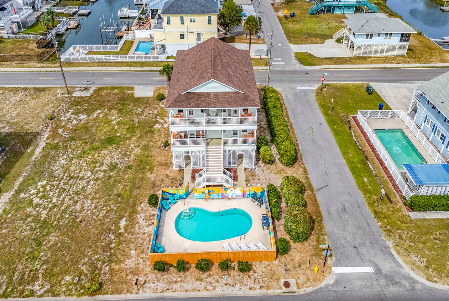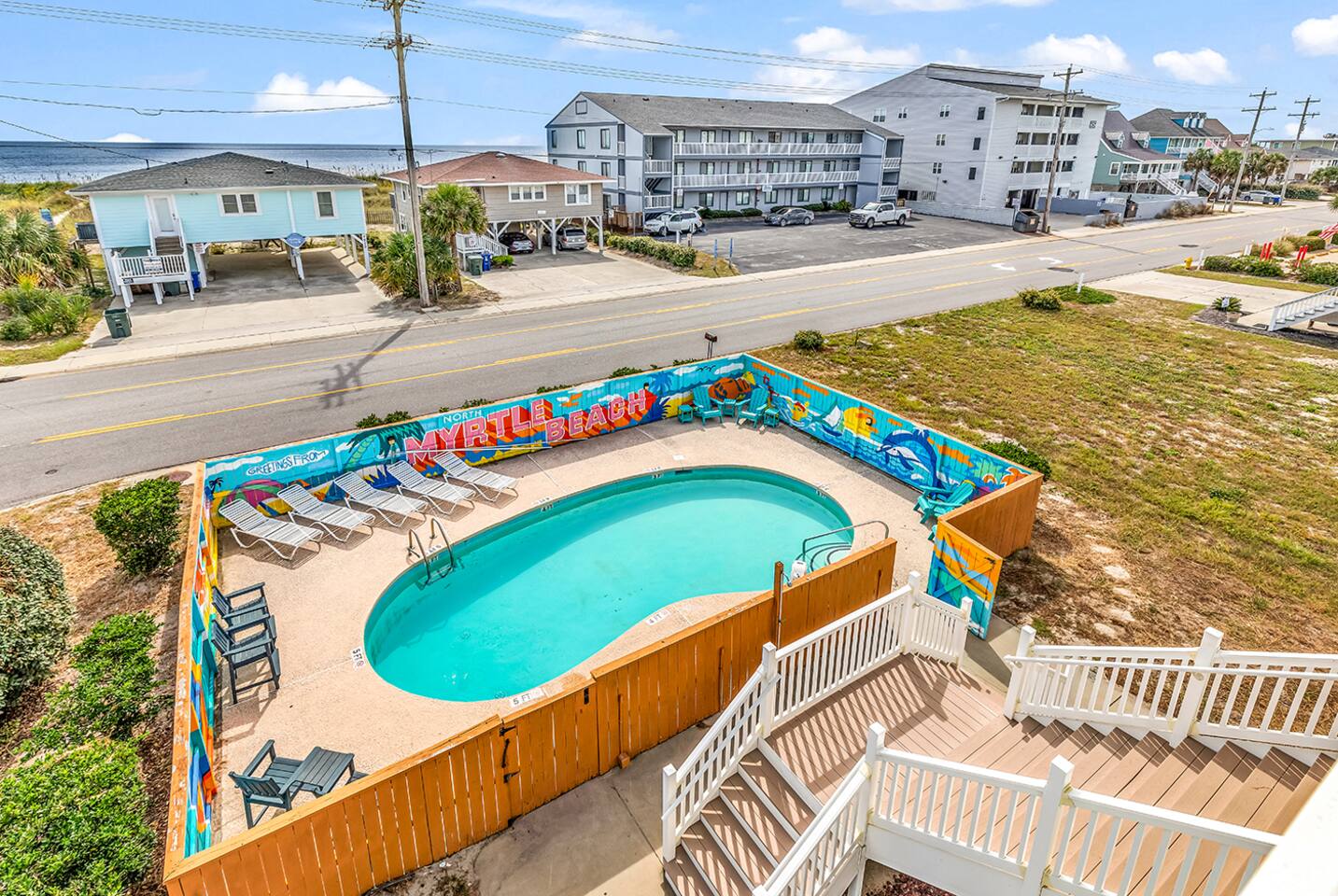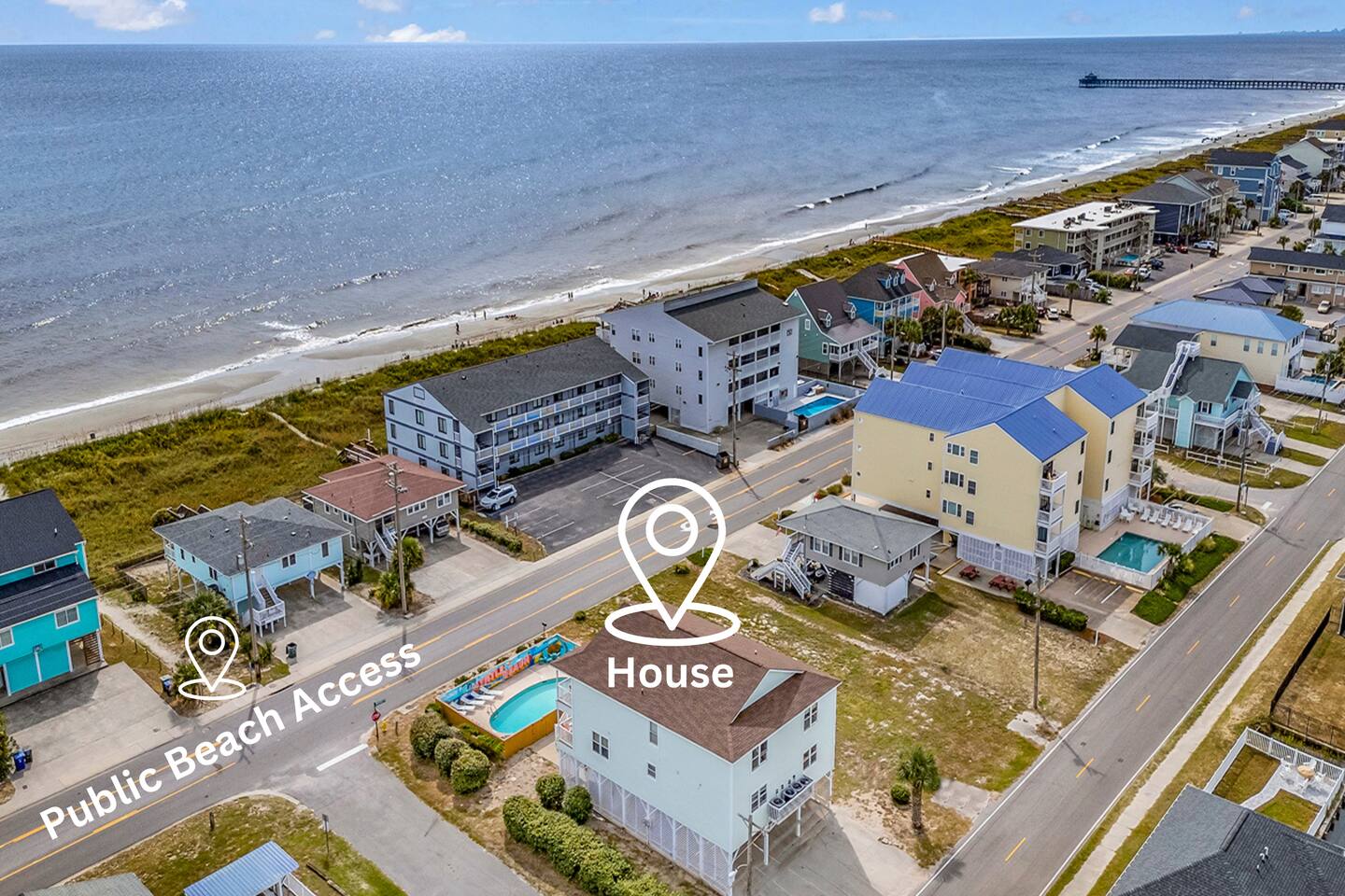 Ocean Views from Every Room, Private Pool & Beach Across the Street This stunning 8-bedroom North Myrtle Beach home is built for big groups who want it all: sweeping ocean views from every room, a private heated pool, two oceanfront decks, and beach access directly across the street. Located in the quieter Cherry Grove section, you get the best of both worlds—peaceful mornings and easy access to everything North Myrtle Beach has to offer. With a game room, outdoor entertainment, and room for up to 20 guests, this is where family reunions, friend trips, and milestone celebrations become the memories you'll talk about for years. WHAT MAKES THIS HOME SPECIAL ✔ Ocean views from every single room + beach across the street ✔ Private heated pool with lounge deck ✔ 8 bedrooms, 8 full baths + 2 half baths, sleeps 24 ✔ Game room with air hockey, foosball & arcade classics ✔ Cherry Grove location—quieter beach, relaxed vibe ✔ Dog-friendly—bring your four-legged crew THE SPACE Start your mornings on one of two oceanfront decks with coffee and sunrise views. Spend your days floating between the private pool and the beach across the street—rinse off in the outdoor shower, grab the wagon and beach gear, and repeat as many times as you want. As evening rolls in, fire up the BBQ, gather around the outdoor dining table, and watch the sky turn pink and gold over the Atlantic. Inside, the open-concept main floor connects kitchen, dining, and living spaces so no one's left out of the action. The chef's kitchen has generous counter space and modern appliances to handle big-group breakfasts and seafood feasts. The dining area seats everyone comfortably, and the living room invites you to sink into plush seating with ocean views and a 75" Smart TV for movie nights or streaming the big game. The game room keeps the fun going with air hockey, foosball, and arcade favorites like Golden Tee Golf, NBA Jam, and Pac-Man. Rainy day? Teens getting restless? Problem solved. Outside, cornhole under the house adds another layer of entertainment for casual competition and good times. WHERE EVERYONE SLEEPS Main Floor: 2 double-queen rooms Second Floor: 4 king suites (2 with private balcony access) Second Floor: 2 double-queen rooms Every bedroom has a Smart TV. All mattresses and bedding replaced in 2025. Eight full bathrooms total—4 bedrooms have private en-suites, the others share 2 adjoining full baths. Plus 2 half-baths off the main living areas for daytime convenience. GOOD TO KNOW ✔ Beach wagon, chairs, and toys included ✔ Outdoor shower for post-beach cleanup ✔ BBQ grill and outdoor dining space ✔ Two washers and dryers in-unit ✔ Pack 'n Play and high chair provided ✔ Central A/C and fast Wi-Fi ✔ Cherry Grove's quieter vibe with easy access to North Myrtle Beach attractions POOL HEATING Want to swim even when it's cooler outside? Pool heating is available for $75/day and typically maintains a comfortable 80–85°F depending on weather. Just let us know after booking and we'll have it ready for your arrival. BOOK YOUR ESCAPE This is the kind of place that handles the whole crew without missing a beat—where grandparents, parents, kids, and dogs all find their happy place. Whether you're here for a family reunion, a milestone birthday, or just because you all deserve a break, this home delivers. Availability fills fast—check your dates now. Doug & Rose Waves & Wilderness