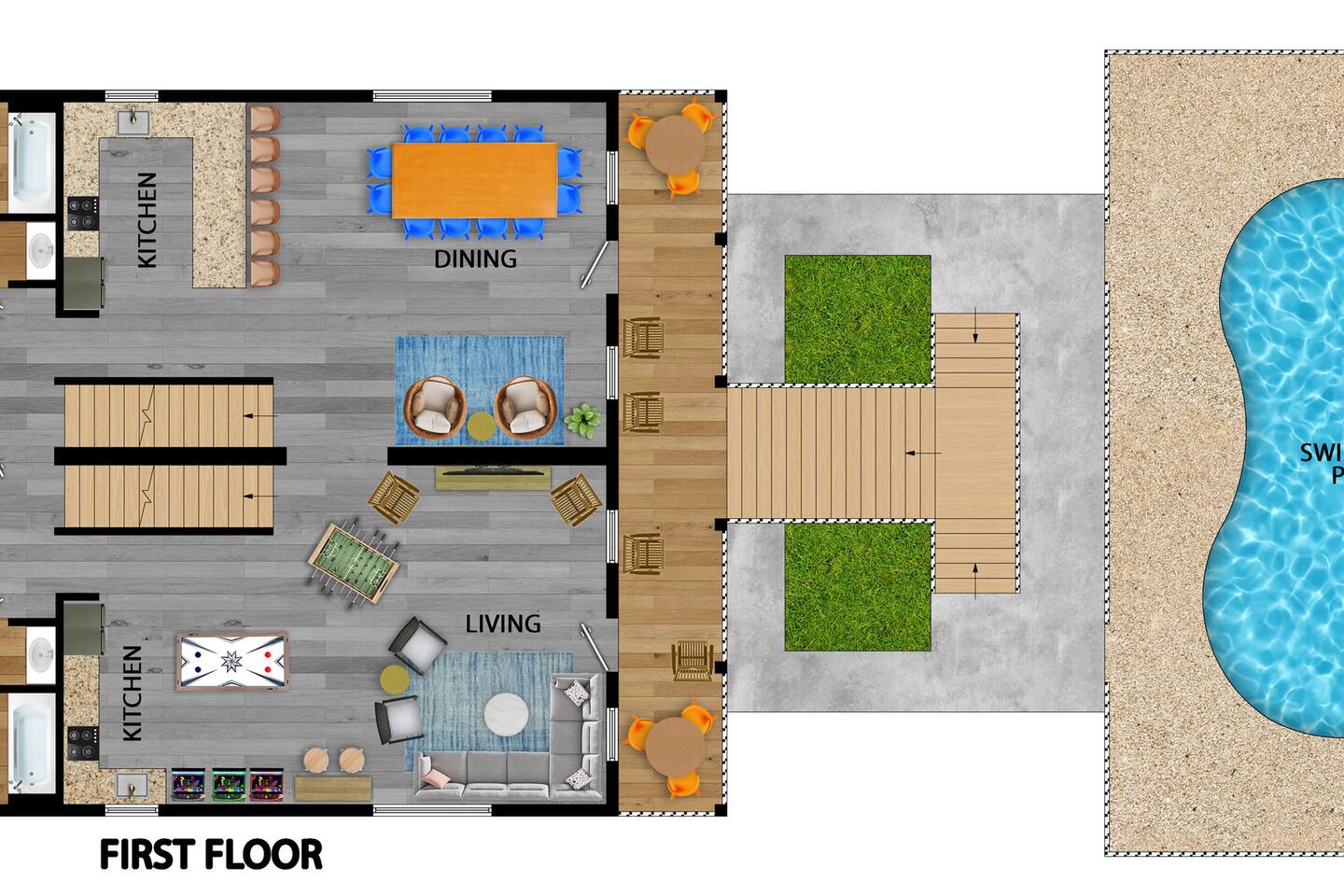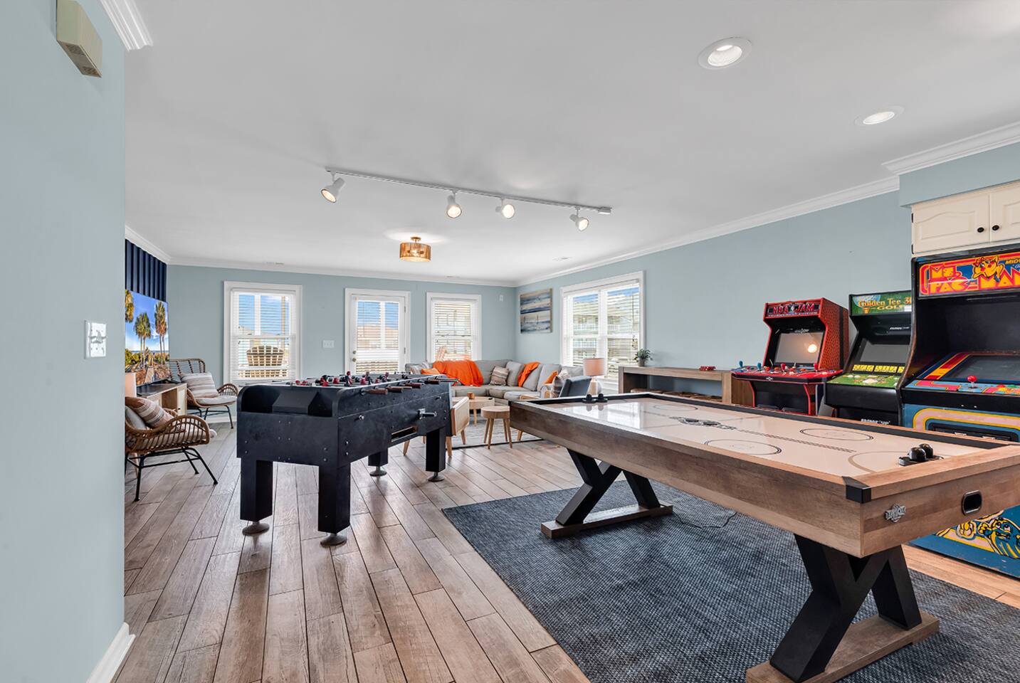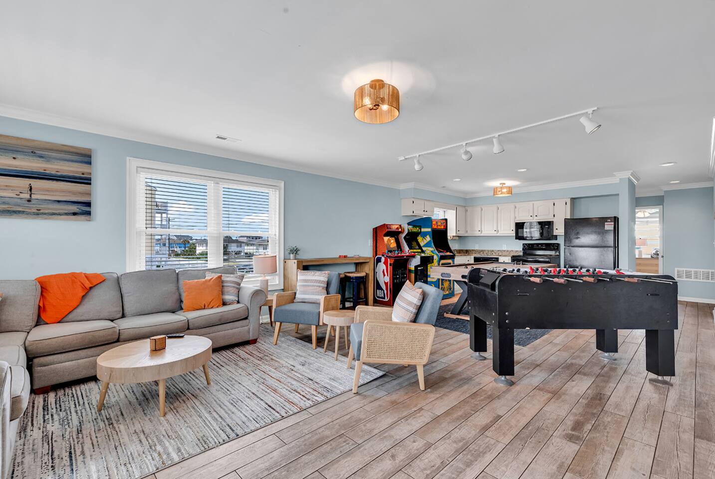 Ocean Views from Every Room, Private Pool & Beach Across the Street This stunning 8-bedroom North Myrtle Beach home is built for big groups who want it all: sweeping ocean views from every room, a private heated pool, two oceanfront decks, and beach access directly across the street. Located in the quieter Cherry Grove section, you get the best of both worlds—peaceful mornings and easy access to everything North Myrtle Beach has to offer. With a game room, outdoor entertainment, and room for up to 20 guests, this is where family reunions, friend trips, and milestone celebrations become the memories you'll talk about for years. WHAT MAKES THIS HOME SPECIAL ✔ Ocean views from every single room + beach across the street ✔ Private heated pool with lounge deck ✔ 8 bedrooms, 8 full baths + 2 half baths, sleeps 24 ✔ Game room with air hockey, foosball & arcade classics ✔ Cherry Grove location—quieter beach, relaxed vibe ✔ Dog-friendly—bring your four-legged crew THE SPACE Start your mornings on one of two oceanfront decks with coffee and sunrise views. Spend your days floating between the private pool and the beach across the street—rinse off in the outdoor shower, grab the wagon and beach gear, and repeat as many times as you want. As evening rolls in, fire up the BBQ, gather around the outdoor dining table, and watch the sky turn pink and gold over the Atlantic. Inside, the open-concept main floor connects kitchen, dining, and living spaces so no one's left out of the action. The chef's kitchen has generous counter space and modern appliances to handle big-group breakfasts and seafood feasts. The dining area seats everyone comfortably, and the living room invites you to sink into plush seating with ocean views and a 75" Smart TV for movie nights or streaming the big game. The game room keeps the fun going with air hockey, foosball, and arcade favorites like Golden Tee Golf, NBA Jam, and Pac-Man. Rainy day? Teens getting restless? Problem solved. Outside, cornhole under the house adds another layer of entertainment for casual competition and good times. WHERE EVERYONE SLEEPS Main Floor: 2 double-queen rooms Second Floor: 4 king suites (2 with private balcony access) Second Floor: 2 double-queen rooms Every bedroom has a Smart TV. All mattresses and bedding replaced in 2025. Eight full bathrooms total—4 bedrooms have private en-suites, the others share 2 adjoining full baths. Plus 2 half-baths off the main living areas for daytime convenience. GOOD TO KNOW ✔ Beach wagon, chairs, and toys included ✔ Outdoor shower for post-beach cleanup ✔ BBQ grill and outdoor dining space ✔ Two washers and dryers in-unit ✔ Pack 'n Play and high chair provided ✔ Central A/C and fast Wi-Fi ✔ Cherry Grove's quieter vibe with easy access to North Myrtle Beach attractions POOL HEATING Want to swim even when it's cooler outside? Pool heating is available for $75/day and typically maintains a comfortable 80–85°F depending on weather. Just let us know after booking and we'll have it ready for your arrival. BOOK YOUR ESCAPE This is the kind of place that handles the whole crew without missing a beat—where grandparents, parents, kids, and dogs all find their happy place. Whether you're here for a family reunion, a milestone birthday, or just because you all deserve a break, this home delivers. Availability fills fast—check your dates now. Doug & Rose Waves & Wilderness