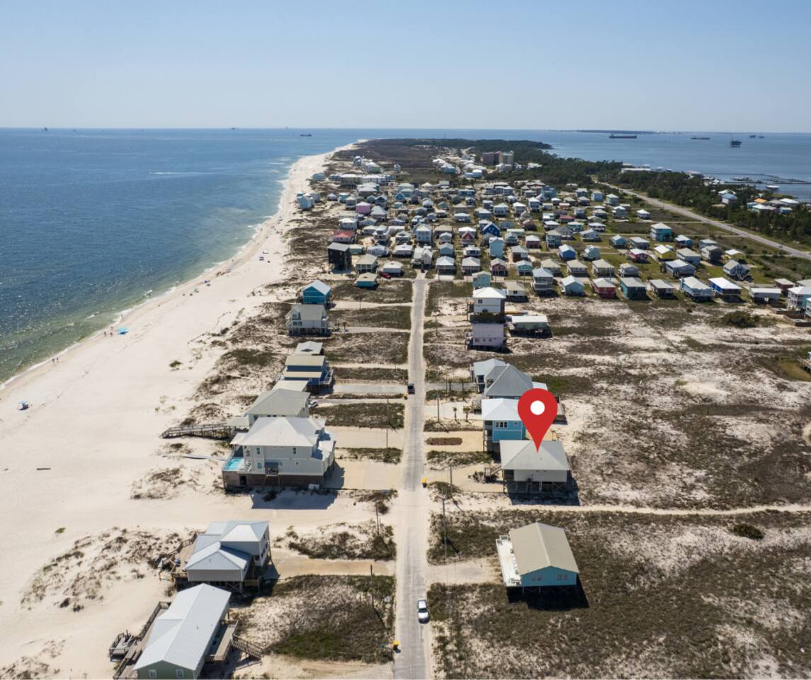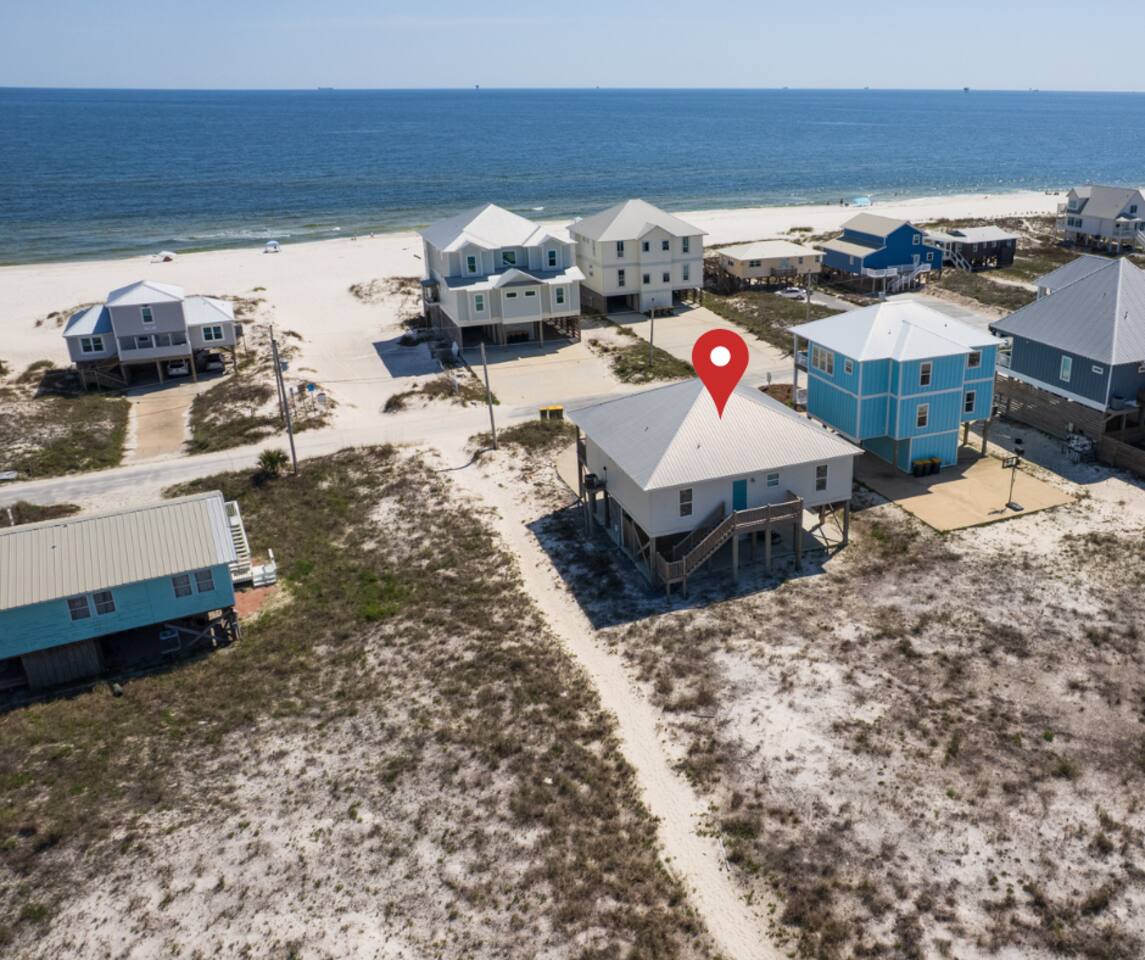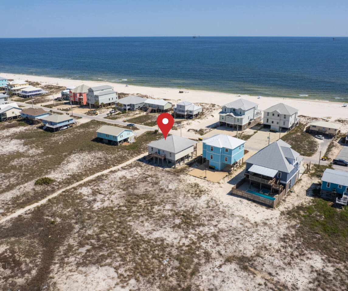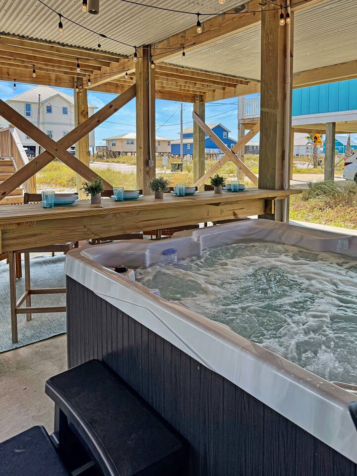 ✔ Directly Across From Public Beach ✔ Private Hot Tub ✔ All Dogs Welcome, Dog-Friendly Beach ✔️ 4 bedrooms, 4 baths, Sleeps 10 ✔️ Gulf-Facing Deck – Soak in the salt air and watch the waves roll in from an expansive deck with lounge seating. ✔️ Outdoor Oasis – Hang in your own shaded bar area under the house, complete with hot tub, cornhole, and comfy seating ✔️ Beach Gear, Linens & Soaps Included. ✔️ Outdoor Shower
