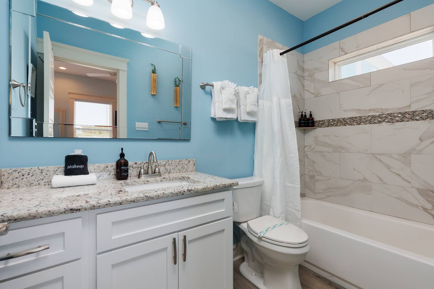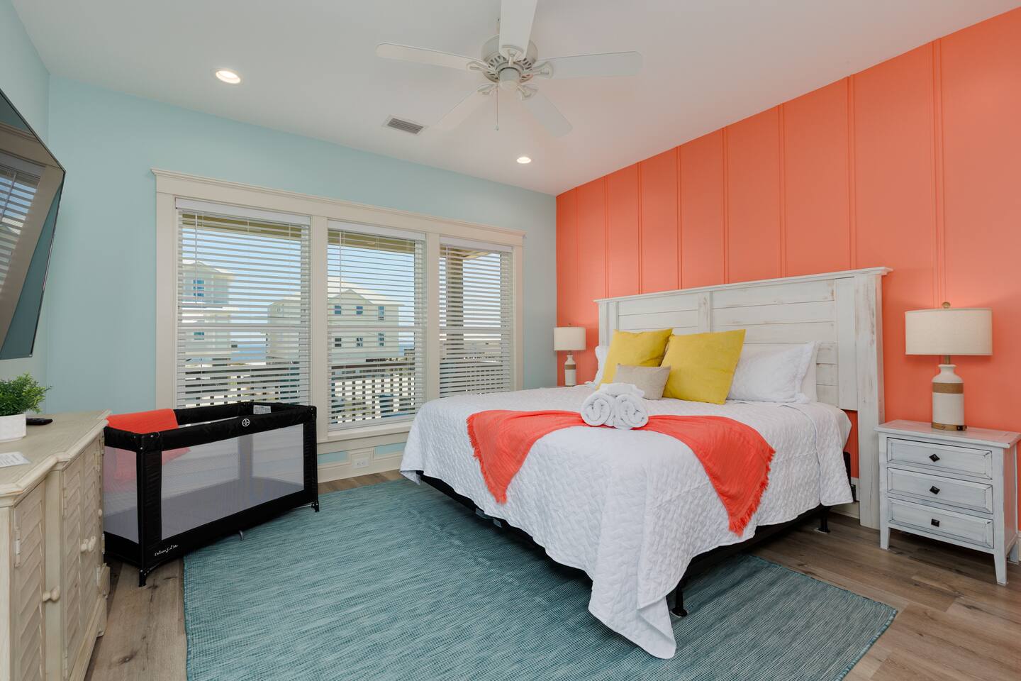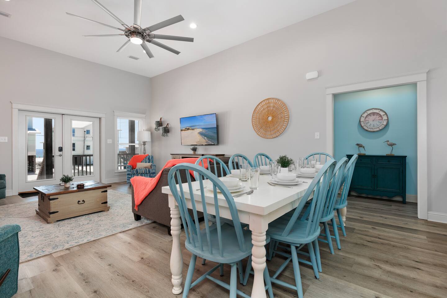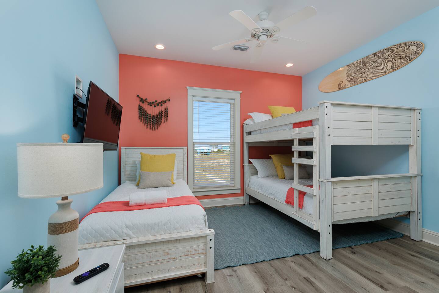Gulf Views, Hot Tub & Beach Across the Street—All on One Level This single-story coastal retreat in Gulf Shores gives you the best of both worlds: stunning Gulf views from your front deck and beach access just steps across the street—all without the oceanfront price tag. With three king suites, a bunk room for the kids, and a killer outdoor hangout area complete with hot tub, bar, and games, this is where beach days and late nights come together perfectly. Wake up to Gulf breezes, spend your days between the sand and the hot tub, and end each night with sunset cocktails from your front-row deck. WHAT MAKES THIS HOME SPECIAL ✔ Gulf views from the front deck + beach across the street ✔ Single-level layout—no stairs, easy living ✔ Private outdoor bar, hot tub & game area under the house ✔ 3 king suites with private bathrooms + bunk room ✔ Dog-friendly—beach life is better with your pup THE SPACE Your Gulf-facing front deck is where mornings begin—coffee in hand, sunrise painting the water, planning which beach you'll hit first. As the day winds down, grab a seat with a cold drink and watch the sky turn pink and gold over the waves. Below, your private shaded hangout area is the real MVP. Fire up the outdoor bar, sink into the hot tub after a long beach day, challenge someone to cornhole, and let the good times roll. Rinse off the sand in the outdoor shower and decide whether your next move is the hot tub or back to the beach—it's only across the street. Inside, the fully stocked kitchen handles everything from quick breakfast tacos to full seafood spreads. The dining table seats everyone comfortably, and the living room invites you to kick back on stylish boho-chic seating and stream whatever you're binge-watching on the 65" Smart TV. The single-level layout means no one's hauling luggage upstairs or chasing kids between floors—just easy, breezy beach house living. WHERE EVERYONE SLEEPS 3 king suites with Gulf views, private en-suite bathrooms, 50" Smart TVs 1 bunk room with full-over-full bunk + extra twin bed—perfect for kids or teens All beds and mattresses are brand new as of 2025. Four full bathrooms total (three private en-suites, one hallway bath for the bunk room) with spa-style showers, boho accents, and plush towels throughout. GOOD TO KNOW ✔ Beach chairs, wagon, toys, and gear included ✔ Outdoor shower for easy post-beach cleanup ✔ Washer and dryer in-unit ✔ Central A/C and fast Wi-Fi ✔ Dining favorites 5 minutes away (Tacky Jacks, Jessie's, Sassy Bass) ✔ Downtown Gulf Shores is 20 minutes down the coast BOOK YOUR ESCAPE This is the kind of place that becomes your new beach tradition—where you're close enough to hear the waves but far enough from the crowd to have your own vibe. Morning beach walks, afternoon hot tub hangs, evening games at the bar. If you want Gulf views, easy beach access, and a single-level layout that just works, you've found it. Availability fills fast—check your dates now. Rose & Doug Waves & Wilderness